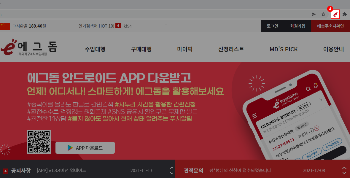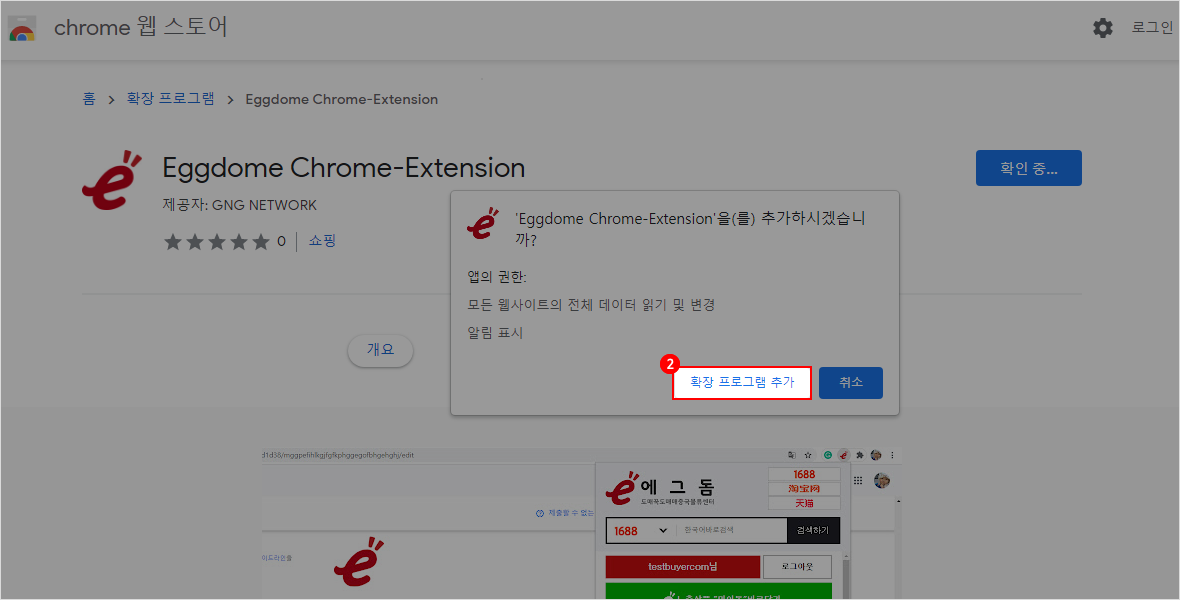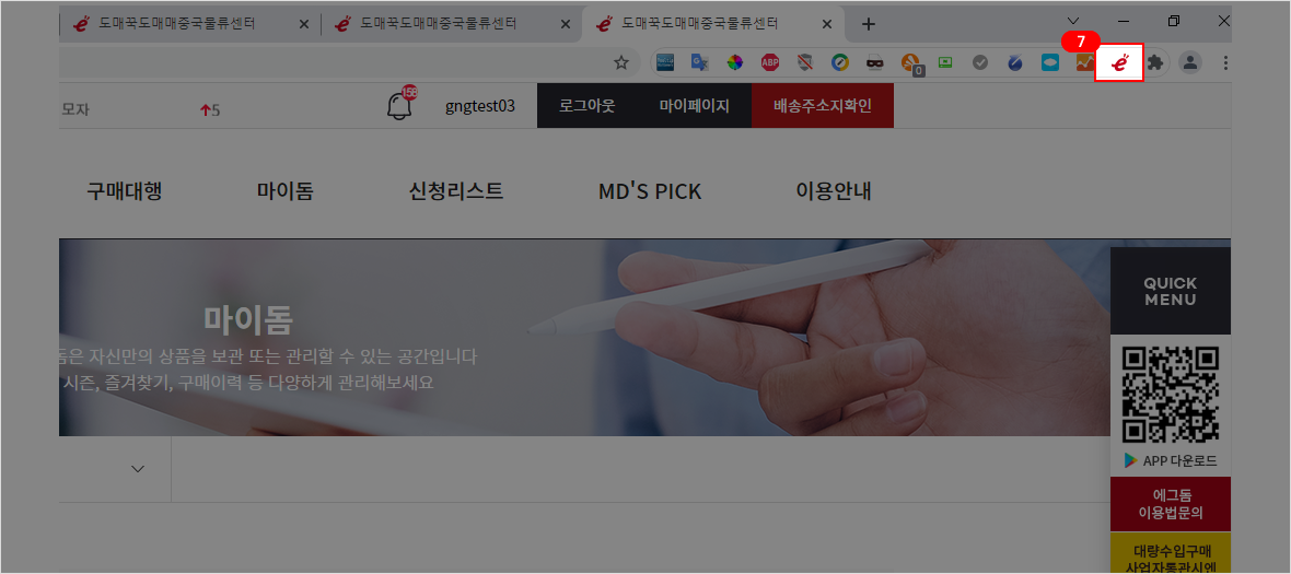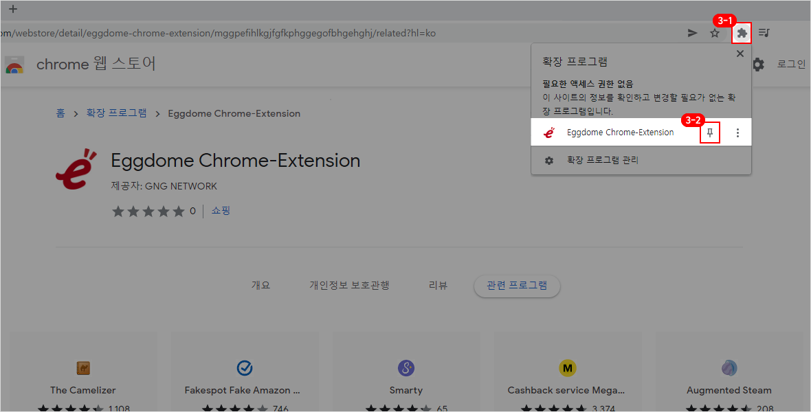 7크롬브라우저에 에그돔 확장프로그램이 설치된 걸 확인(7)할 수 있습니다
