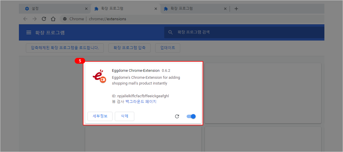 5확장프로그램에 에그돔 확장프로그램이 설치된 걸 확인할 수 있습니다