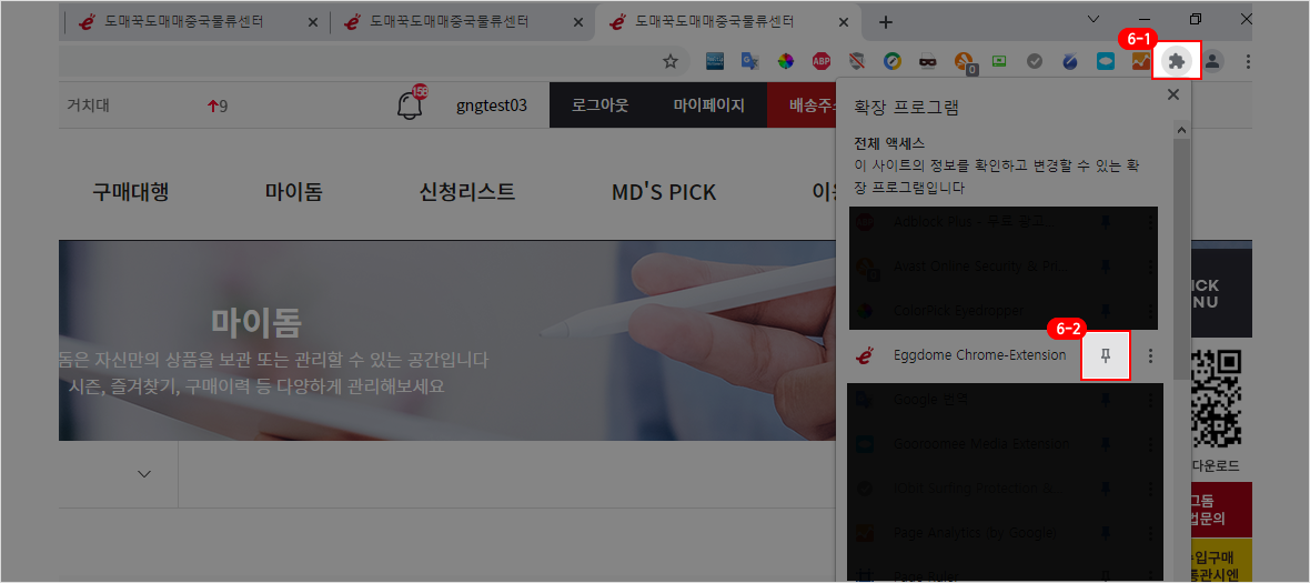 버튼(6-1)을 클릭한 다음 목록이 펼쳐지면 Eggdome Chrome-Extexion의