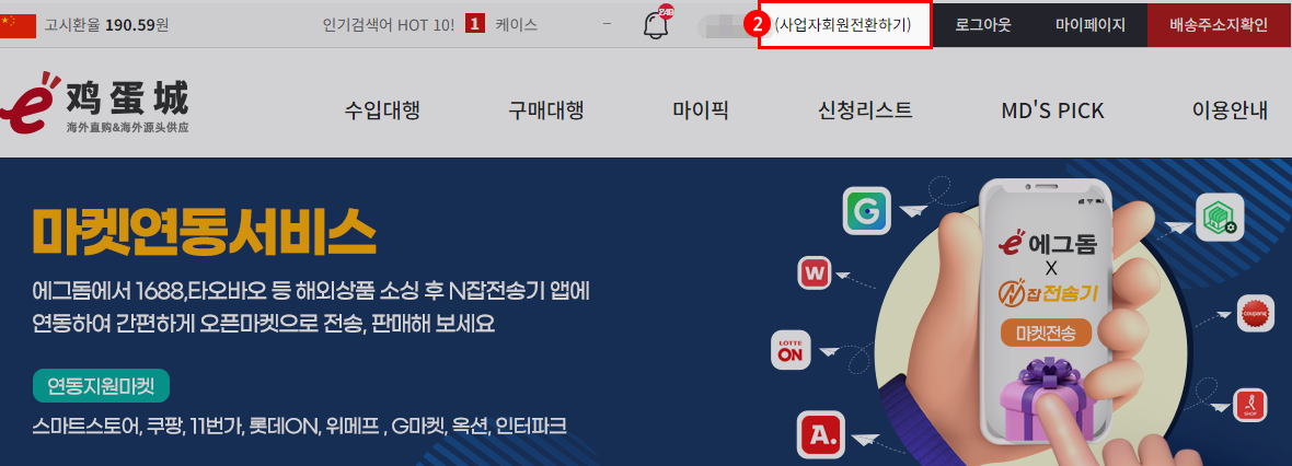 로그인 후 사업자회원전환하기를 클릭하여 내용 입력 후 사업자승인요청을 합니다