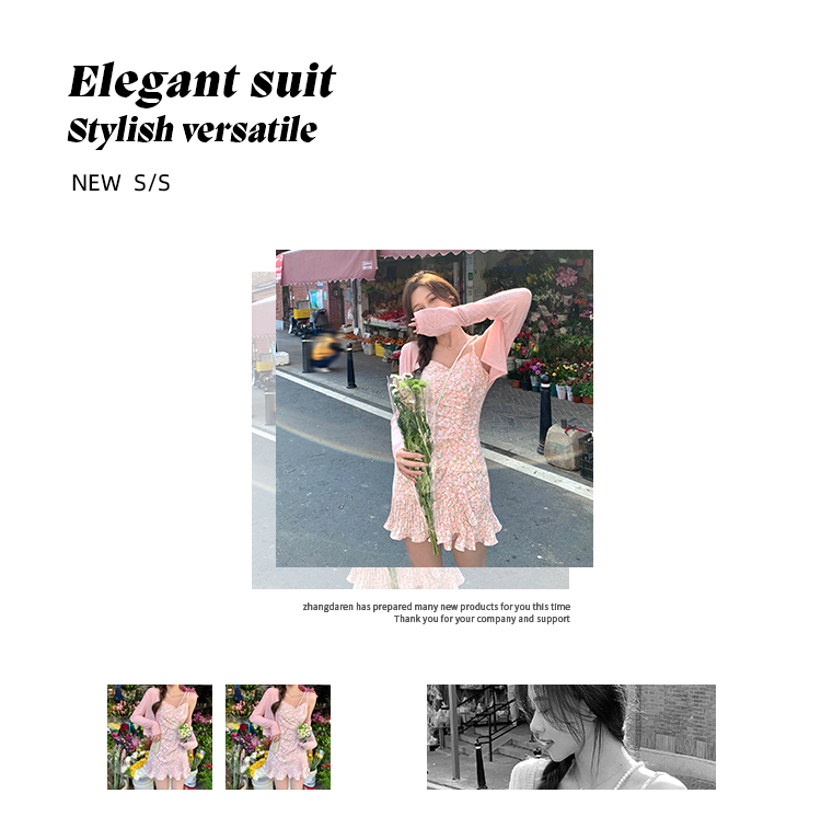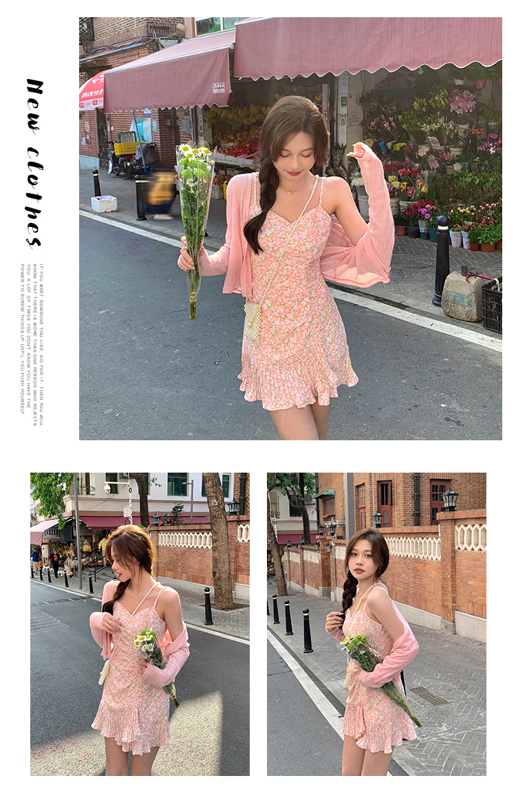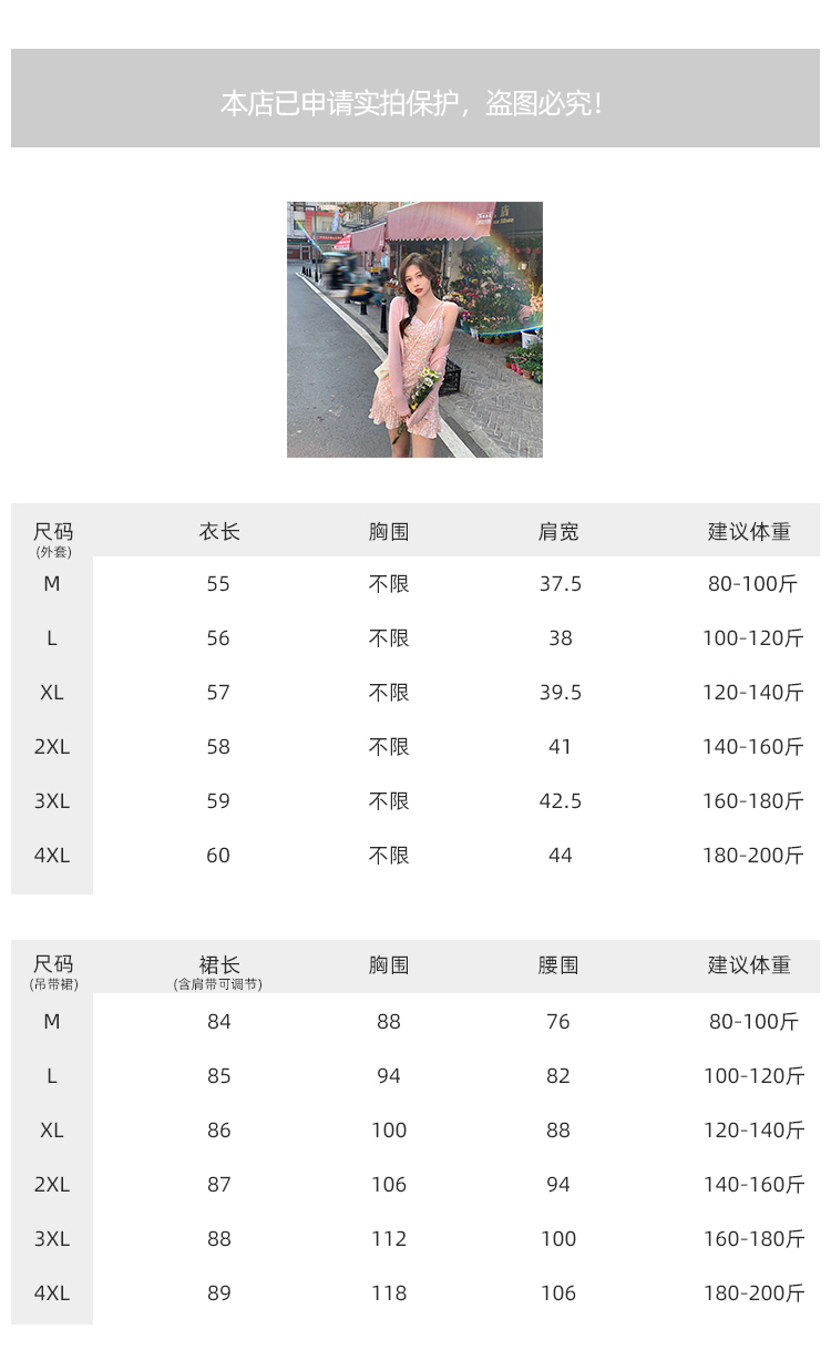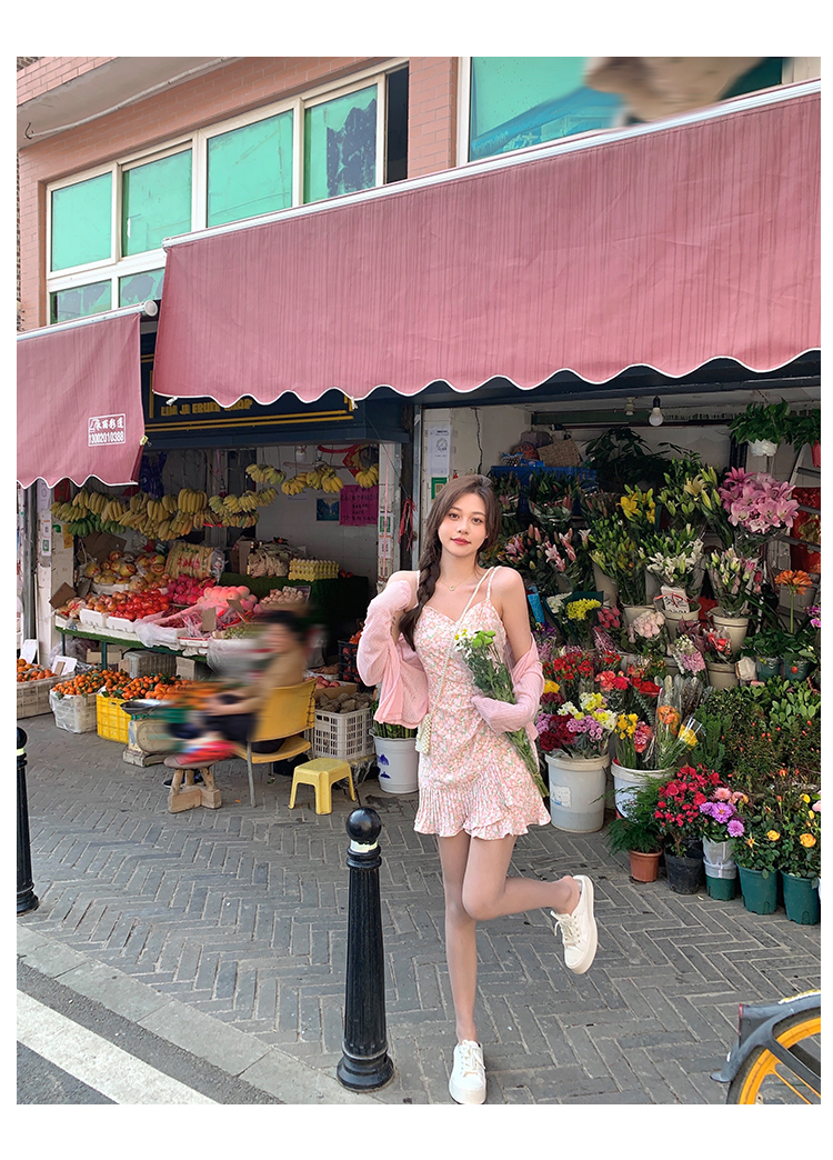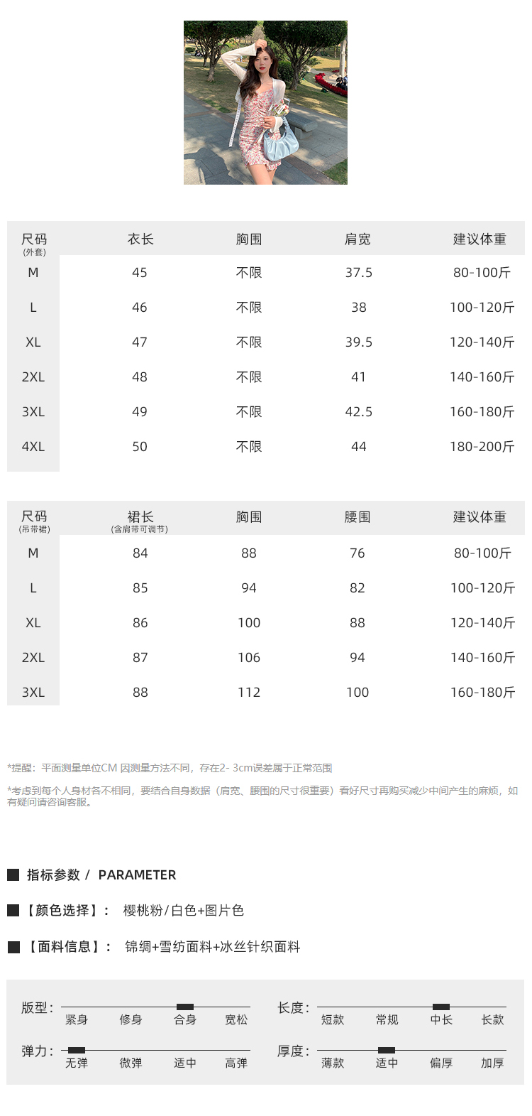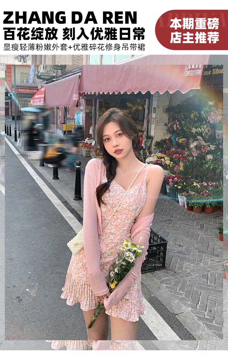 张大人大码女装胖妹妹mm显瘦遮肉碎花吊带连衣裙套装洋气两件套夏