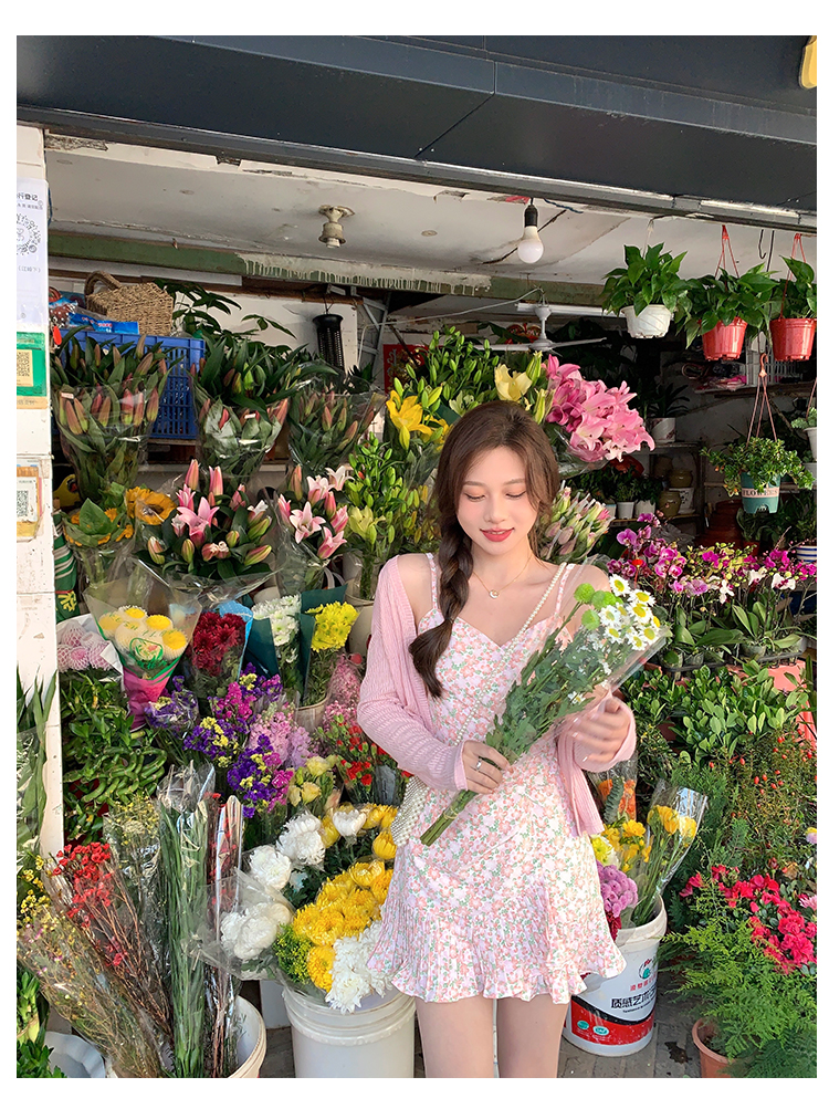 빅사이즈 꽃 나시 원피스 가디건 투피스