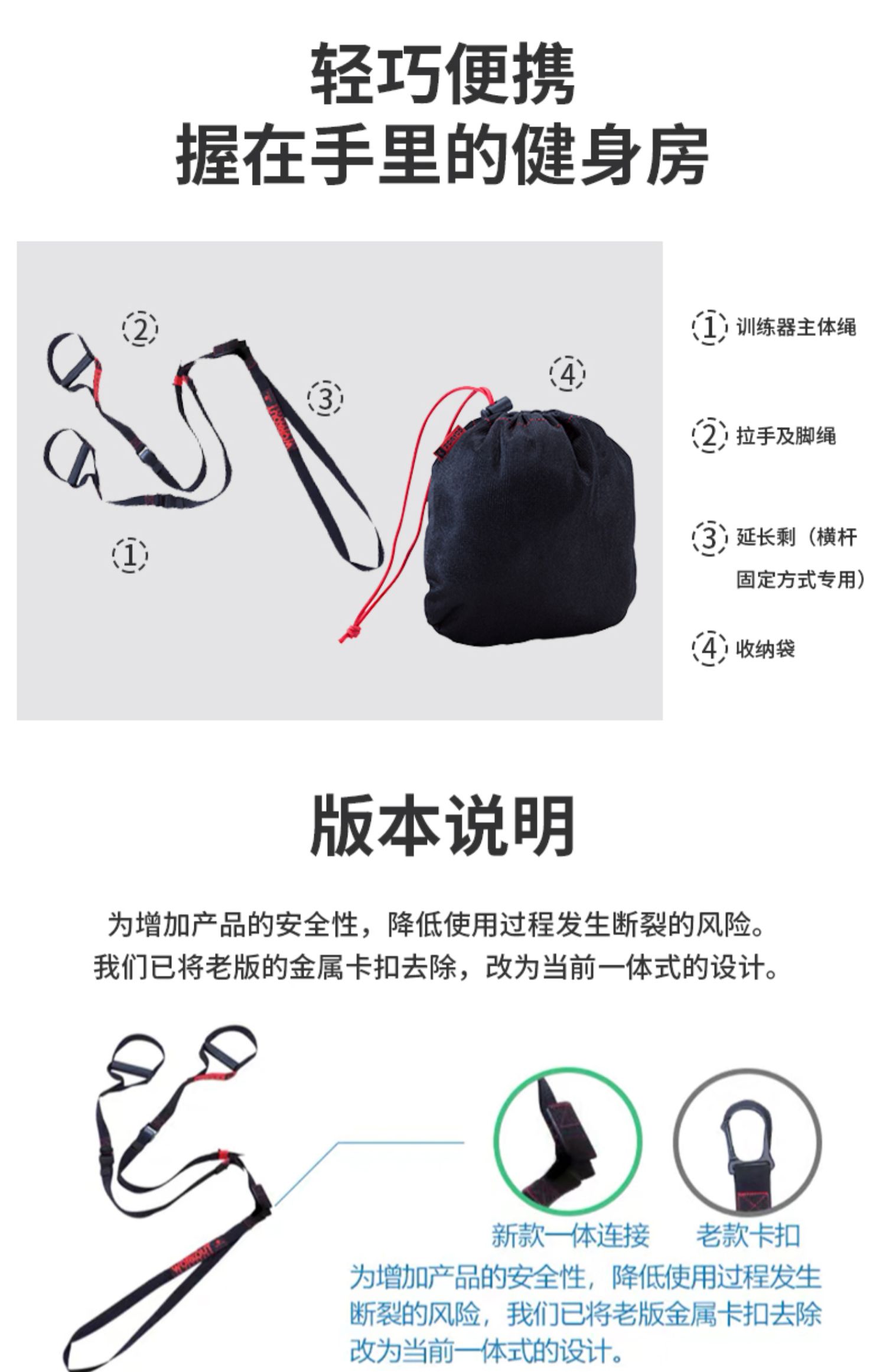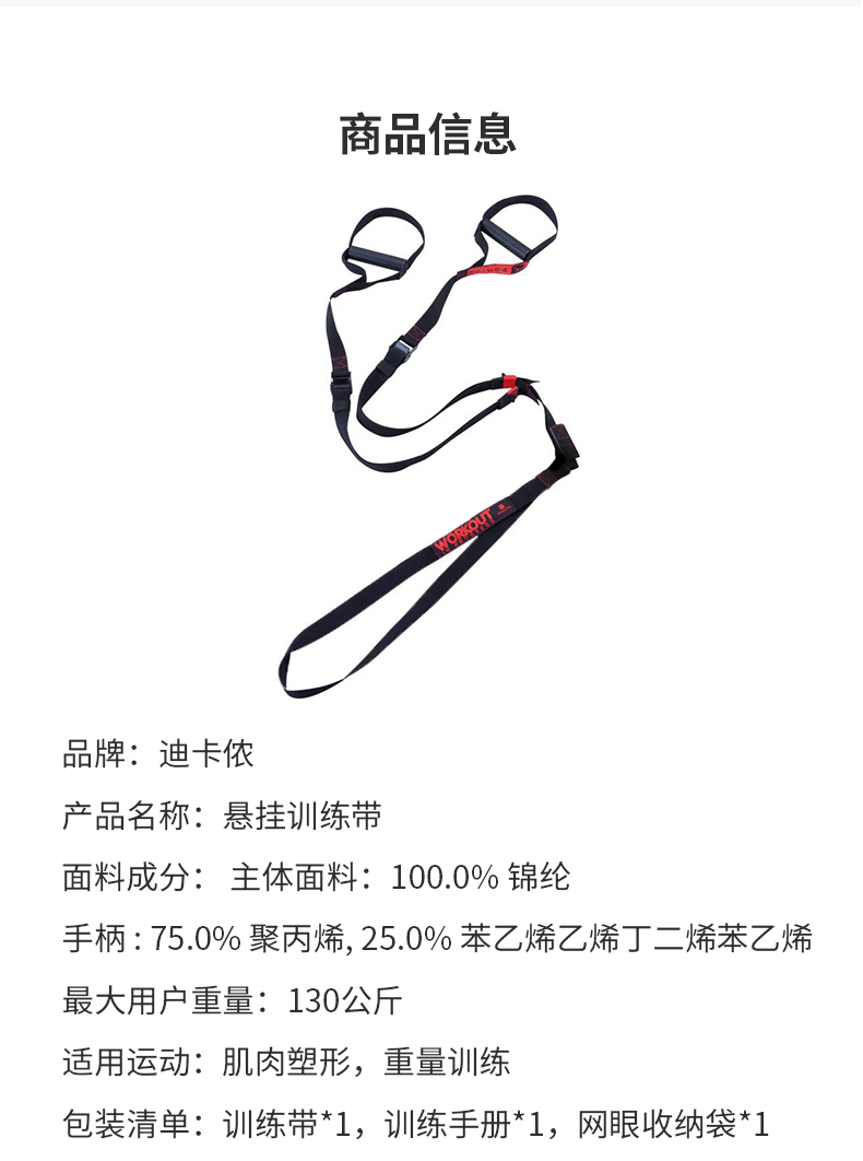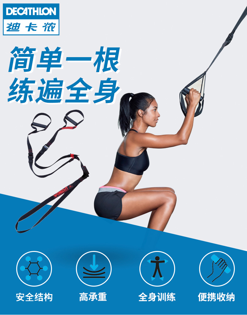 迪卡侬悬挂式训练带多功能拉力绳正品家用健身阻力带力量训练EYE2