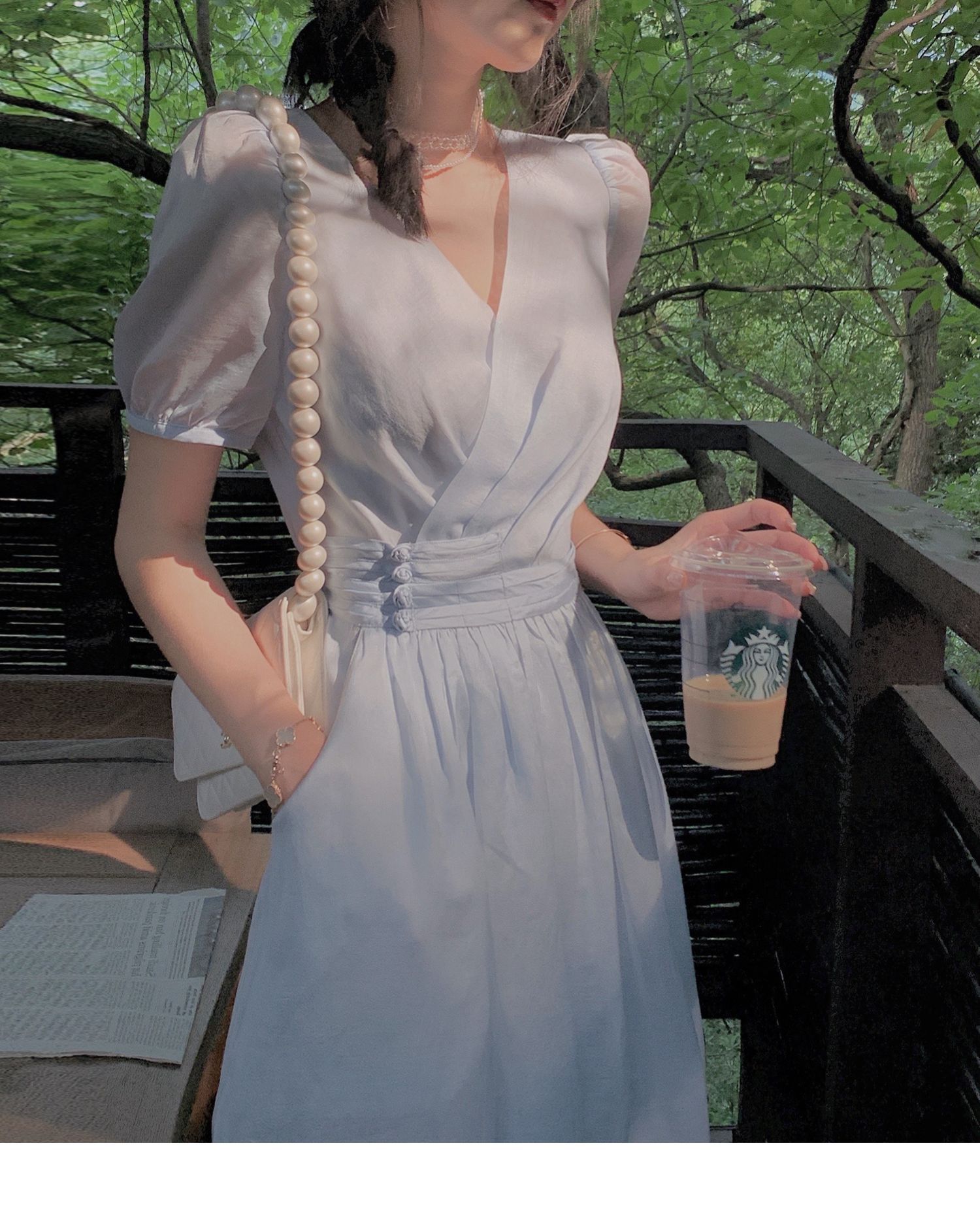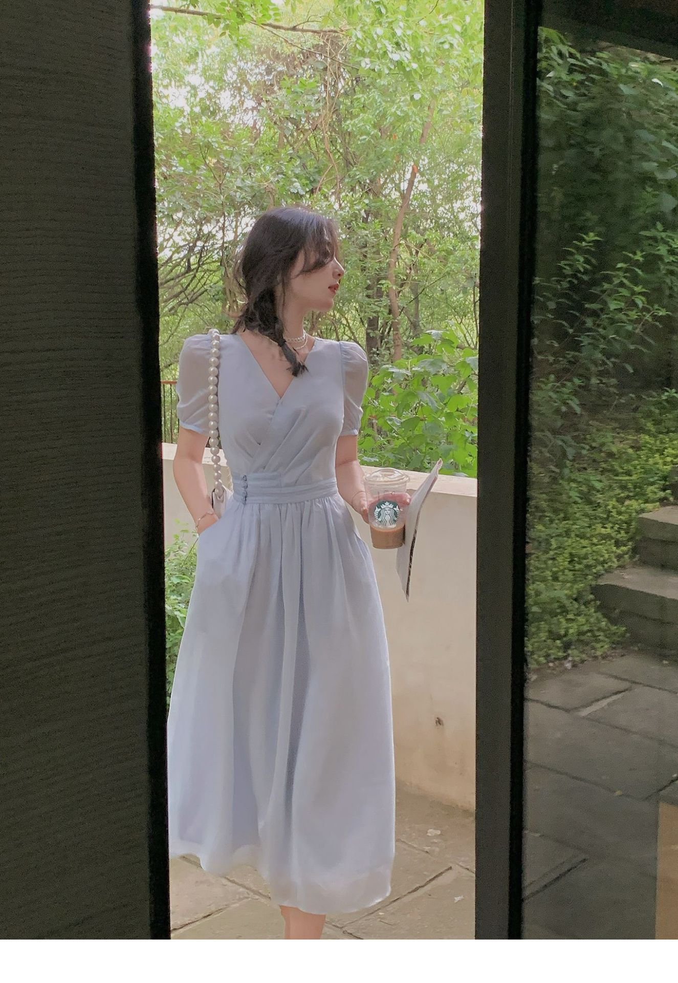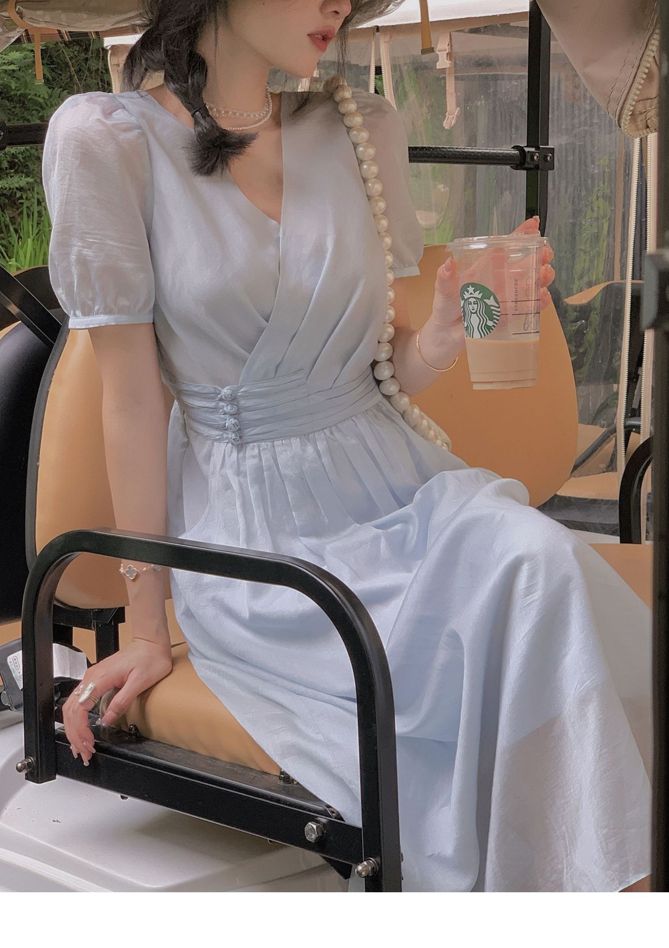 气质连衣裙女夏别致高级感初恋V领法式小清新减龄收腰显瘦长裙子