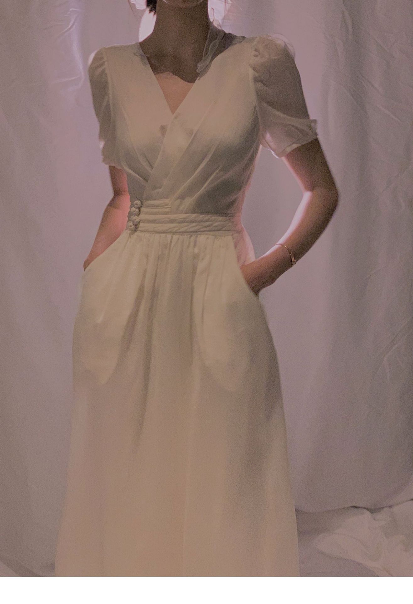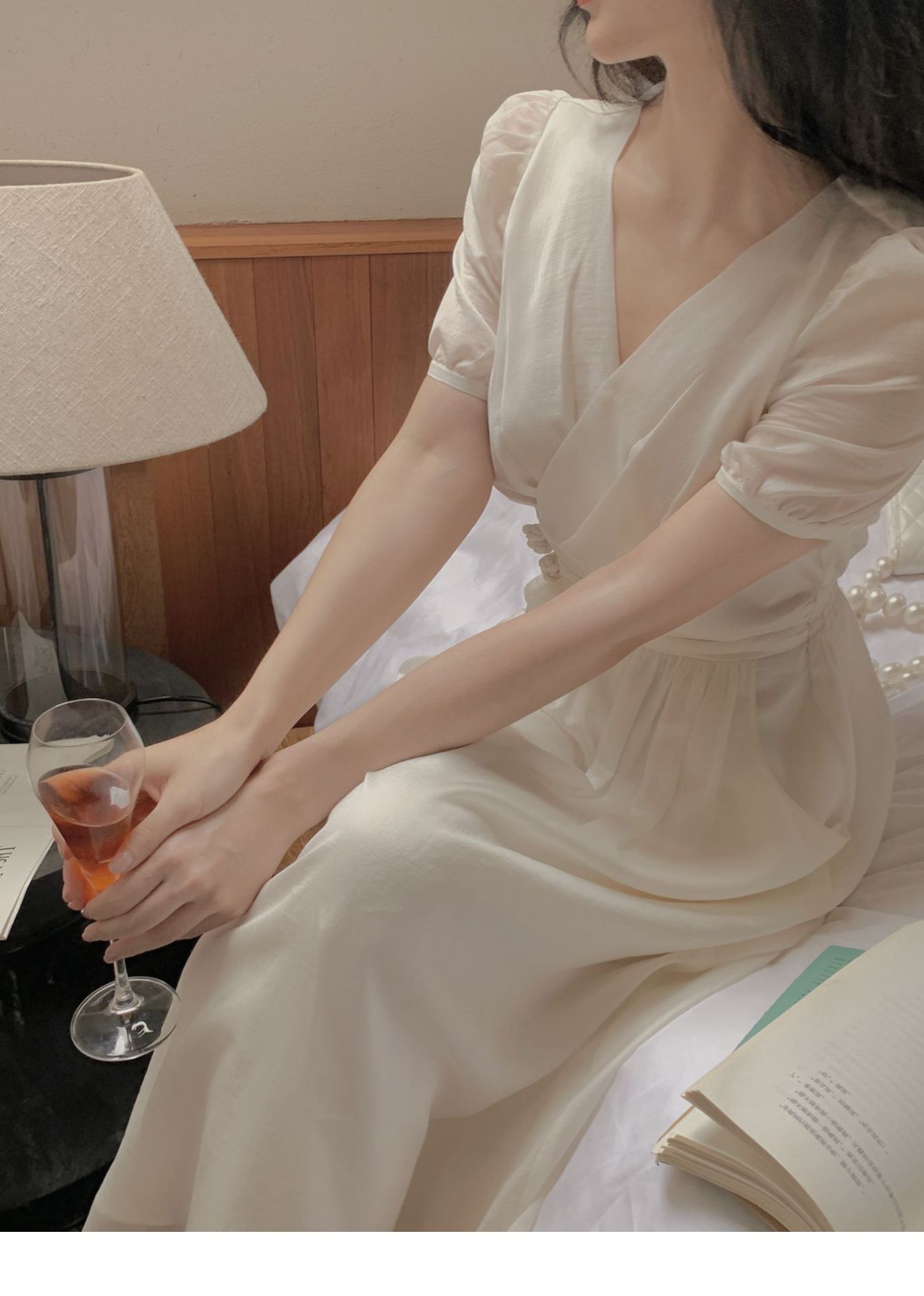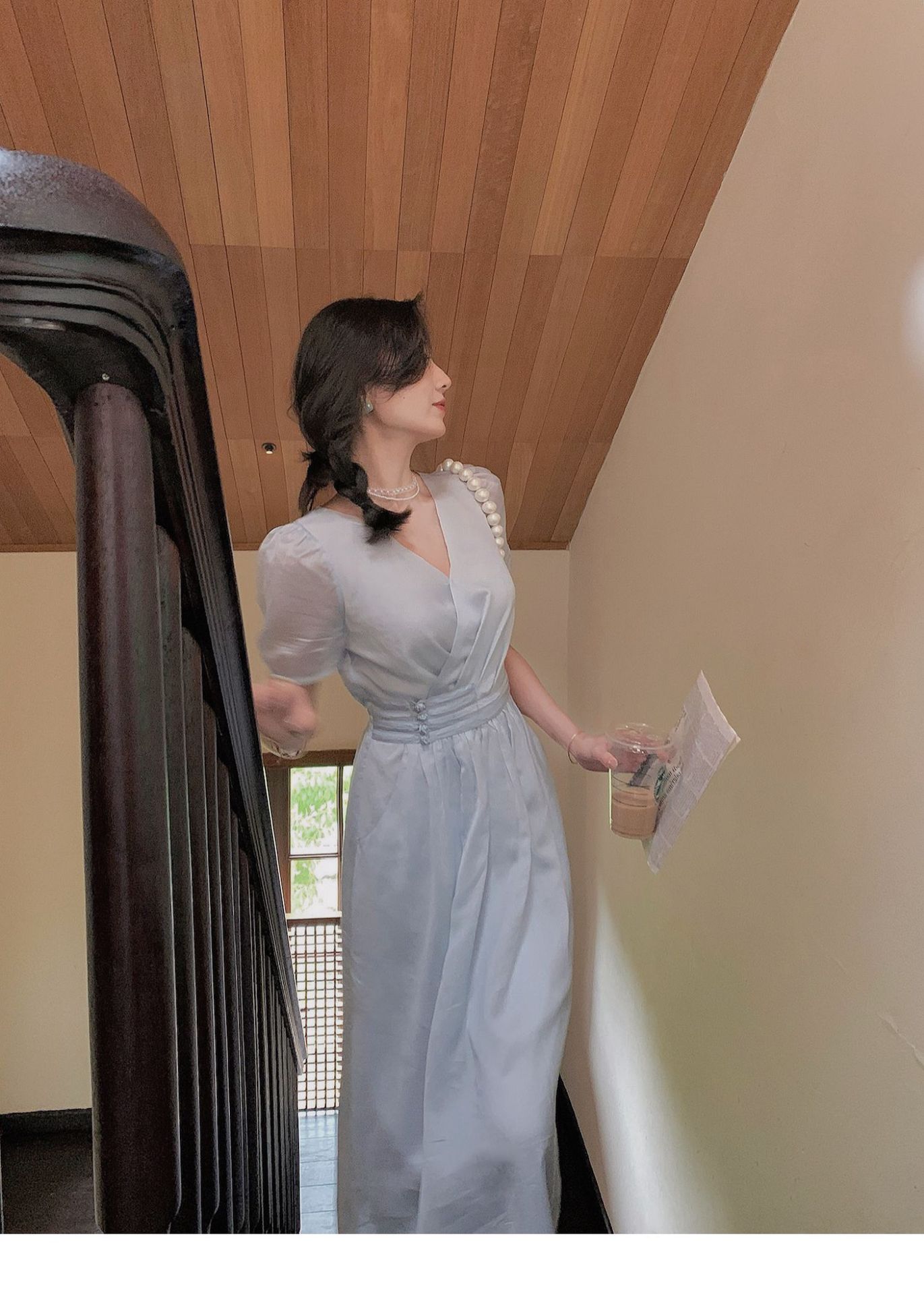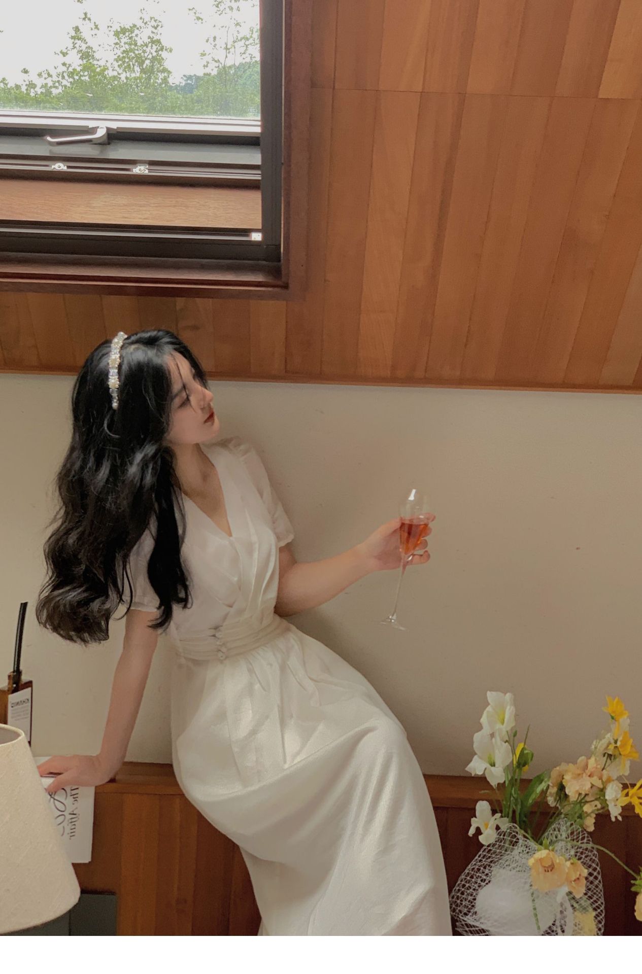 시크 브이넥 프렌치 여리여리 롱 원피스