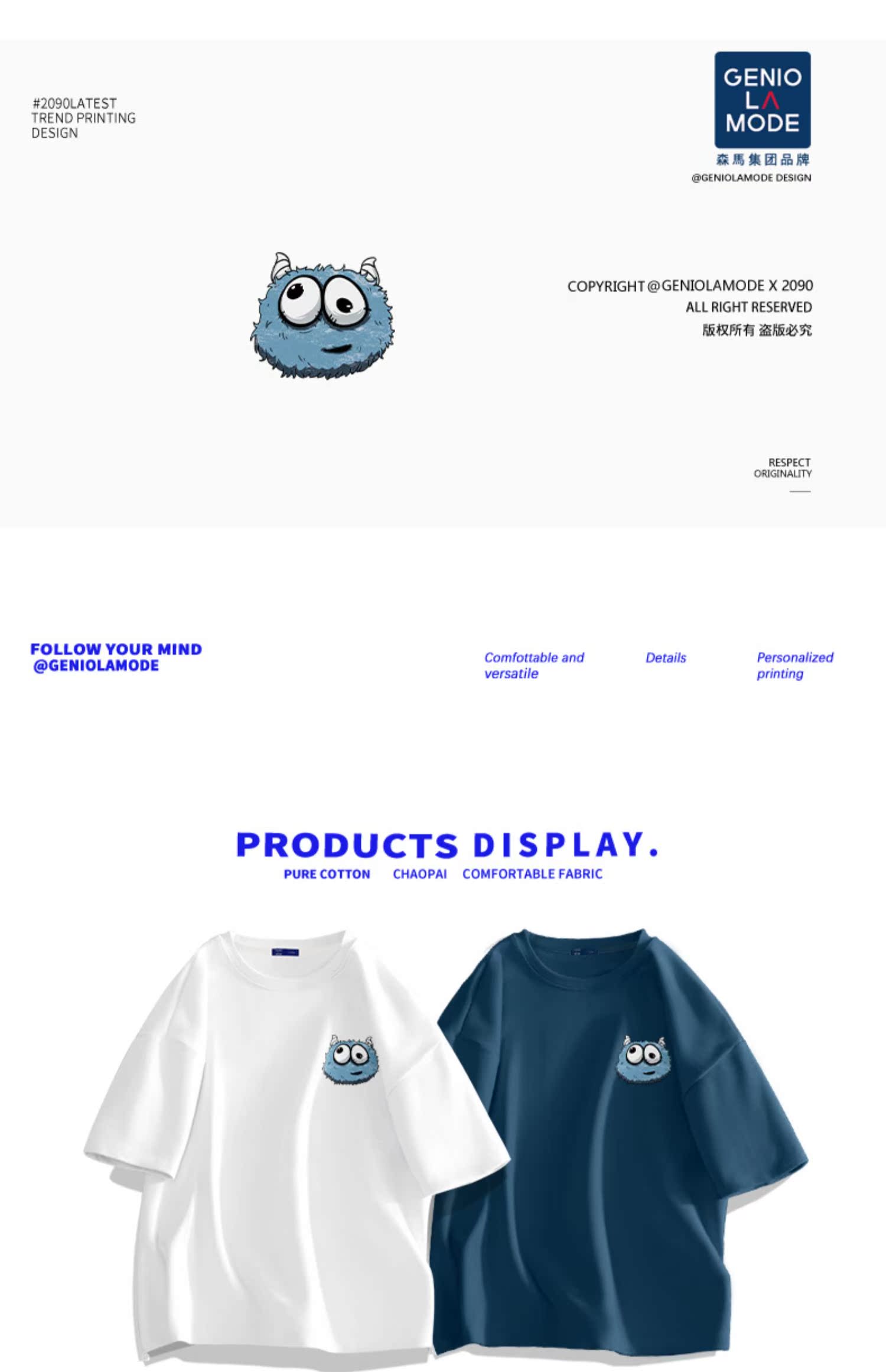 森马集团GENIOLAMODE短袖T恤男夏季男士白色纯棉衣服大码男生半袖