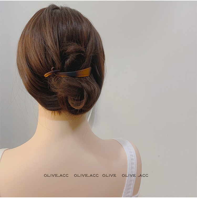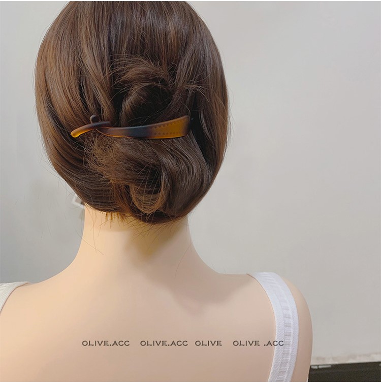 日系时尚玳瑁盘发发簪米色豹纹发插发夹盘头发饰品发卡女磨砂簪子