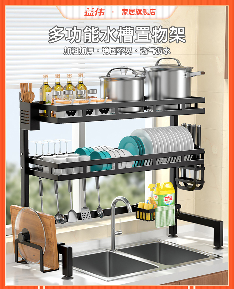 厨房水槽置物架台面碗盘收纳架多功能洗碗架水池上放碗碟架沥水架