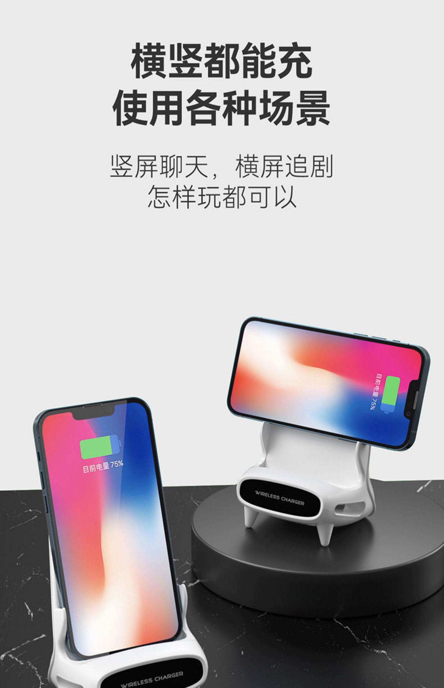 适用苹果华为安卓小米无线充电器13/12Promax万能通用桌面立式支架快充iPhone xr创意椅子扩音底座xs/11/8p
