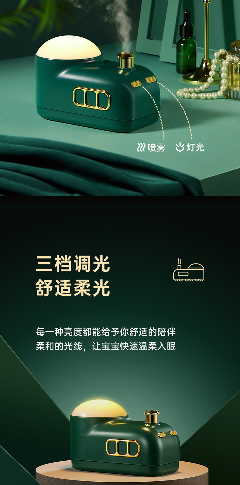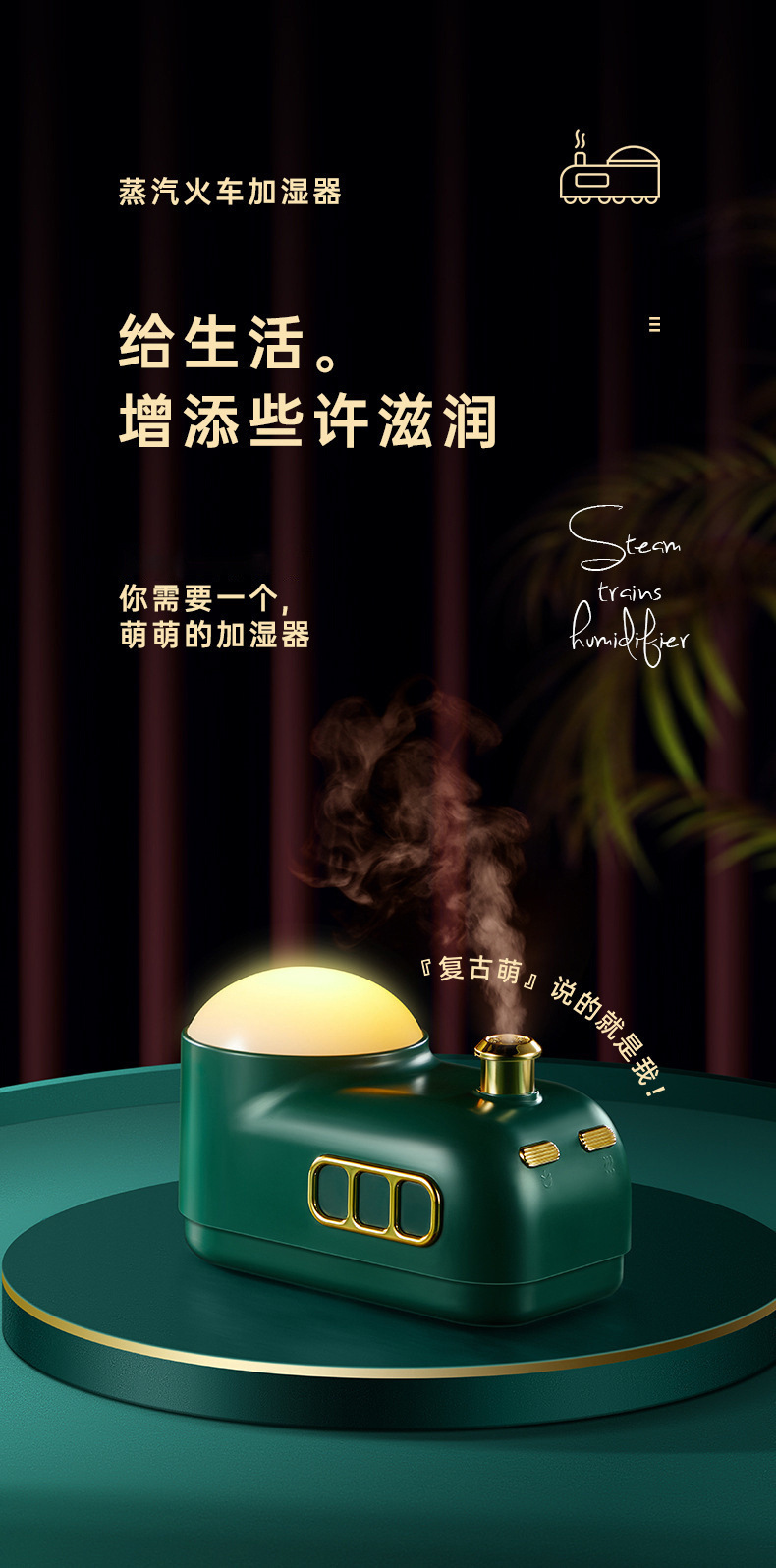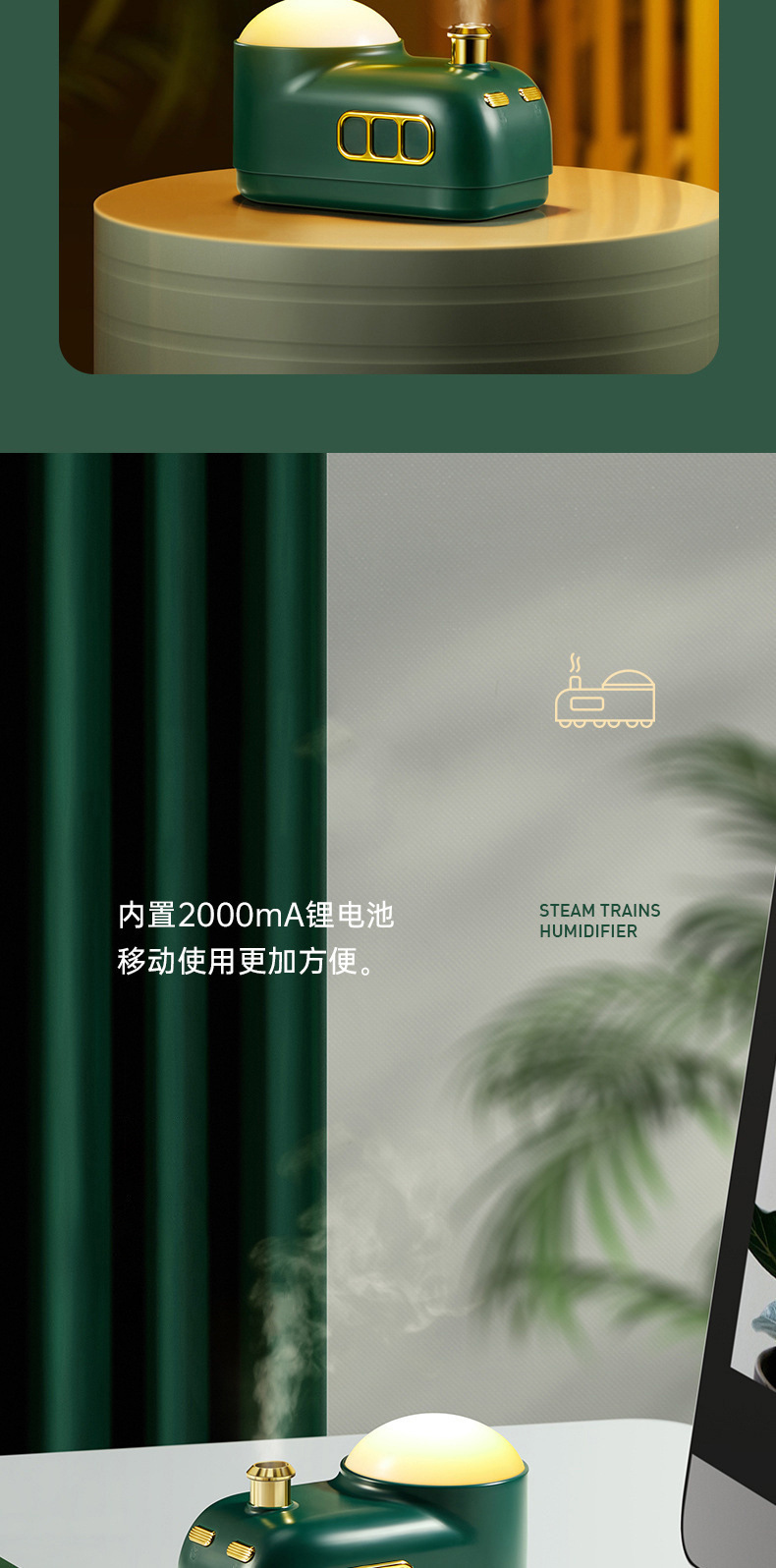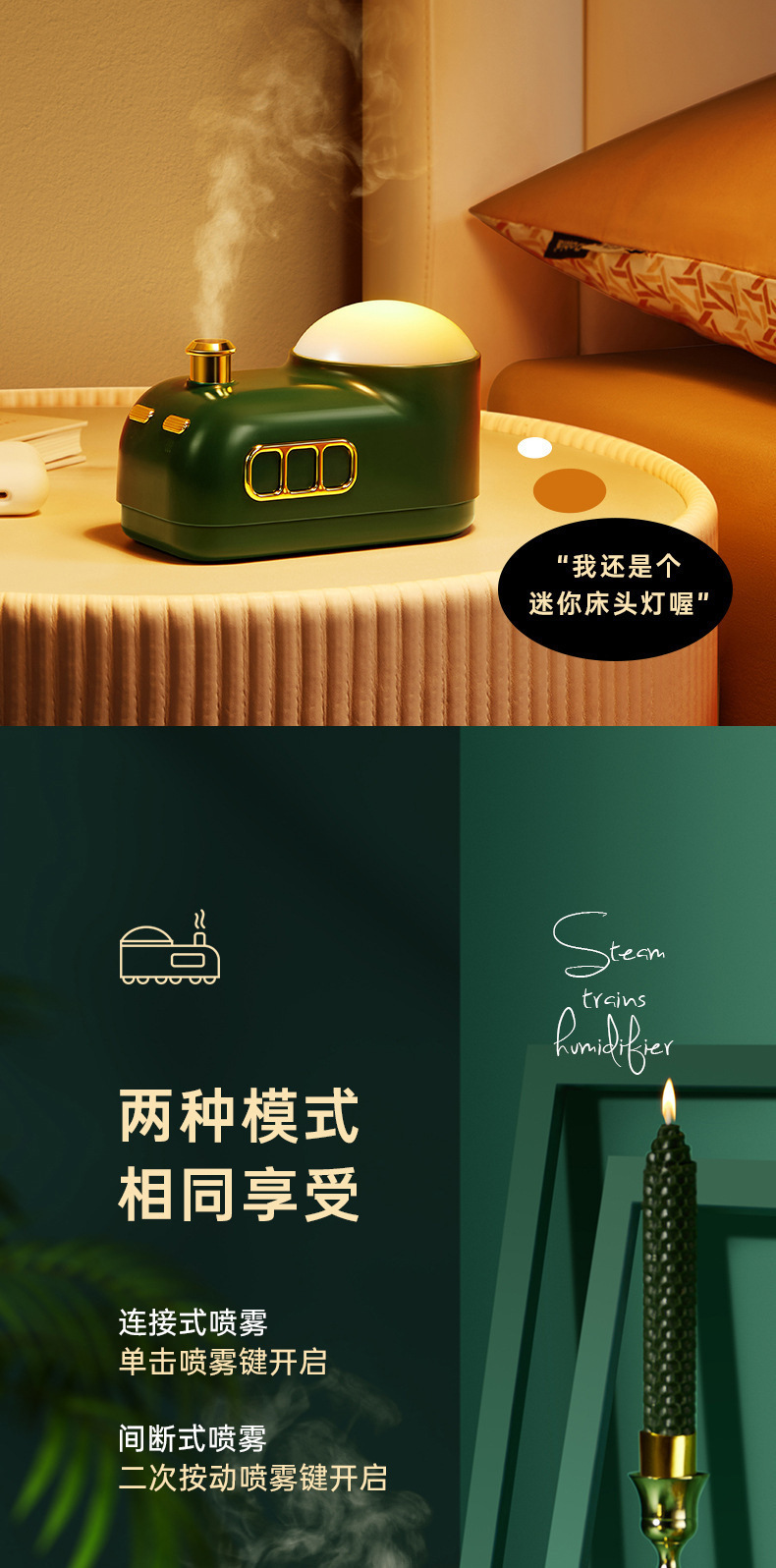 火车投影蒸汽车加湿器创意便携桌面氛围夜灯家用大雾量空气雾化器