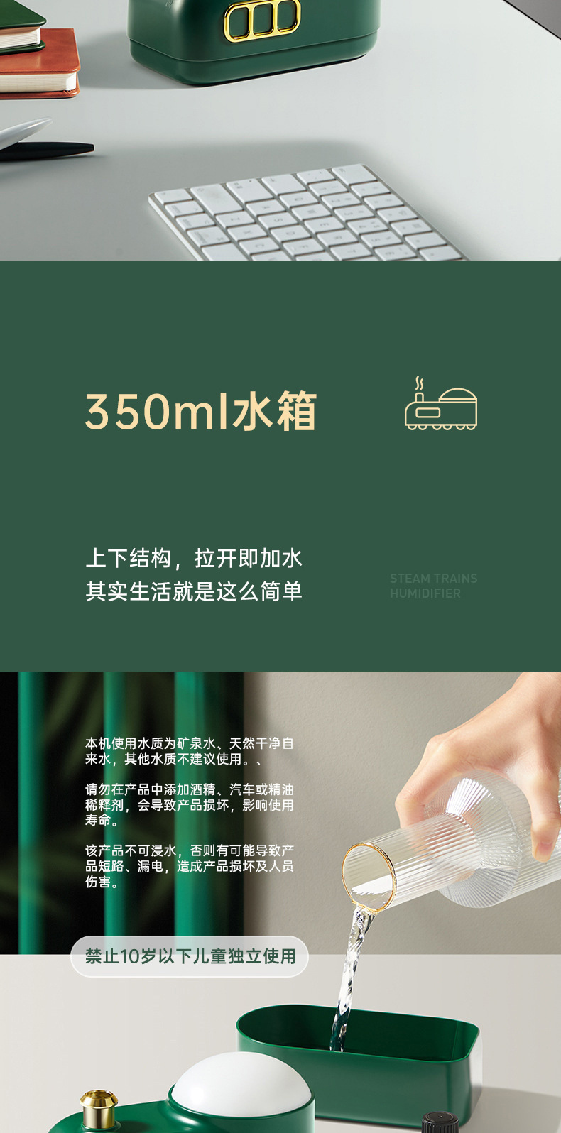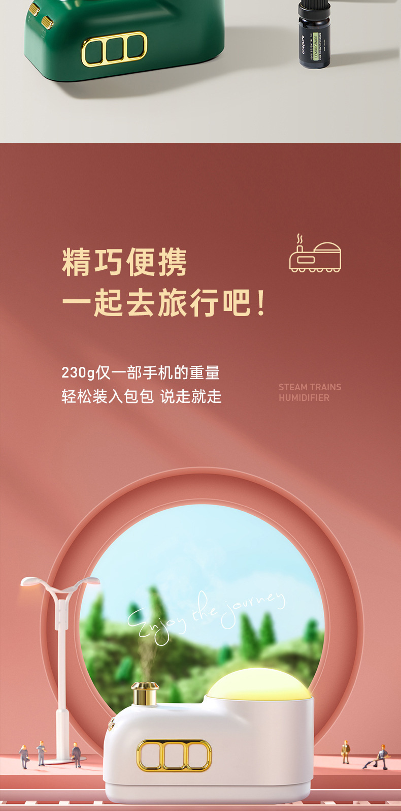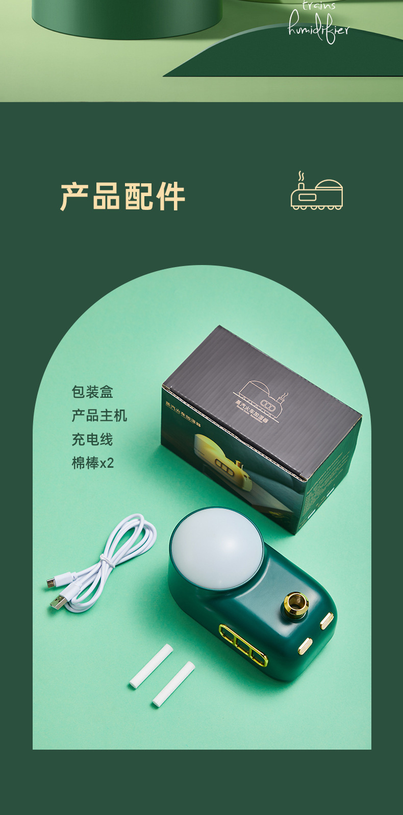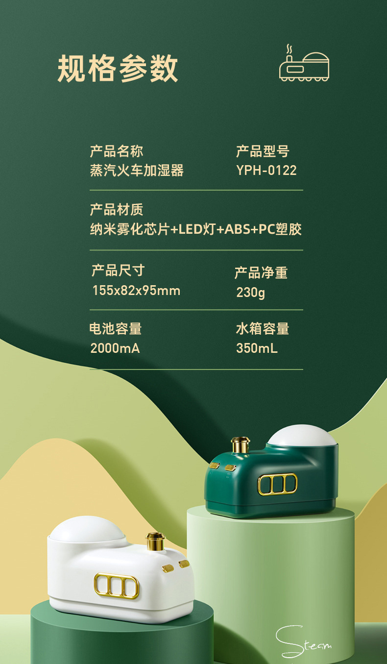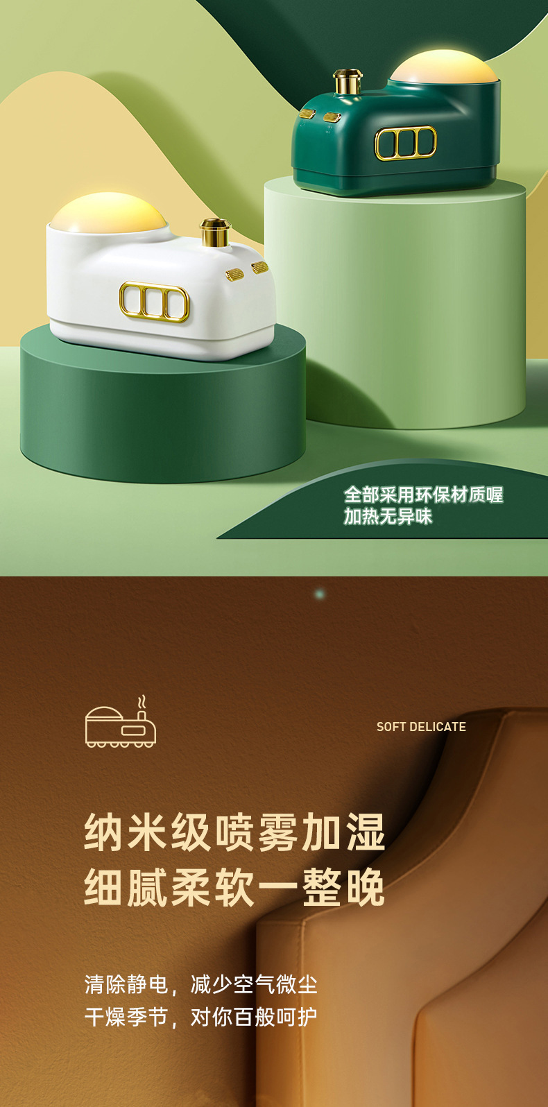 火车投影蒸汽车加湿器创意便携桌面氛围夜灯家用大雾量空气雾化器