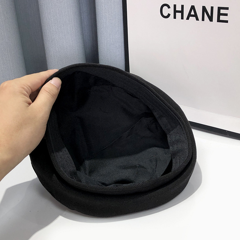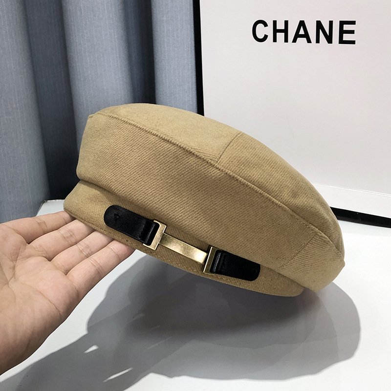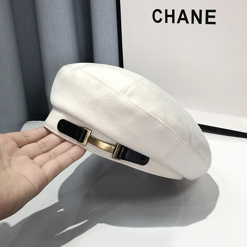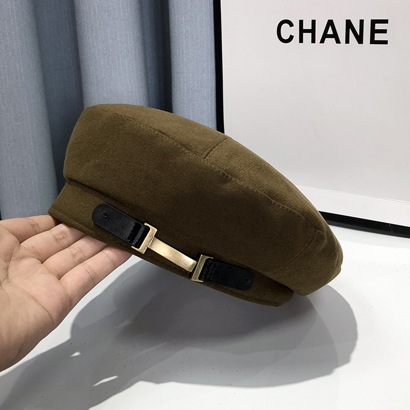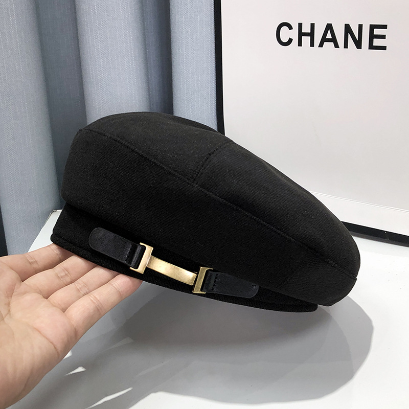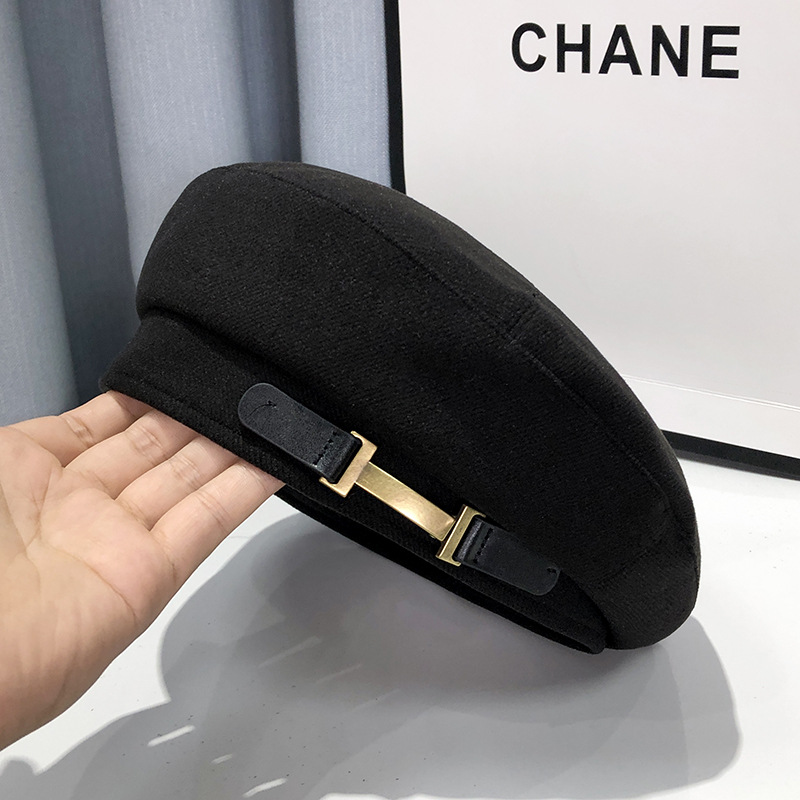 小众金属扣贝雷帽女夏季新款时尚黑色画家帽日系显脸小复古八角帽