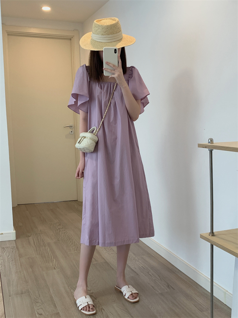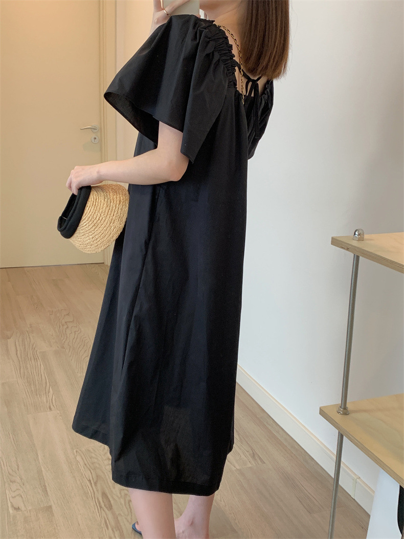 法式连衣裙女夏季新款设计感小众度假风荷叶短袖方领系带长裙子