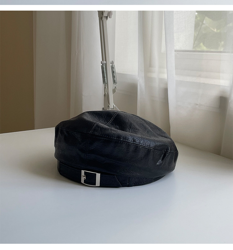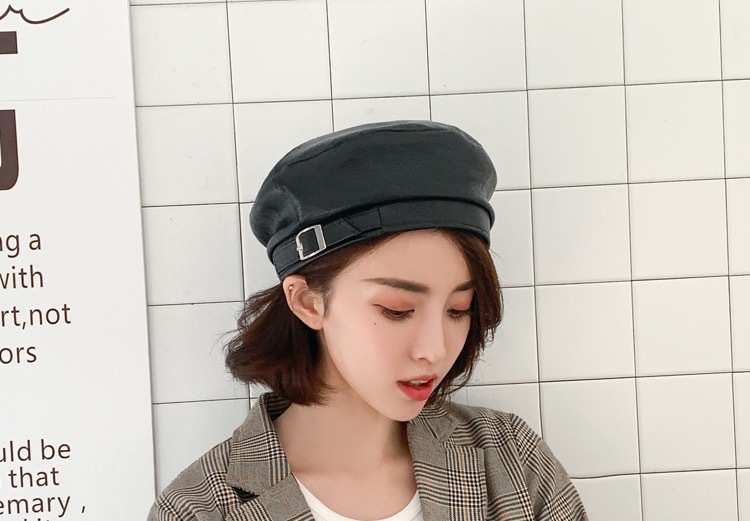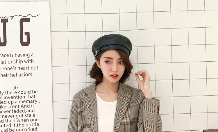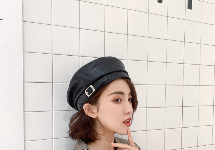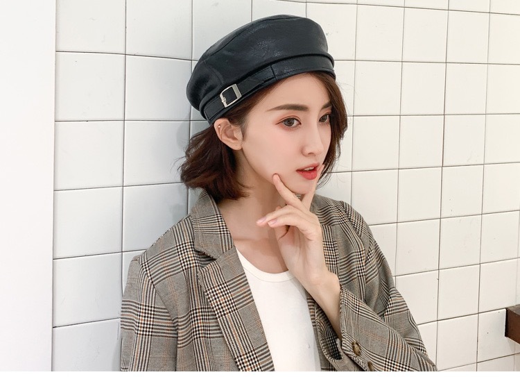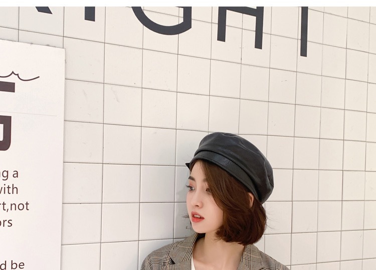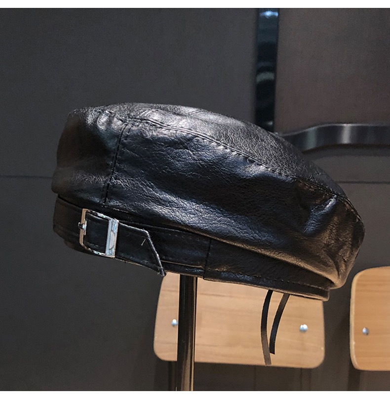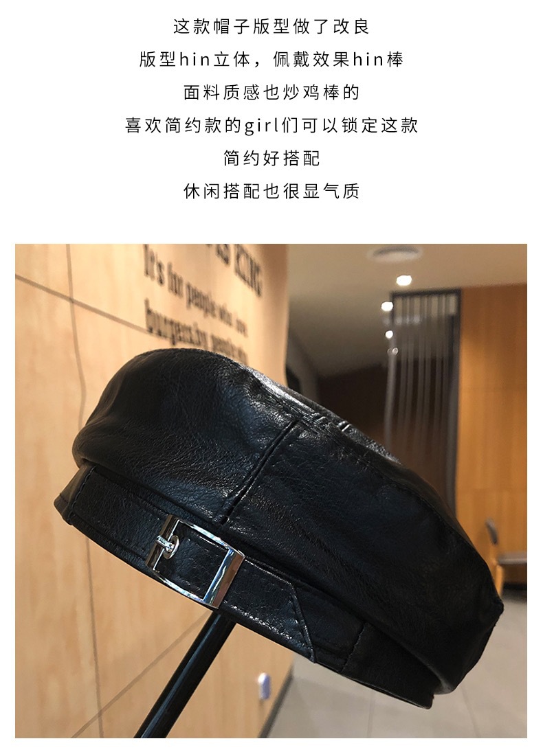 贝雷帽女日系春秋甜美可爱洋气PU皮质贝雷帽显脸小英伦复古网红款