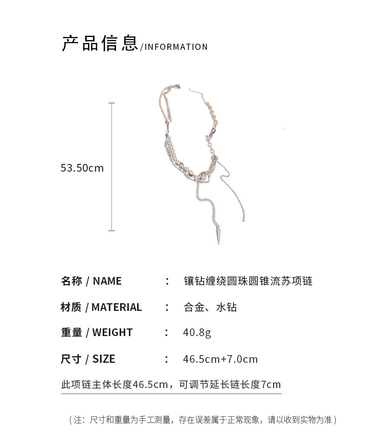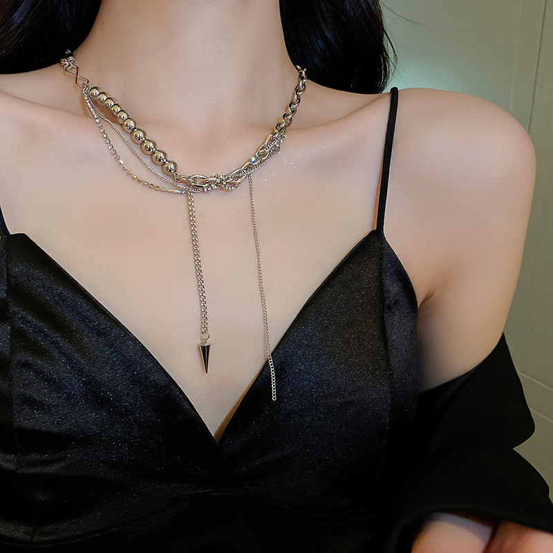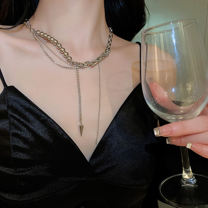 镶钻圆珠流苏双层项链小众设计感ins冷淡风锁骨链时尚嘻哈项饰女