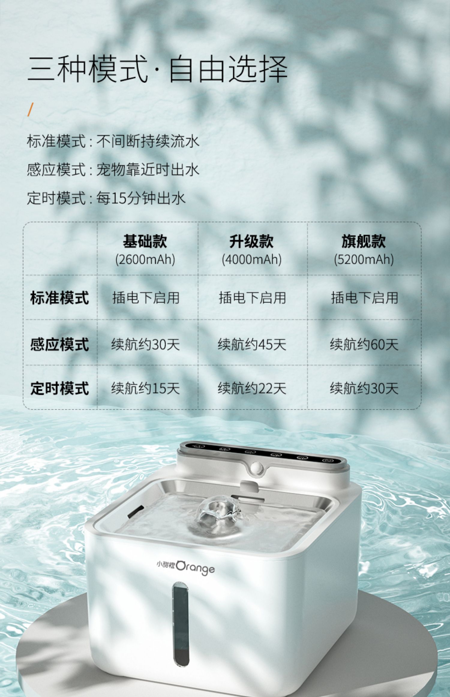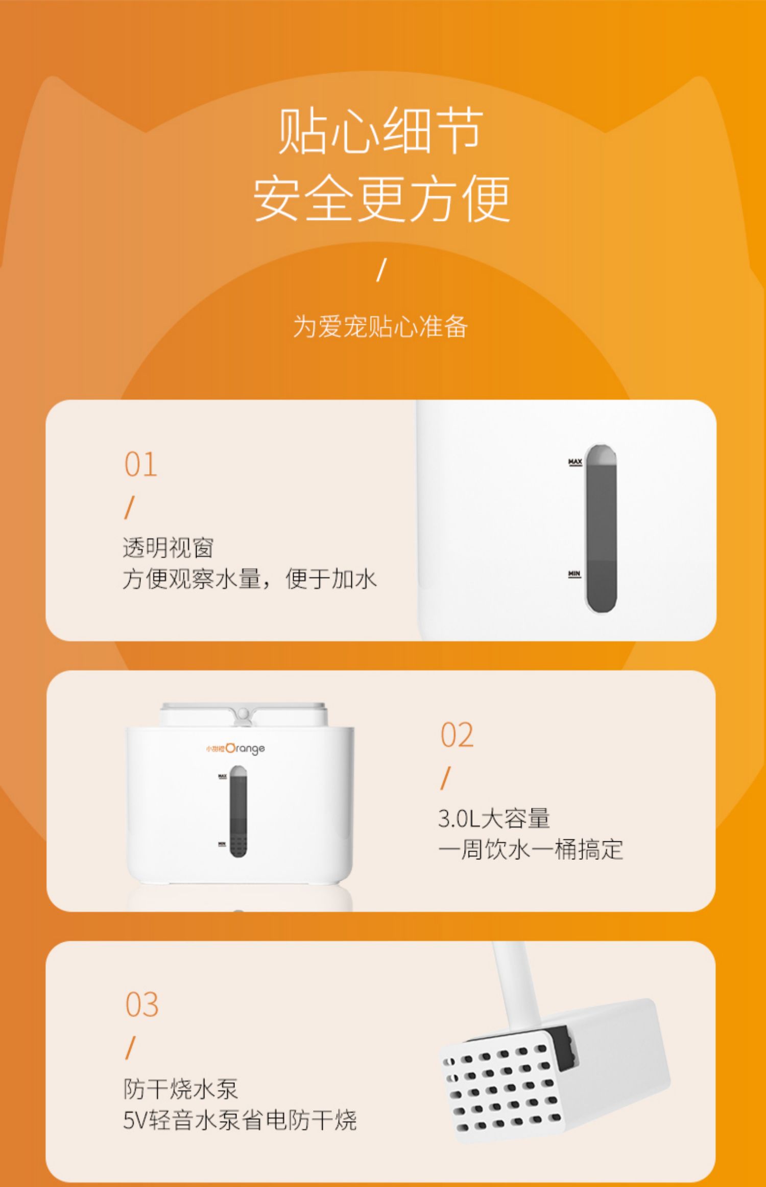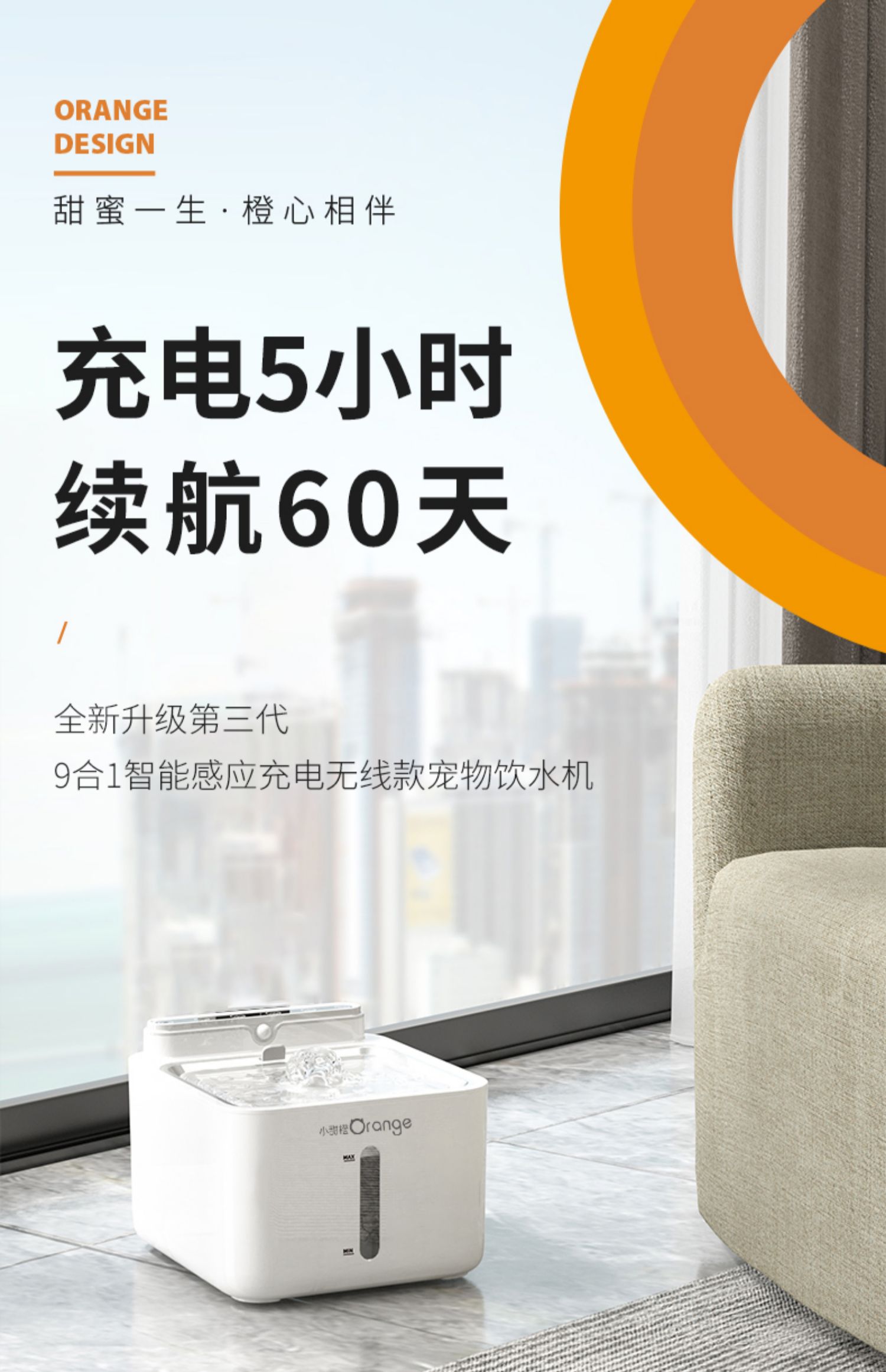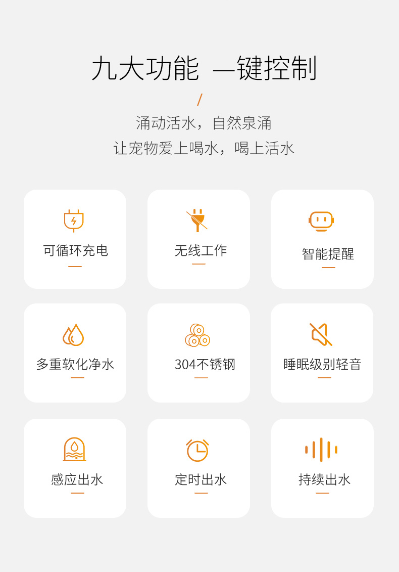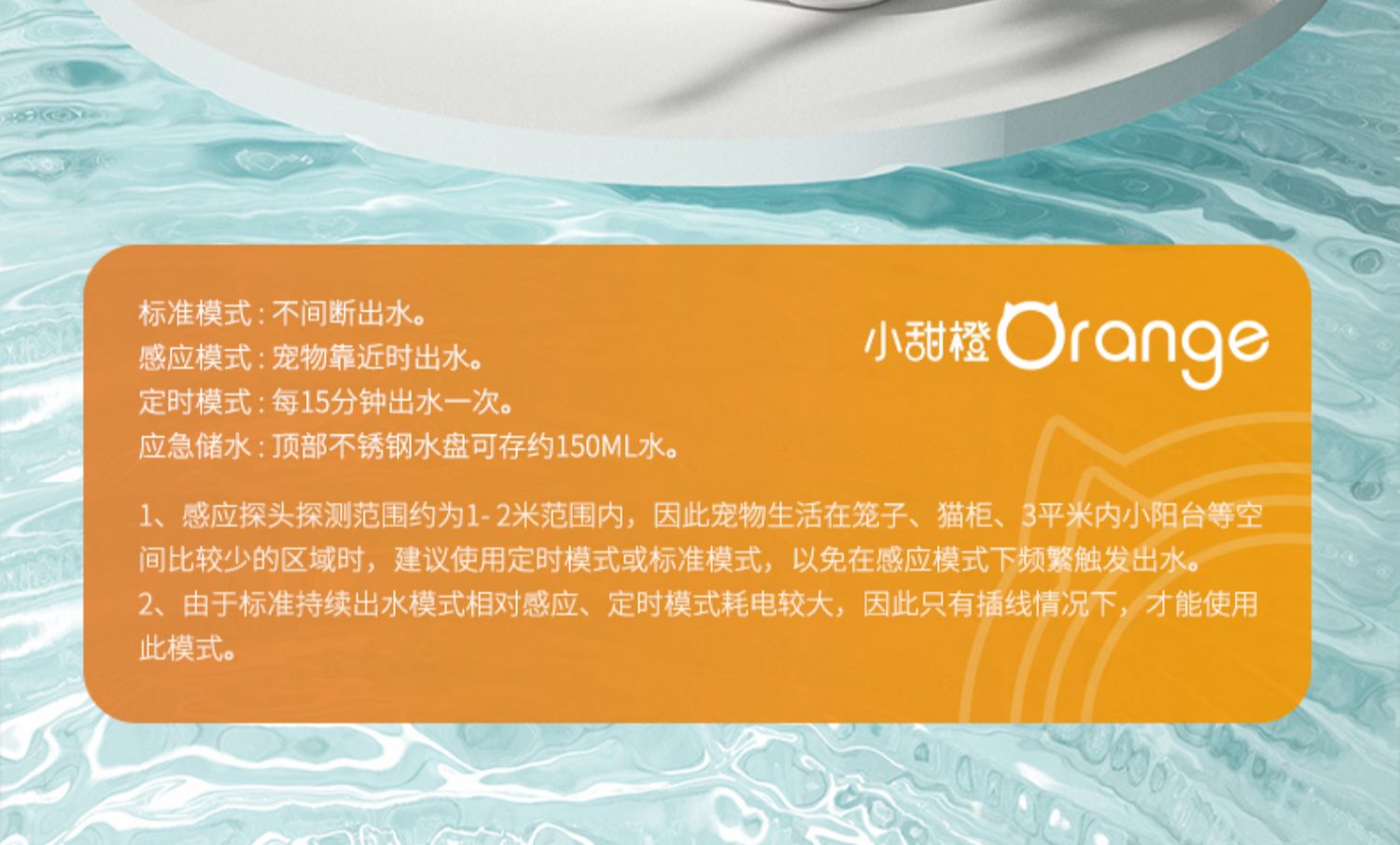 小甜橙猫咪饮水机流动水不插电宠物无线感应自动循环喝水器狗用品
