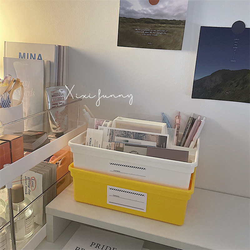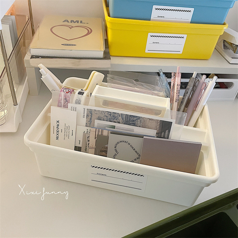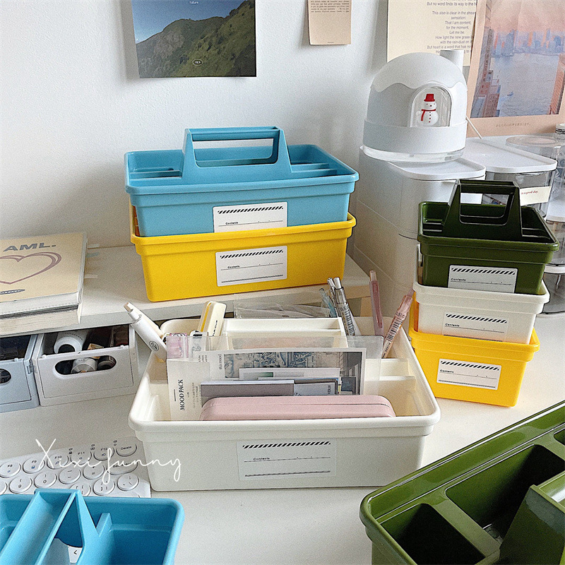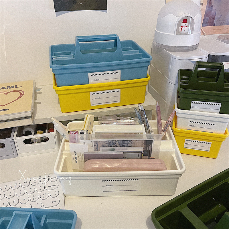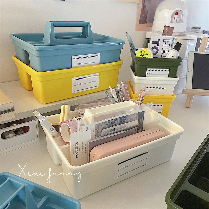 少女心收纳盒桌面手提式收纳盒整理盒多功能带分格可叠加置物盒子