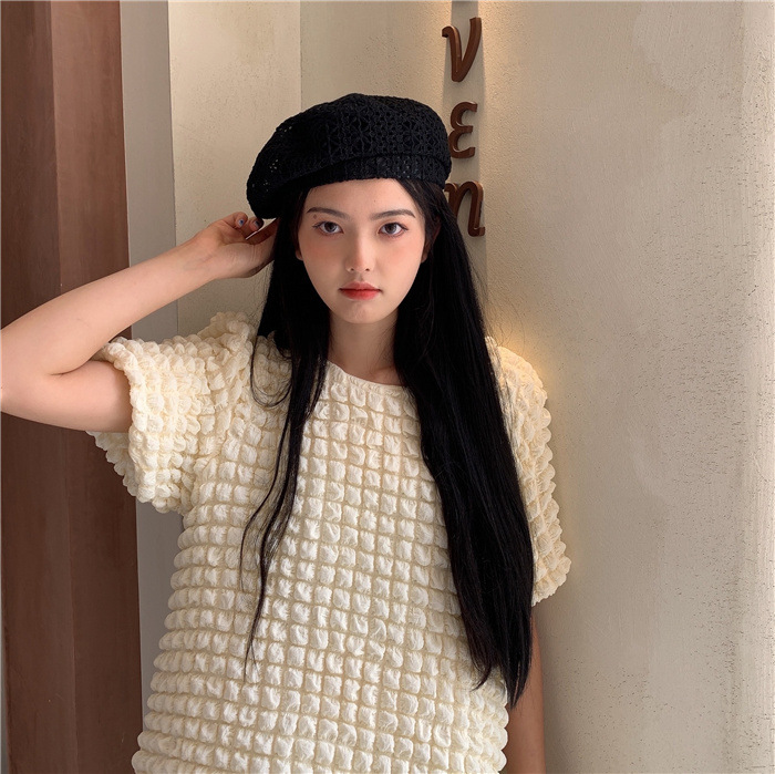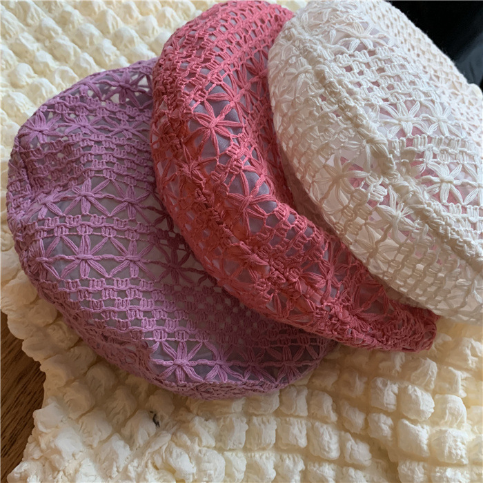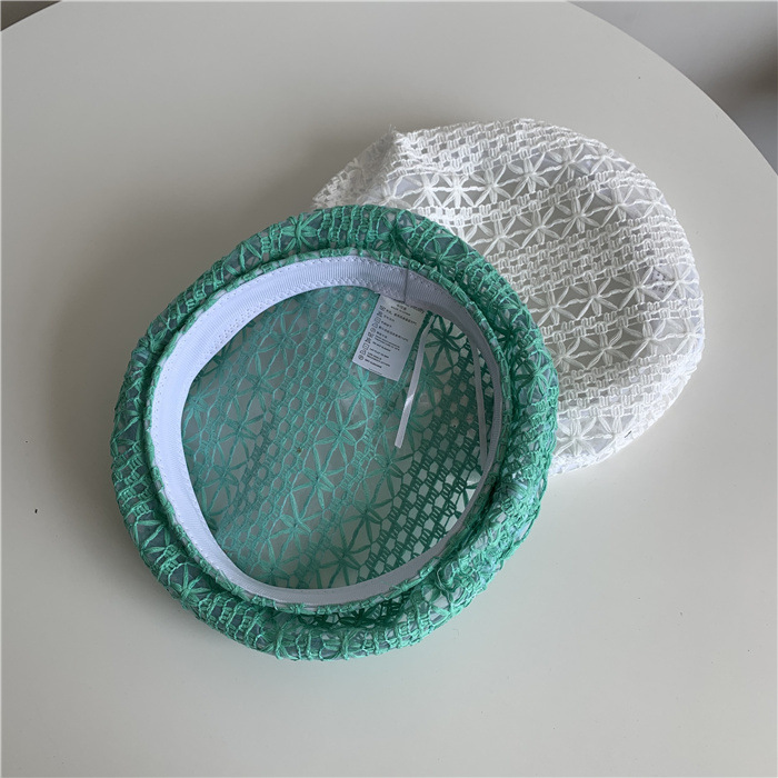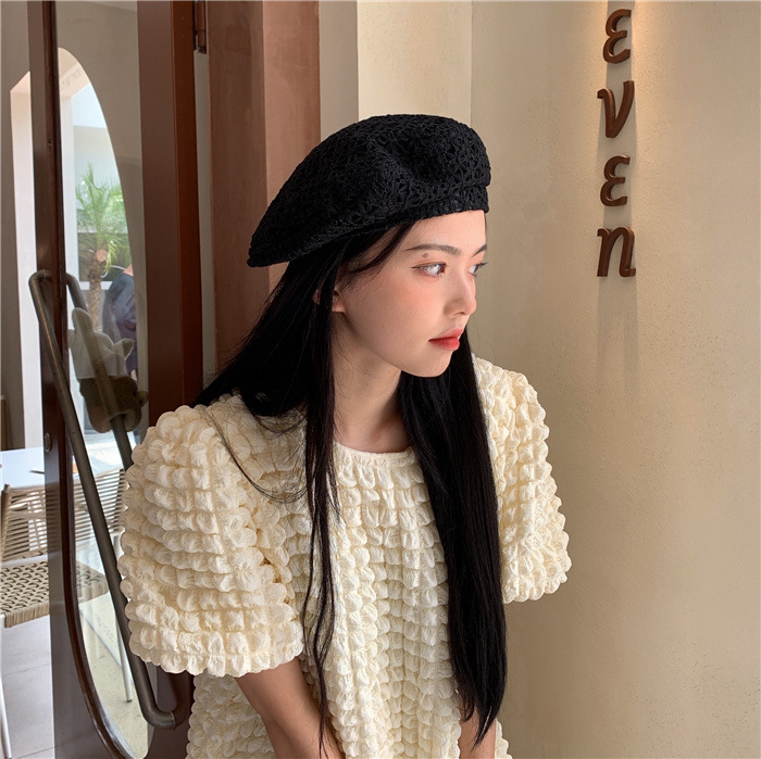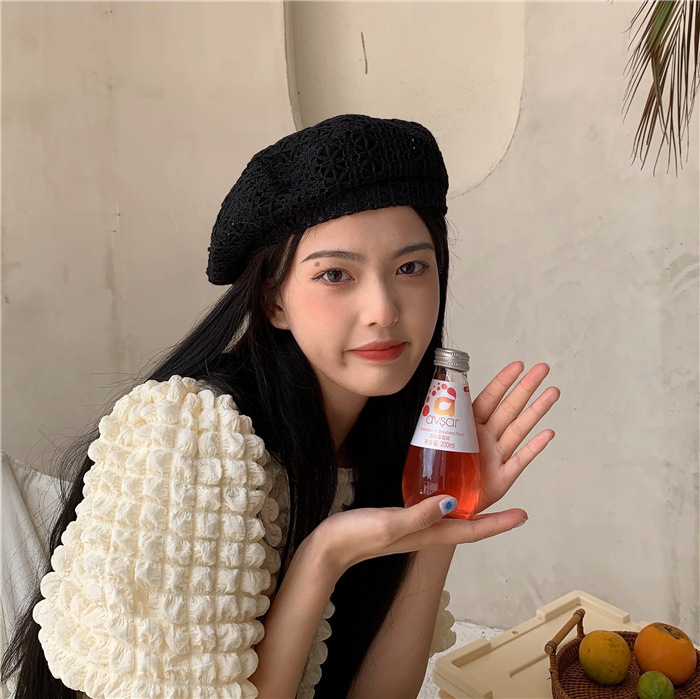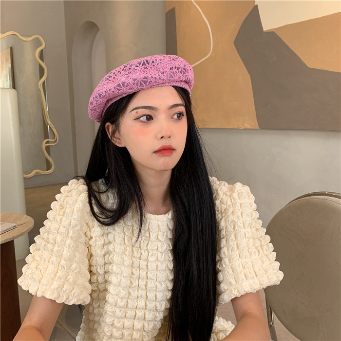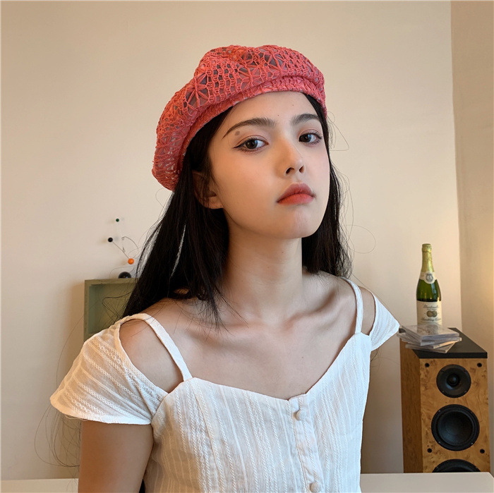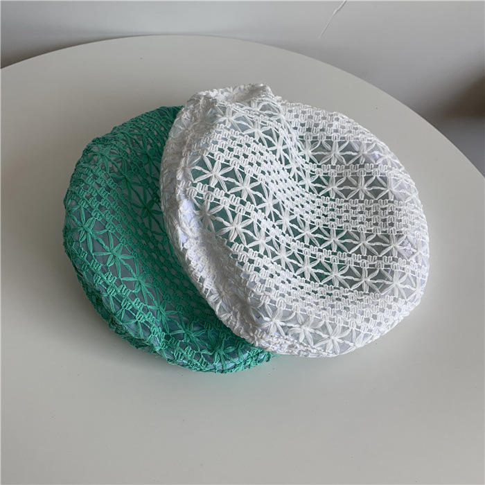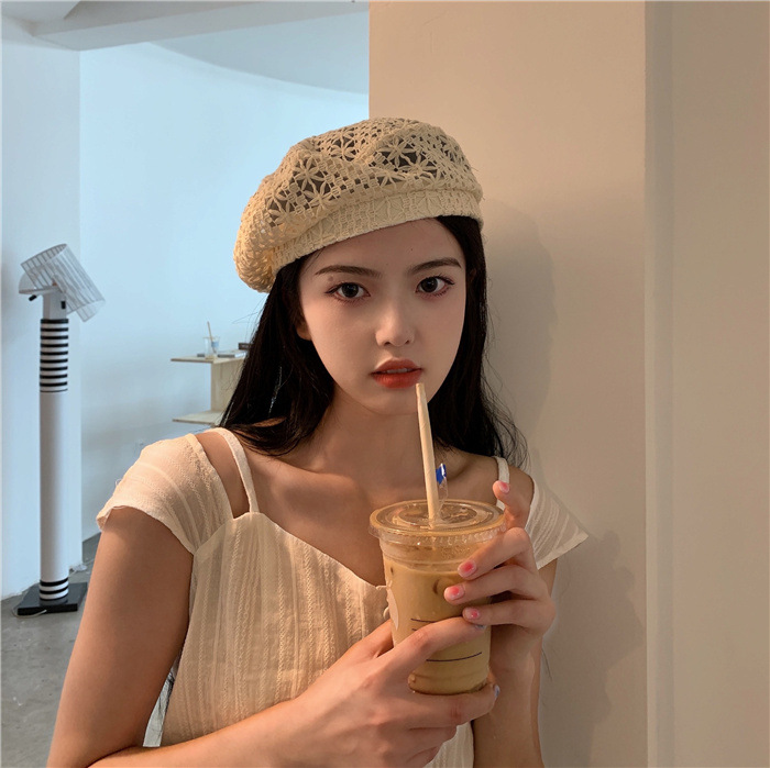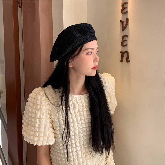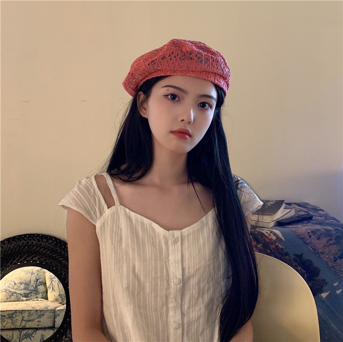 帽子女韩国甜美镂空透气蕾丝贝雷帽夏季薄款透气百搭时尚画家帽潮