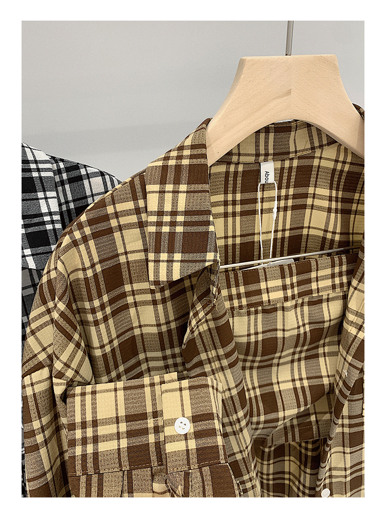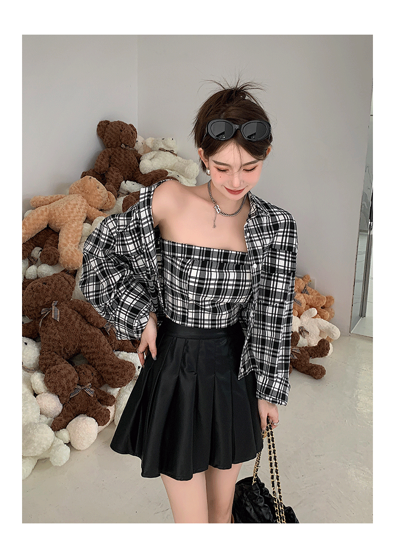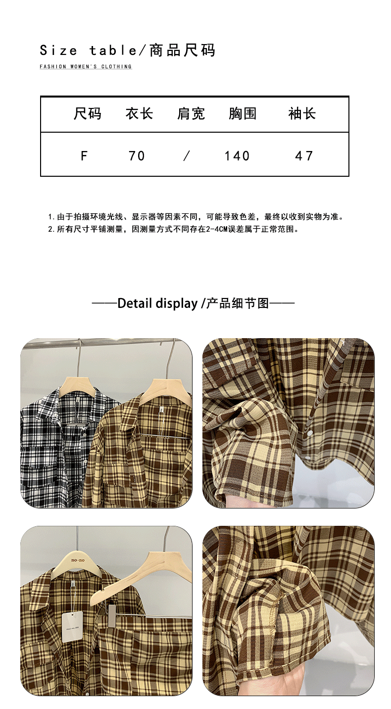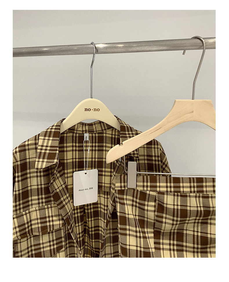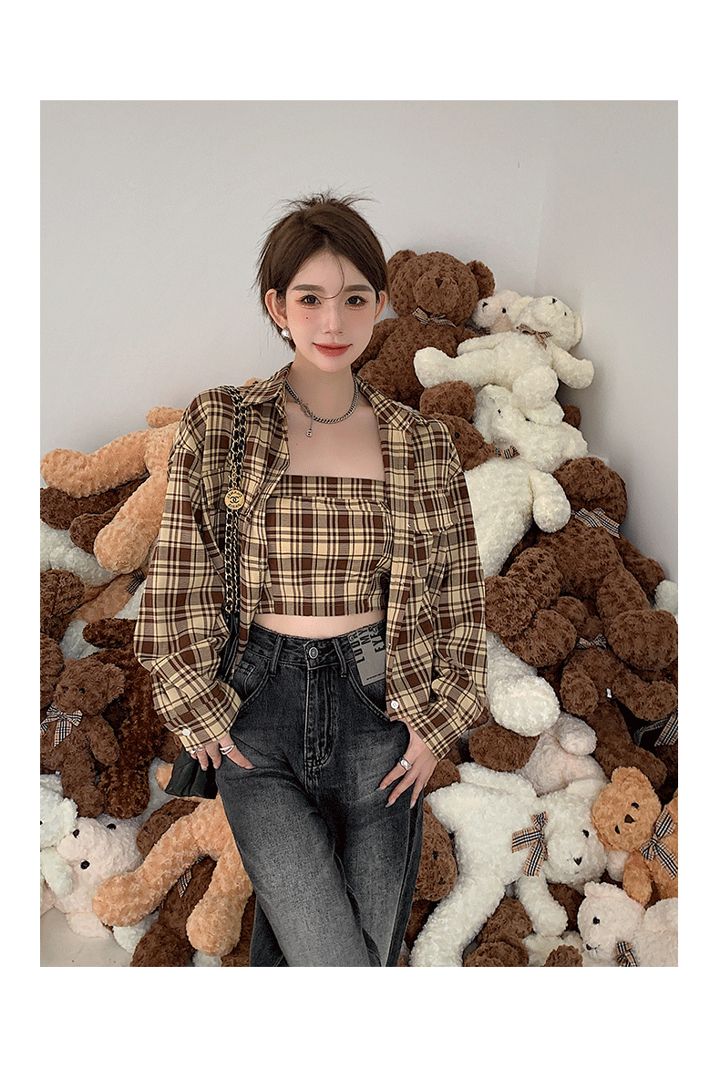 NONO 十三行秋季新款内搭抹胸外穿长袖格子衬衫外套女