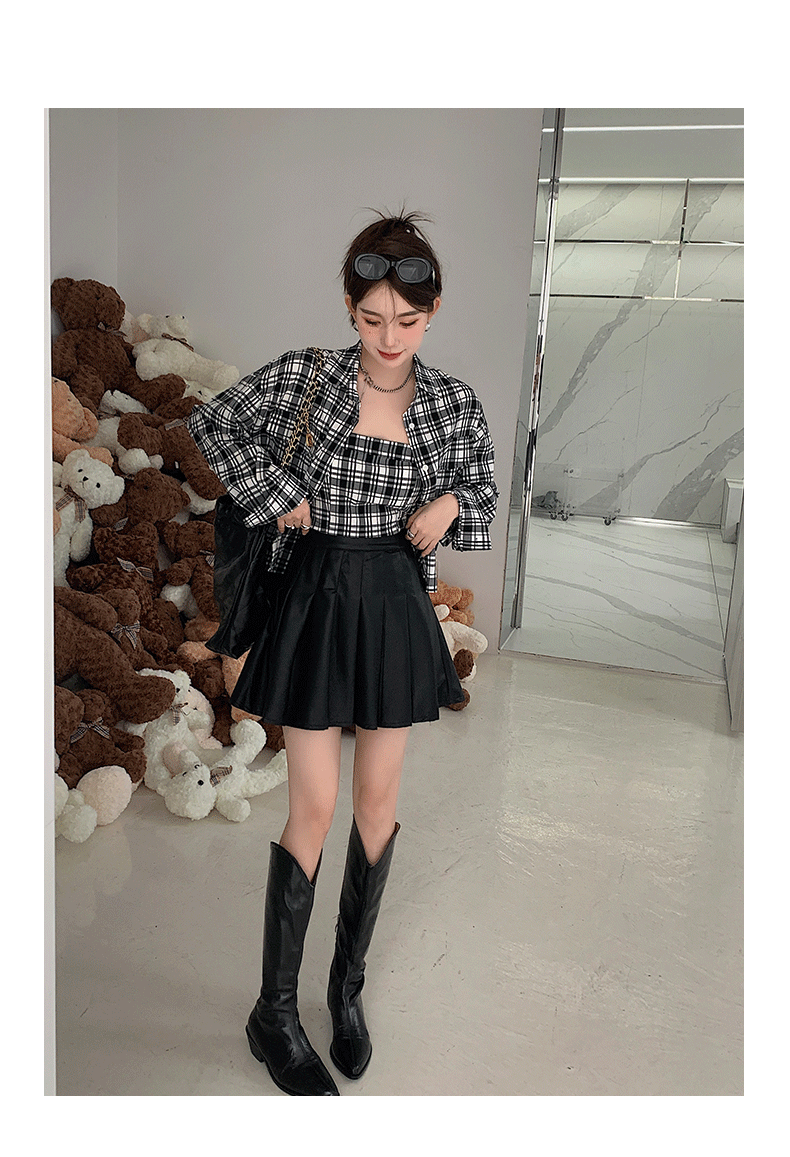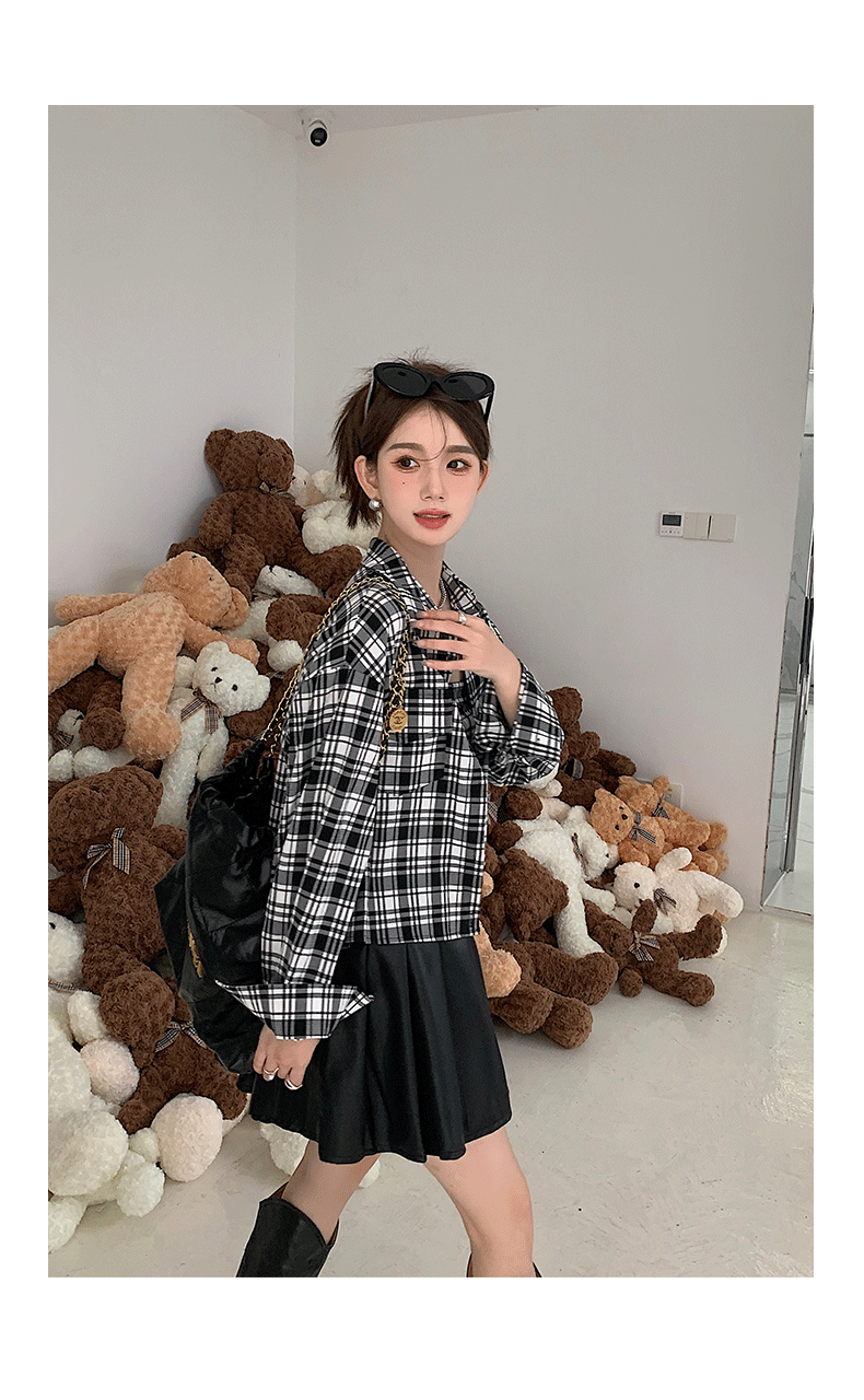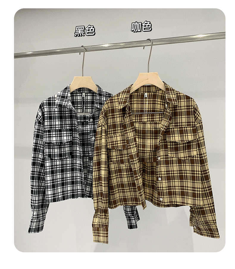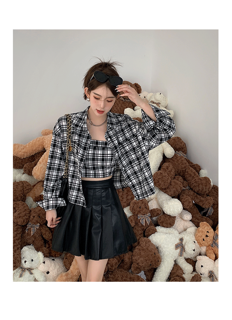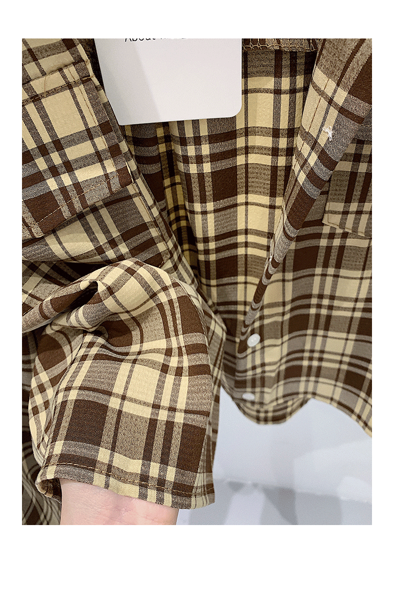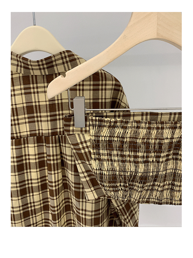 NONO 十三行秋季新款内搭抹胸外穿长袖格子衬衫外套女