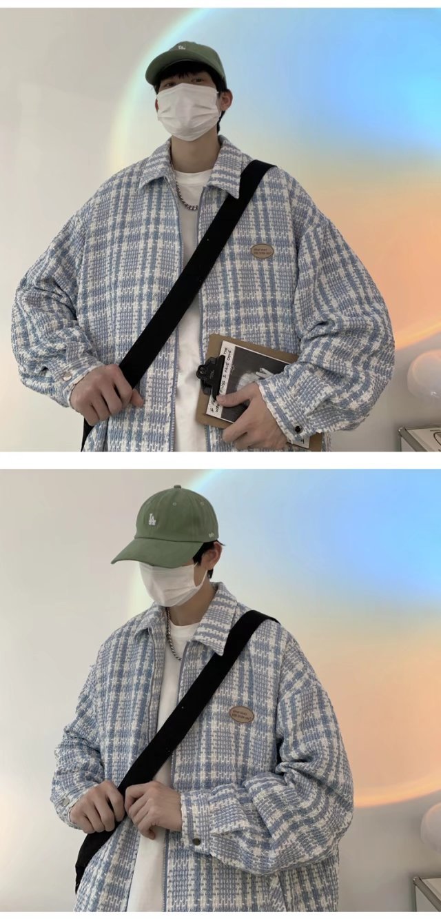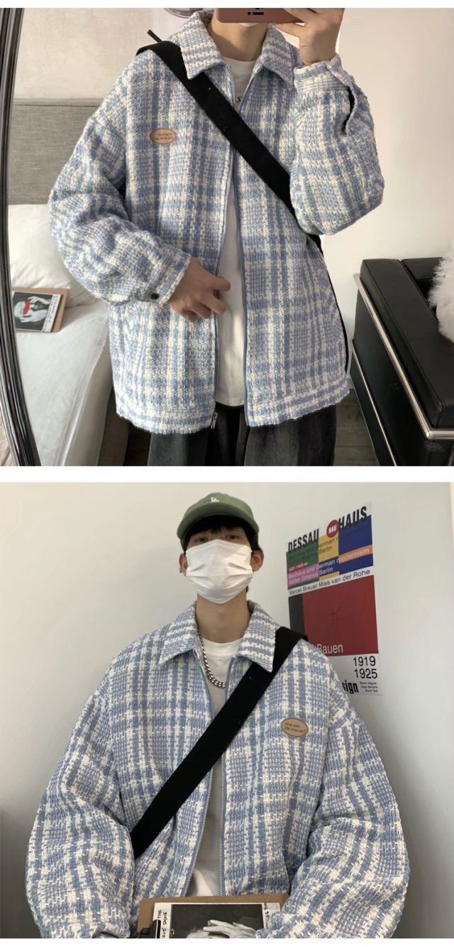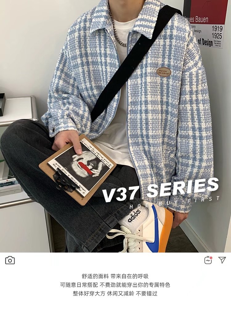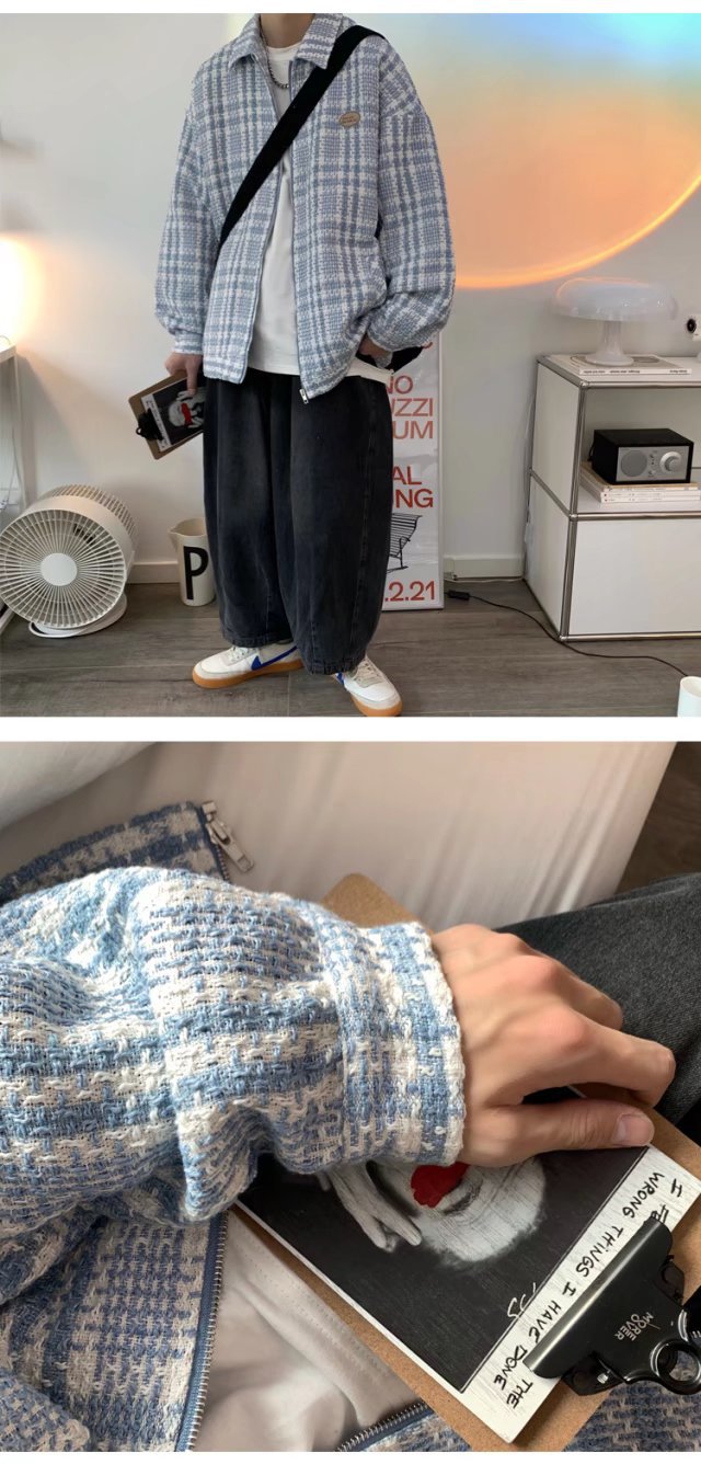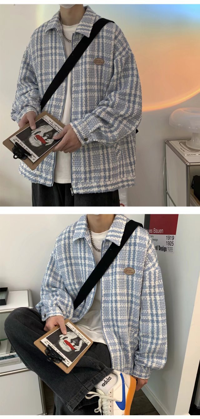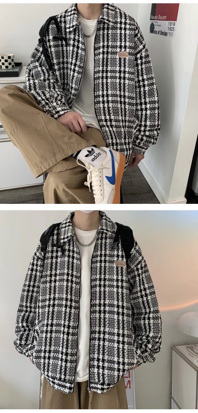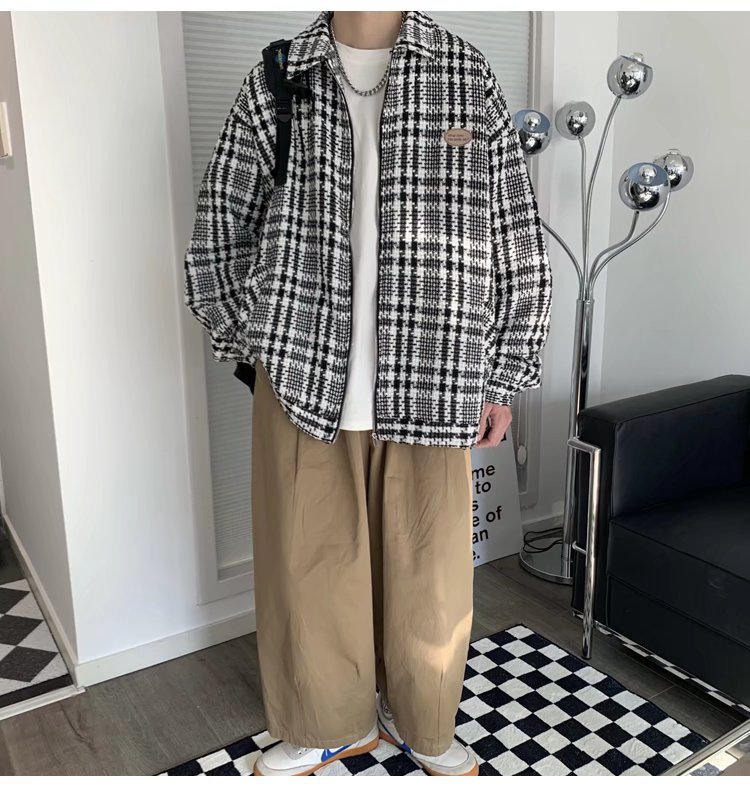 夹克男港风百搭宽松翻领上衣韩版潮流牌高街痞帅春秋新款格子外套