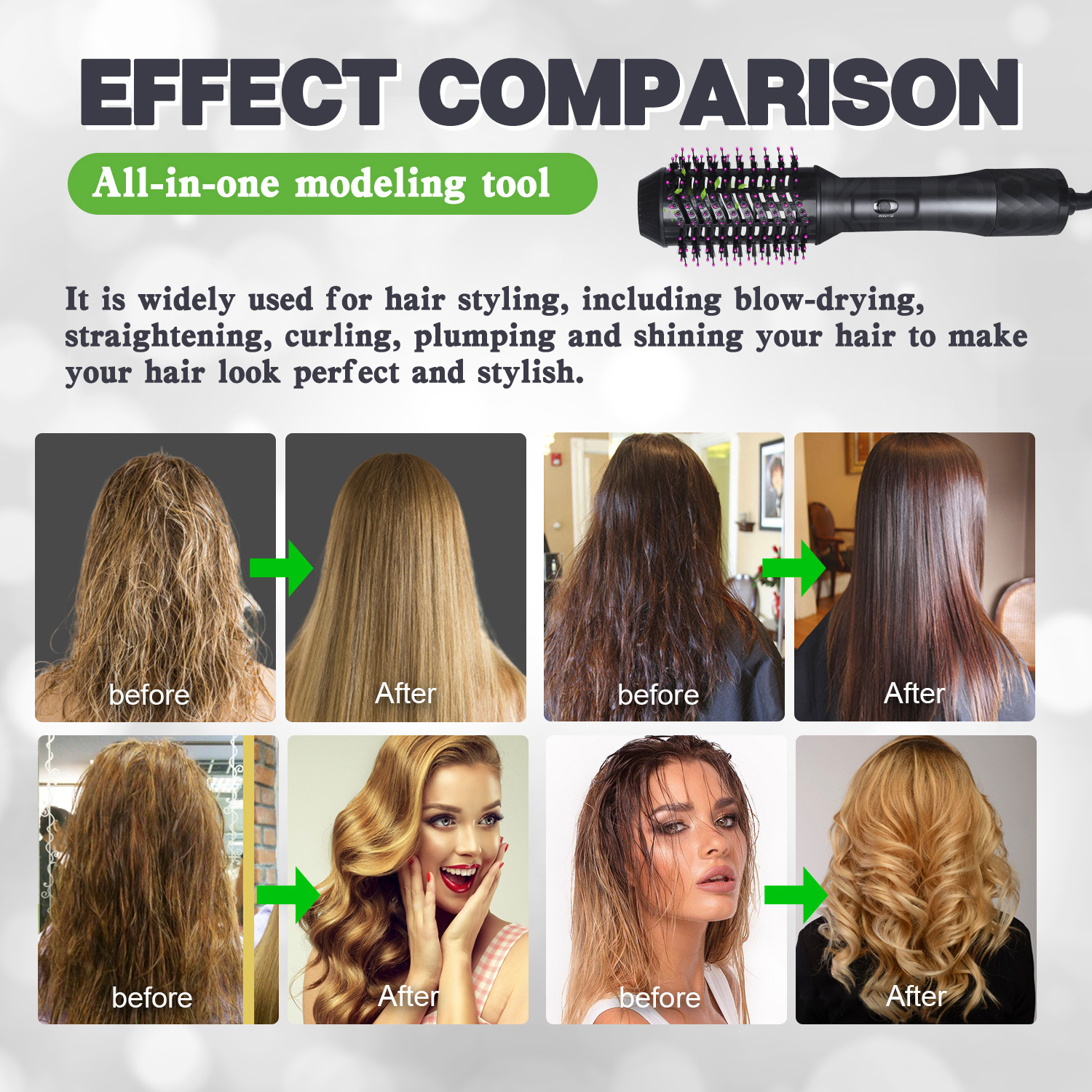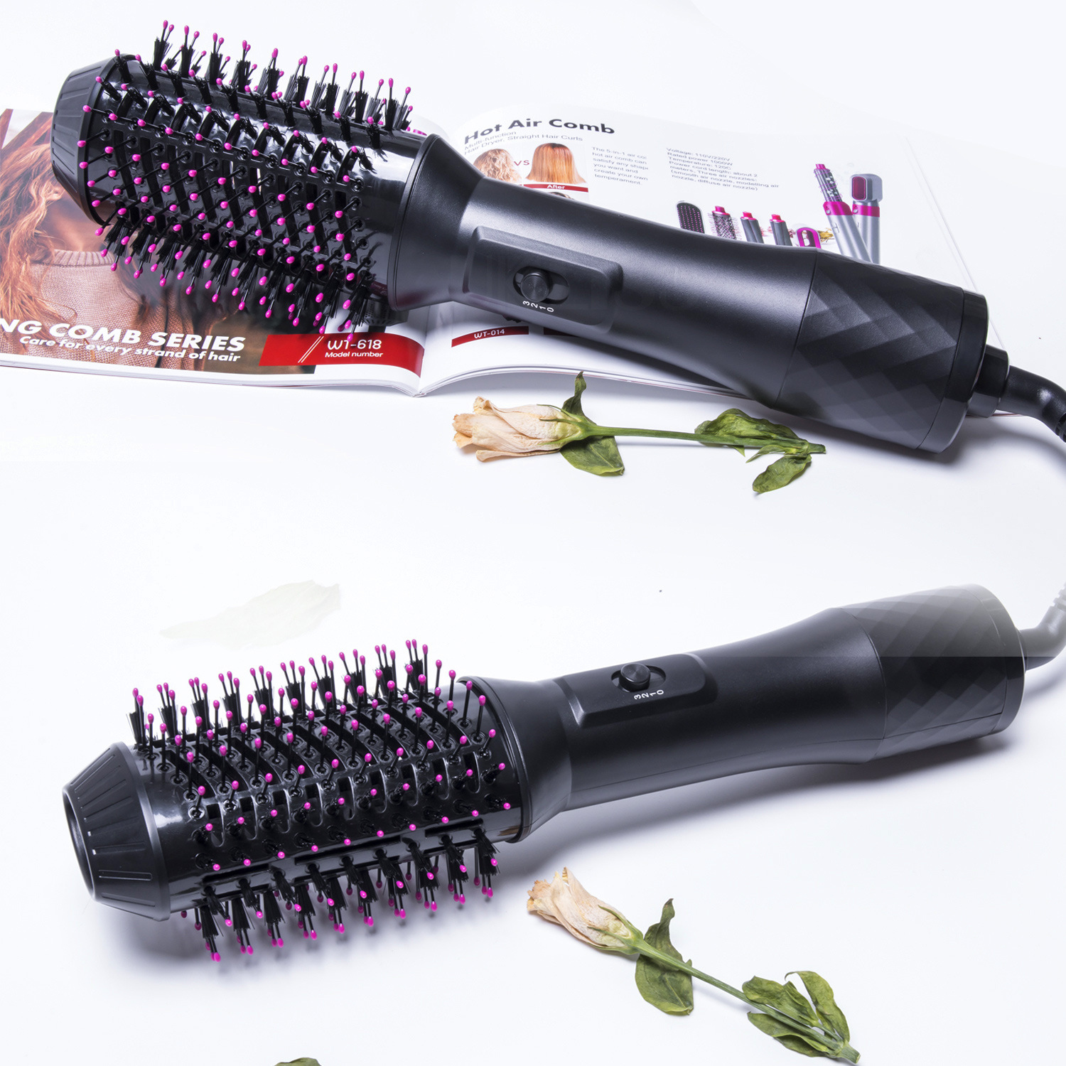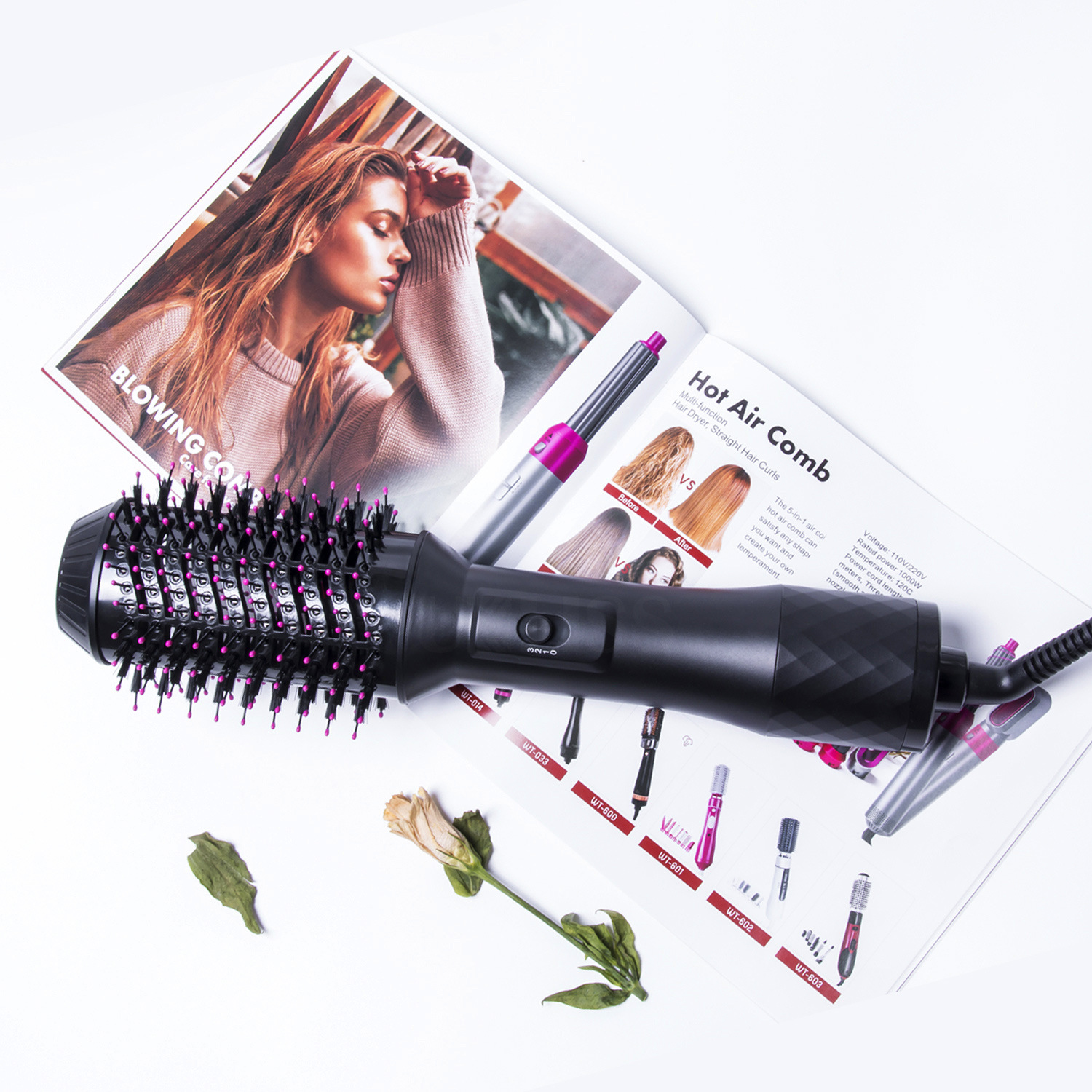 多功能五合一喷雾热风梳负离子吹风梳自动吸发卷发器直发梳吹风机