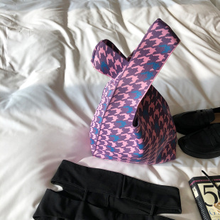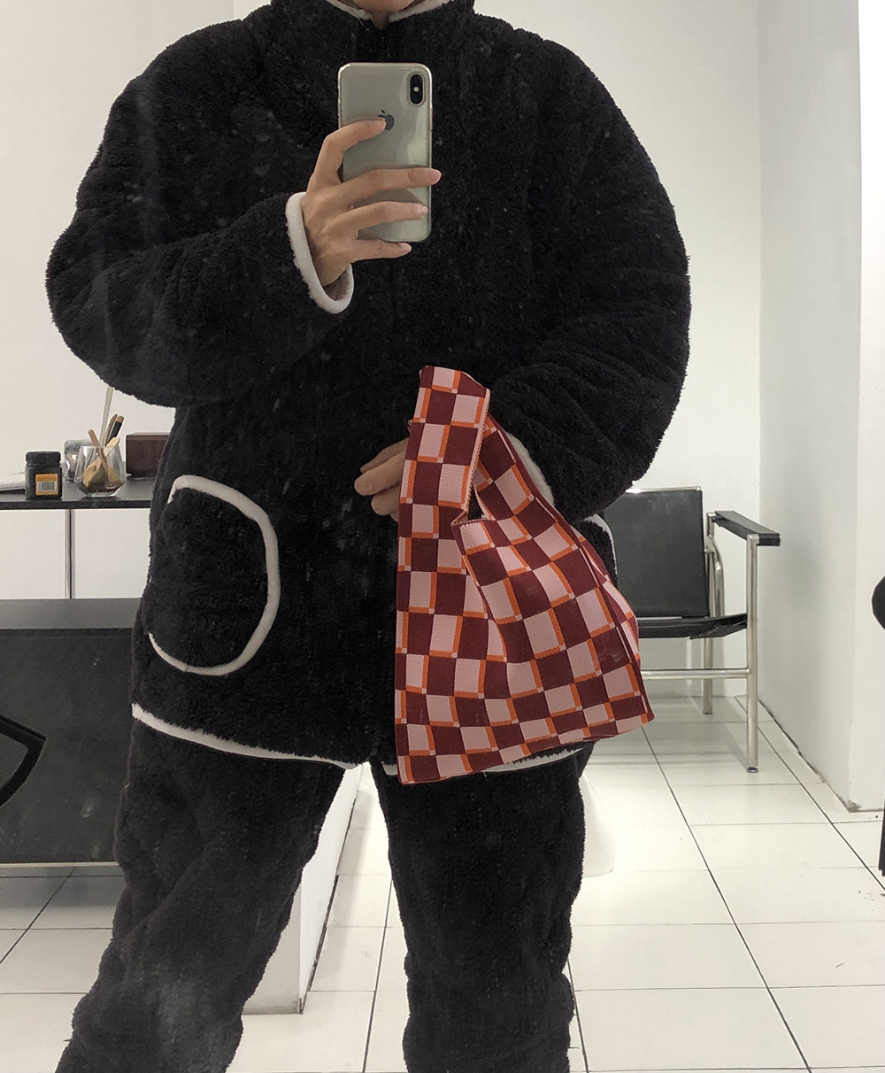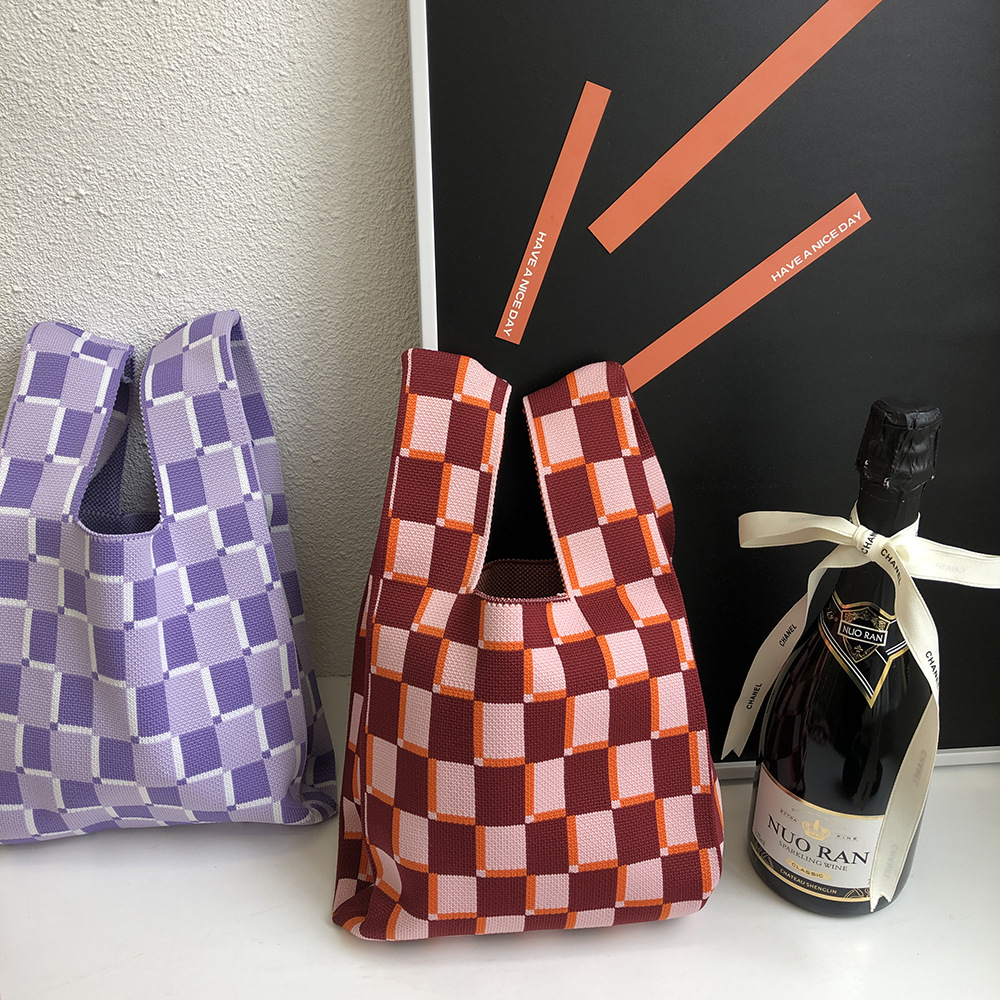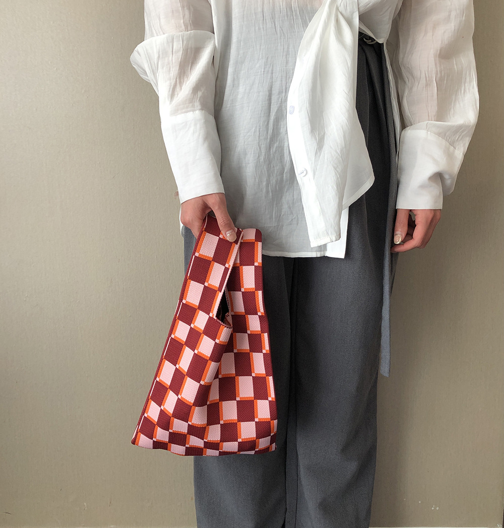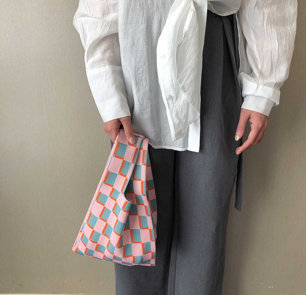 mini小众设计师针织棋盘格日系包包高级质感手提包休闲托特手拎包