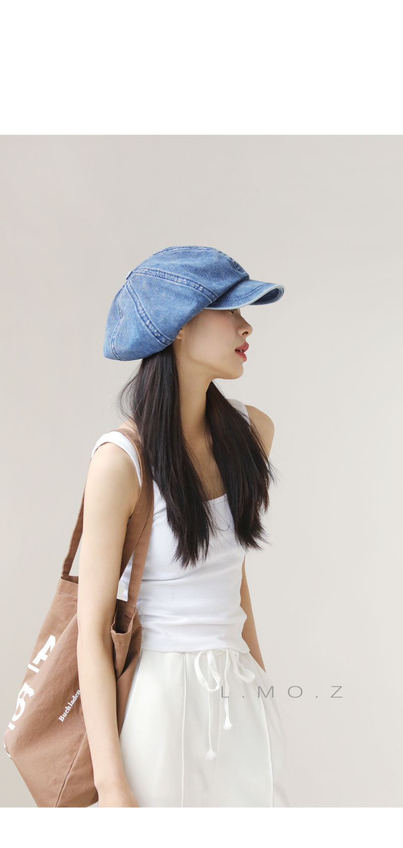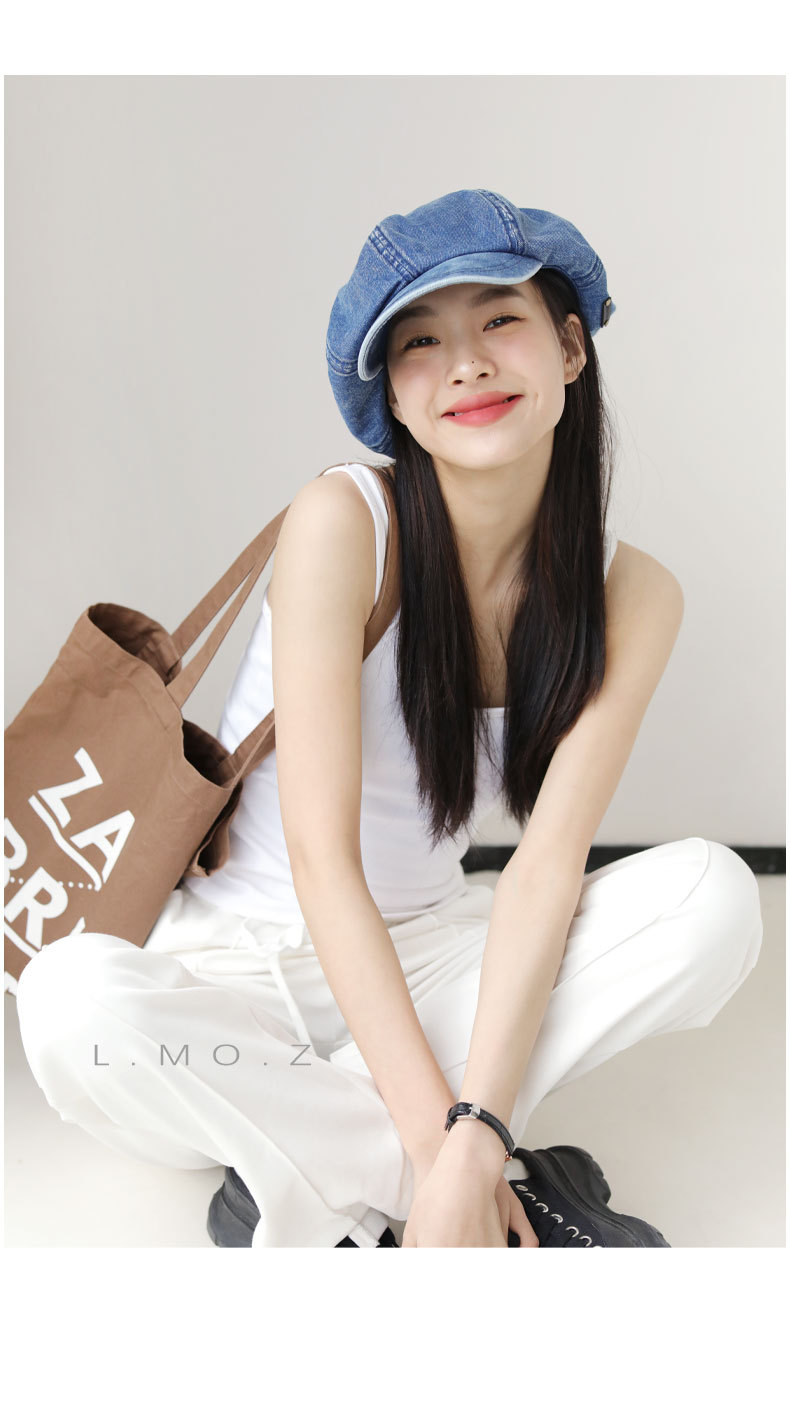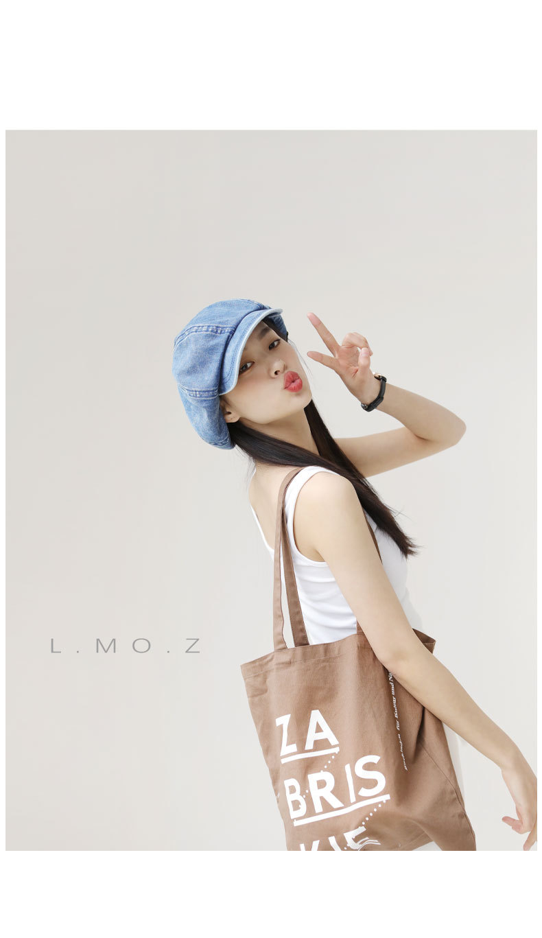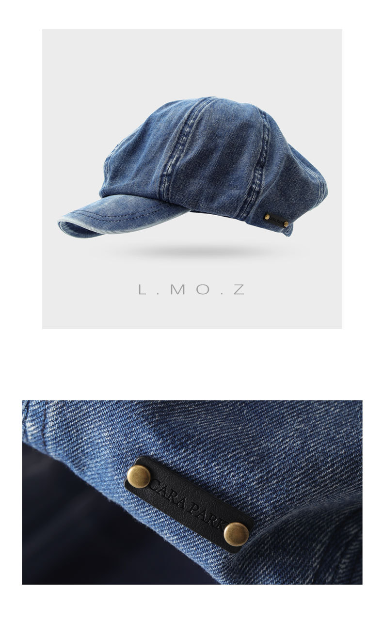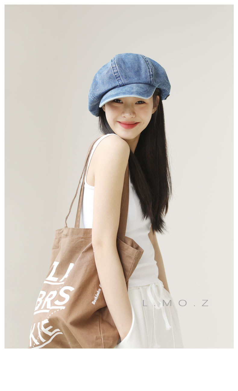 L.MOZ 春季水洗牛仔蓝色贝雷帽女时尚日系文艺八角帽春夏画家帽
