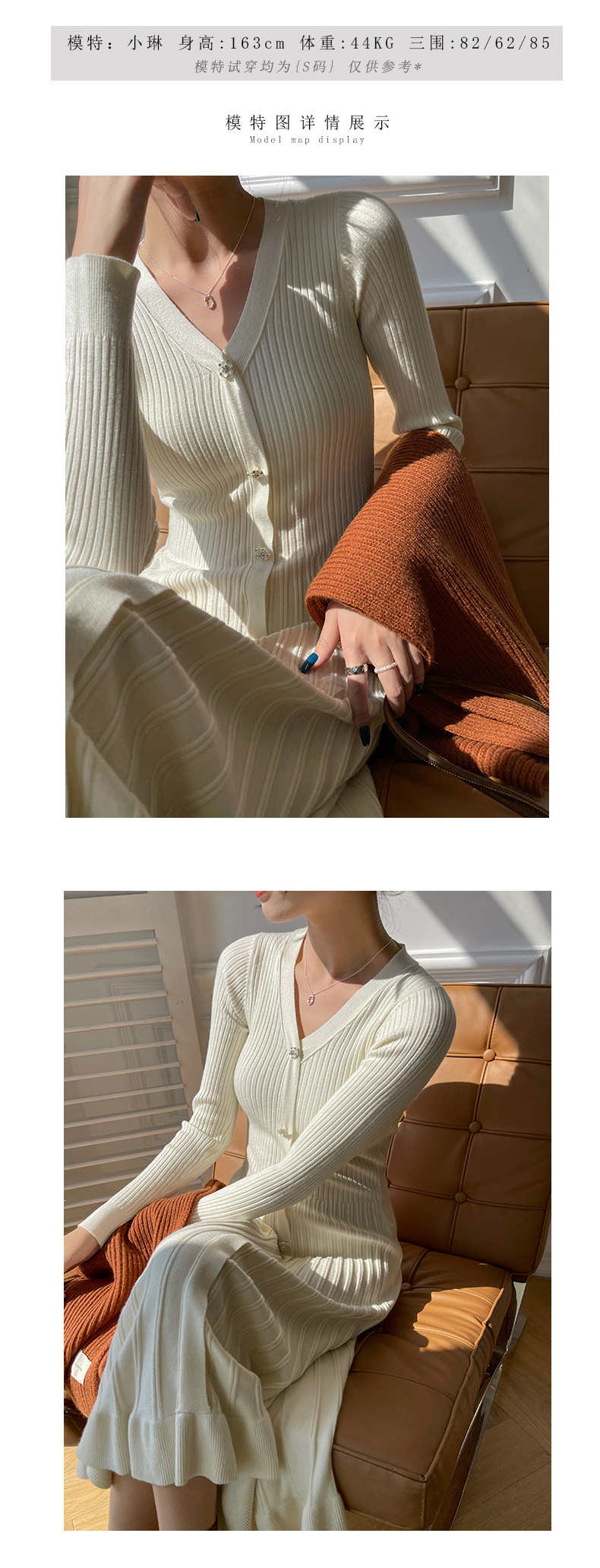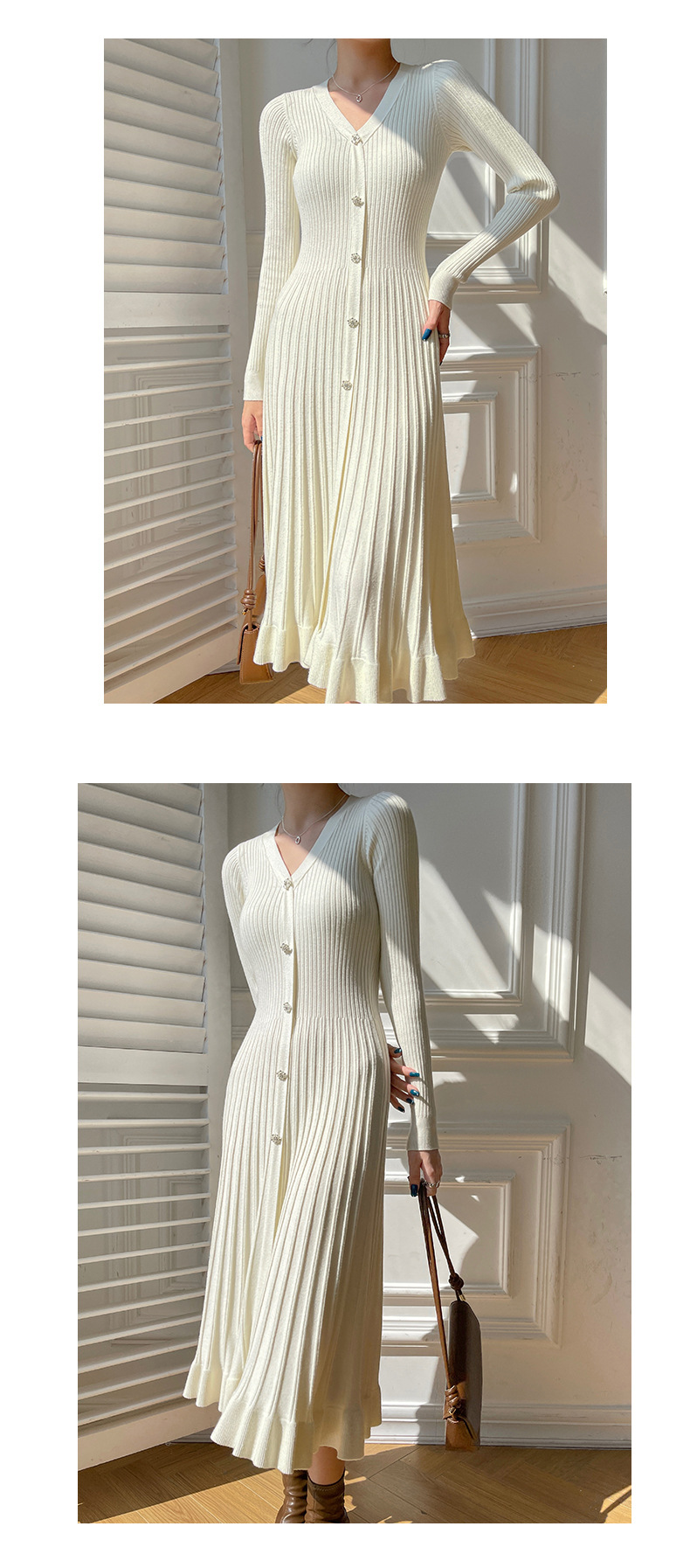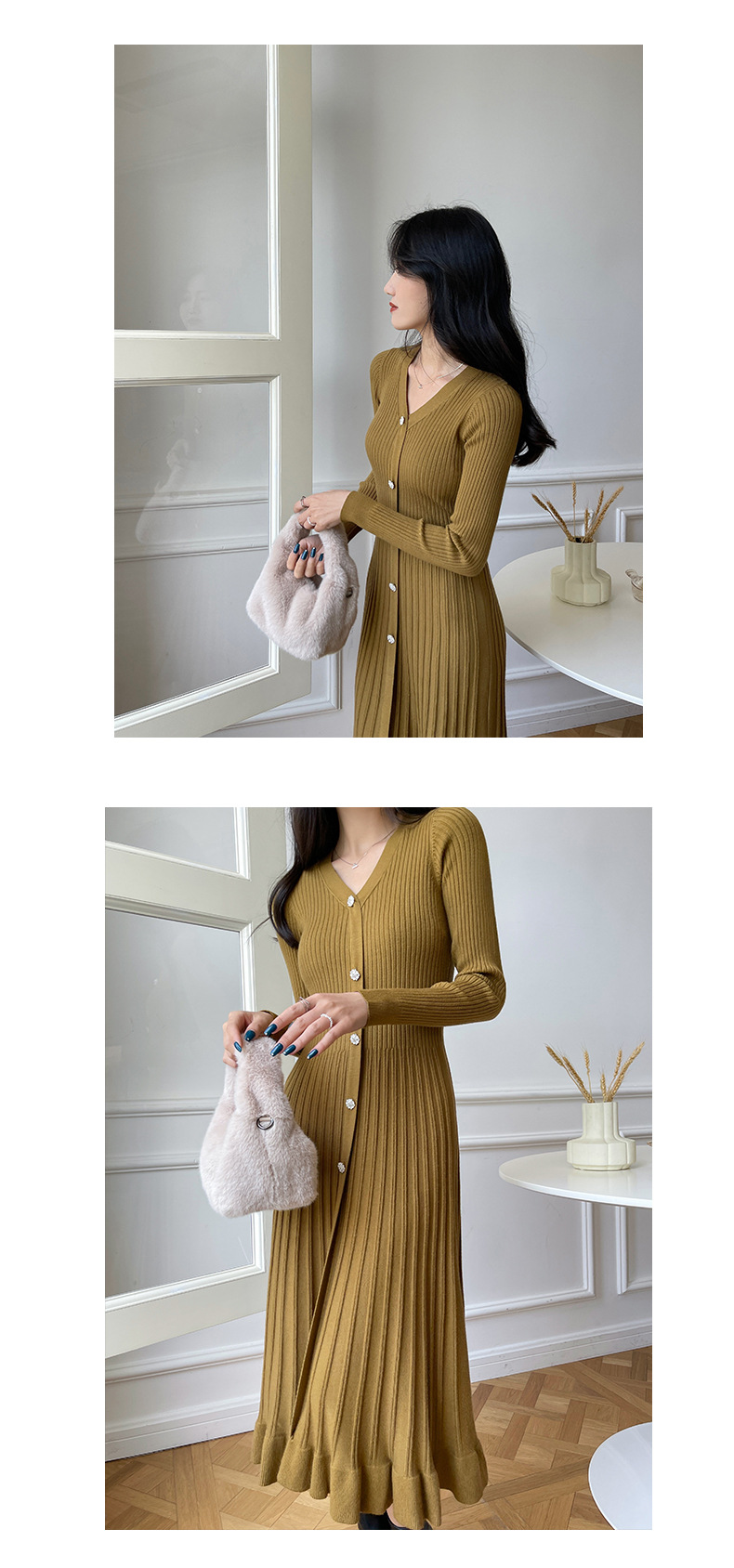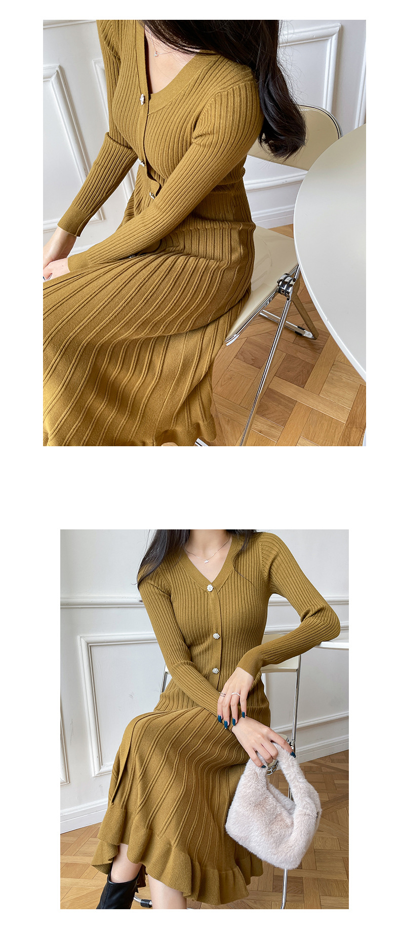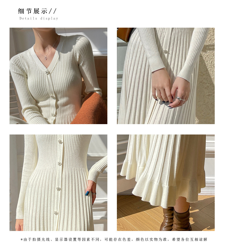 [桃桃]秋崔秀英同款时尚针织连衣裙女过膝长款减龄气质显瘦毛衣裙
