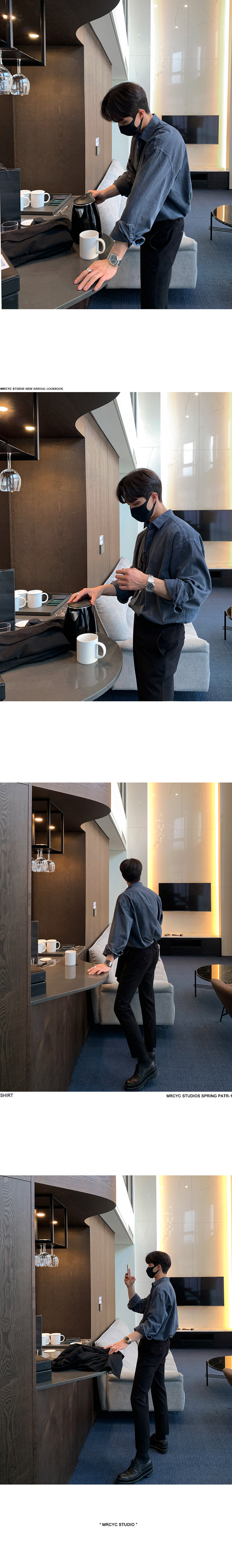 남성 가을 캐주얼 데님 긴팔 셔츠