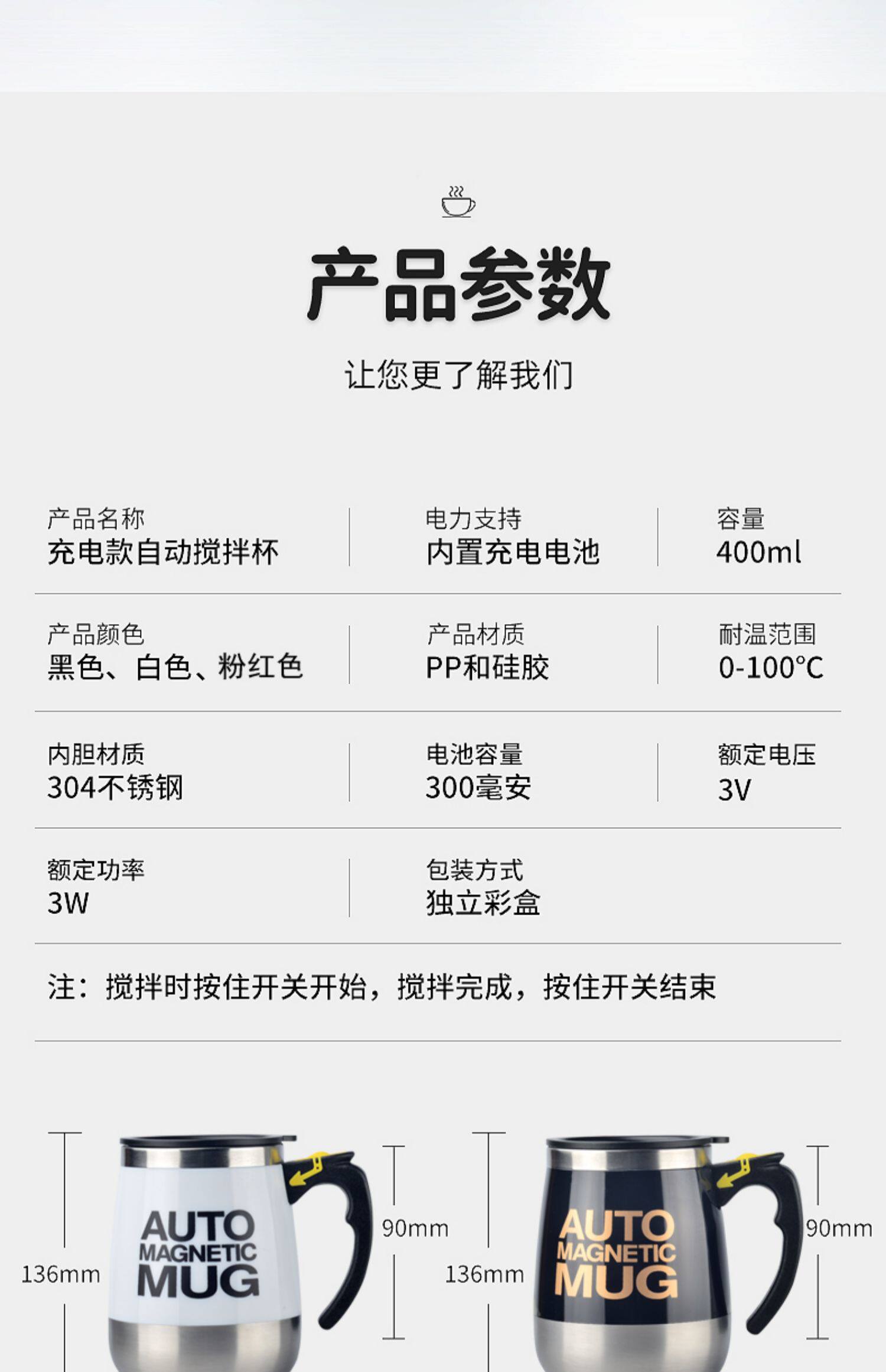 新款全自动搅拌杯磁力充电办公室懒人便携创意旋转杯子电动咖啡杯