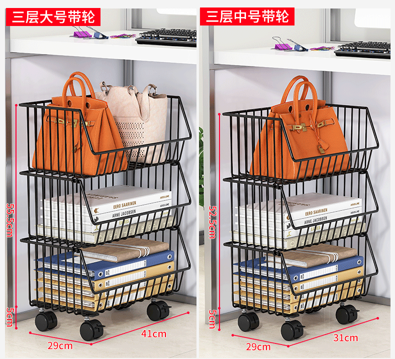 办公室置物架书包架办公桌下收纳柜工位包包放包神器移动推车书架