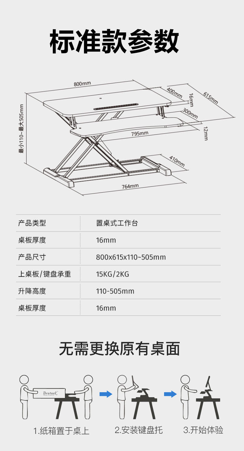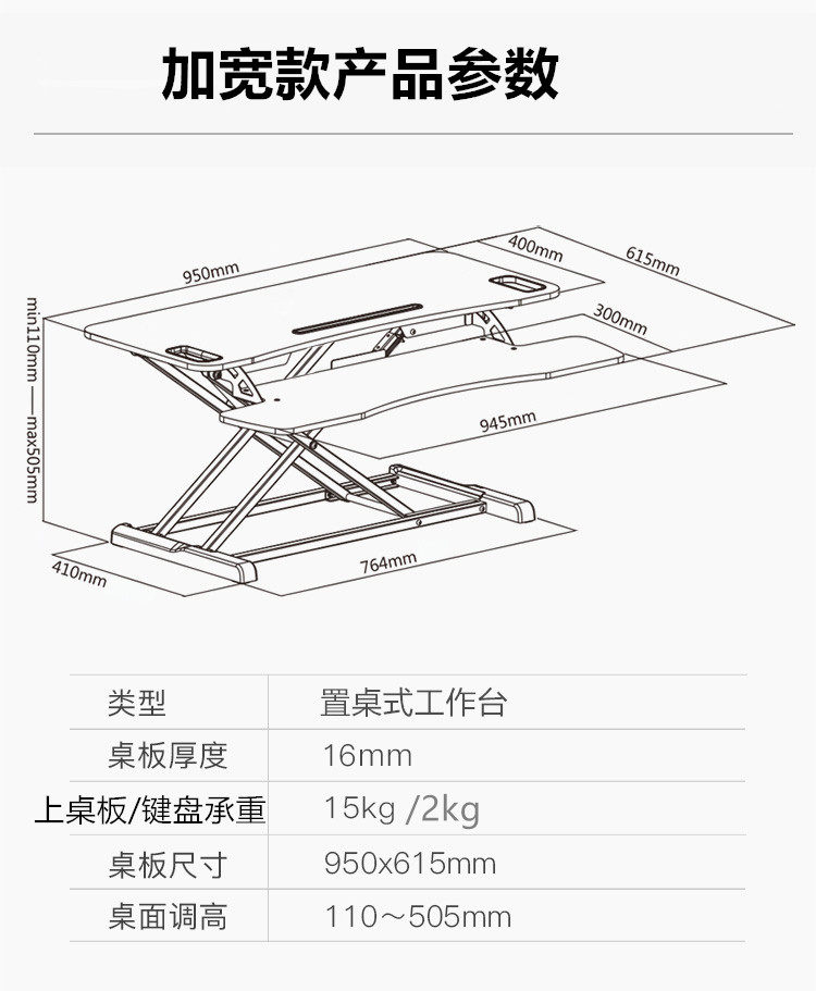 Frankwood站立式办公桌可升降电脑桌笔记本台式移动折叠工作台