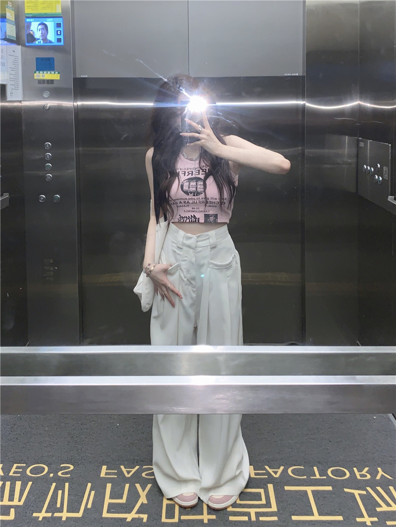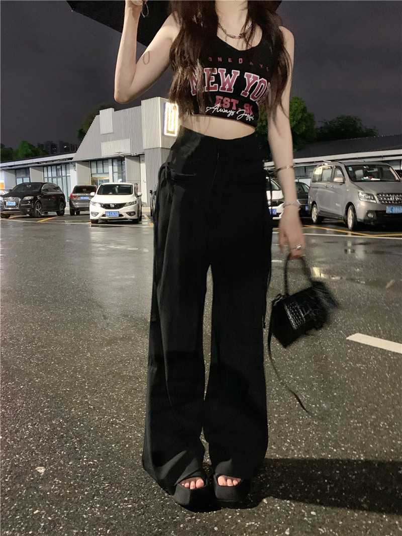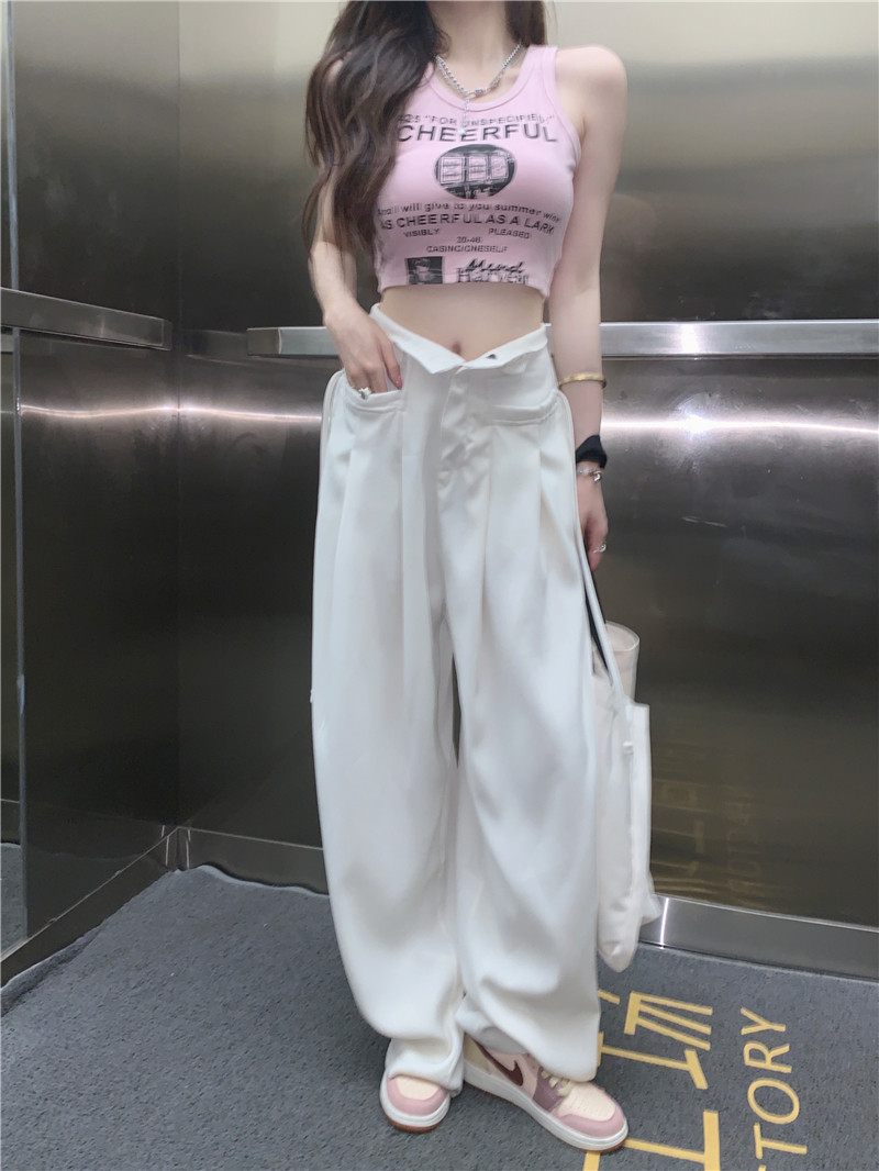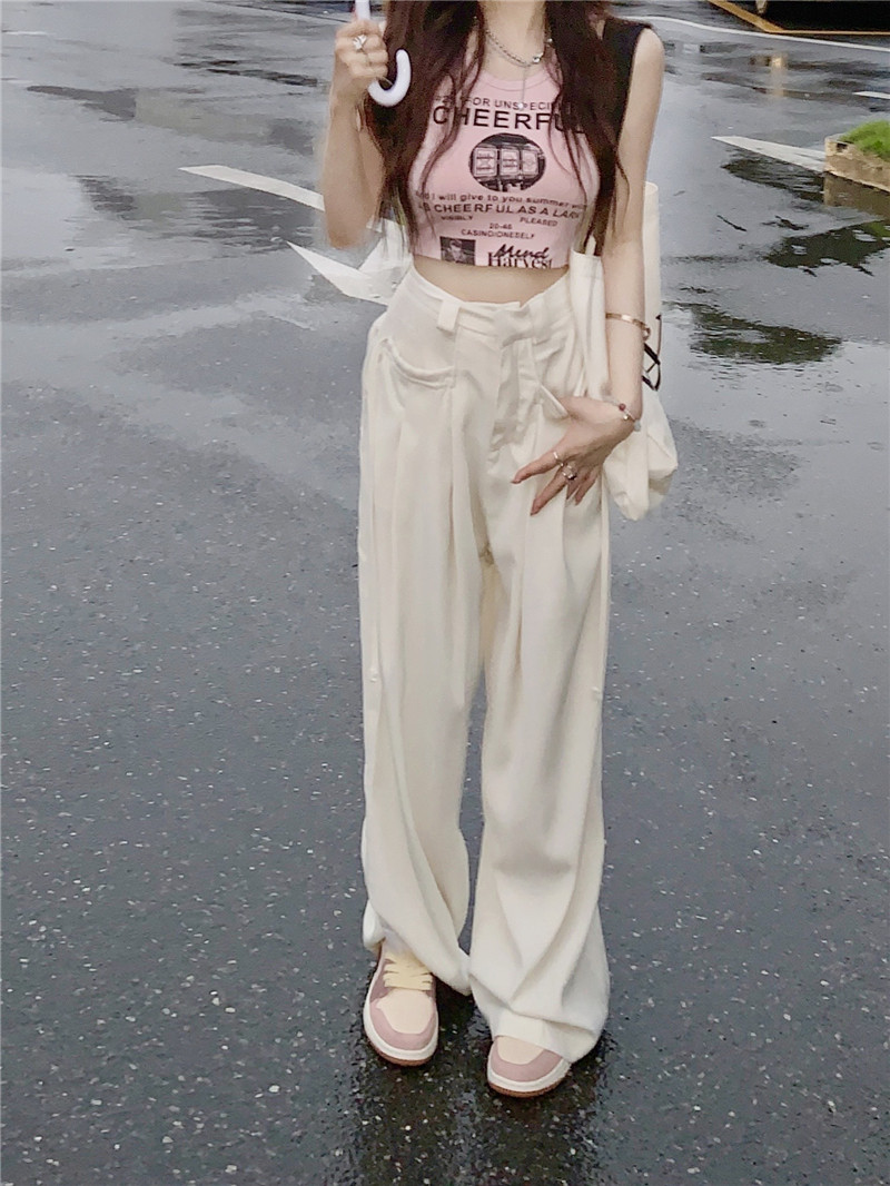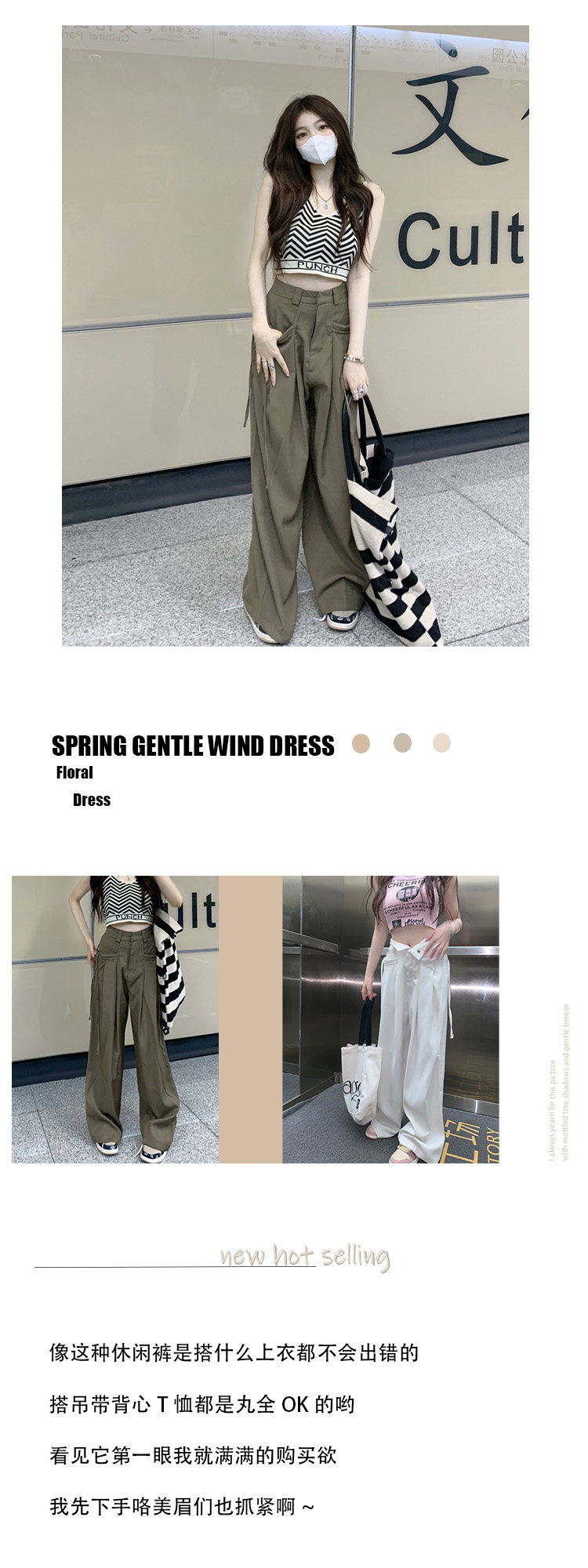 白色拖地休闲裤女装夏季美式工装裤高腰宽松设计感长裤阔腿裤裤子