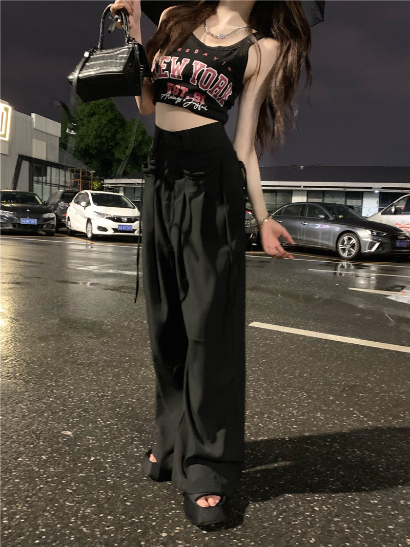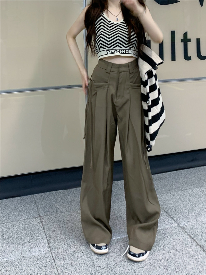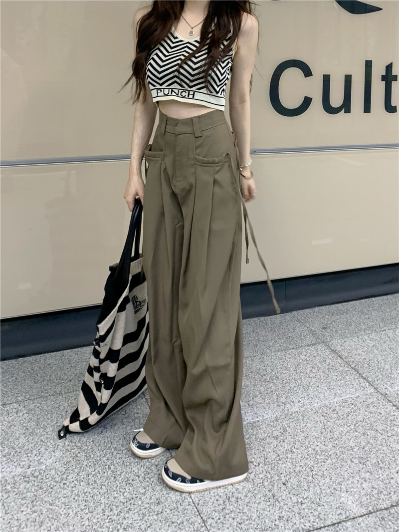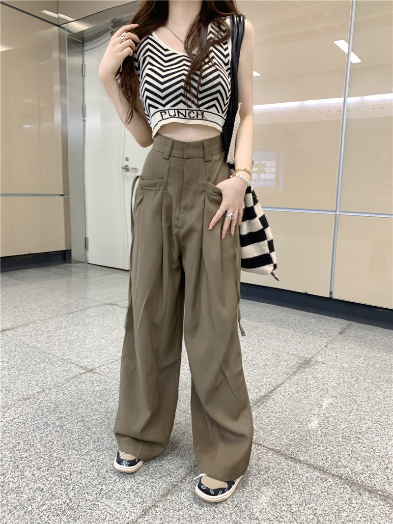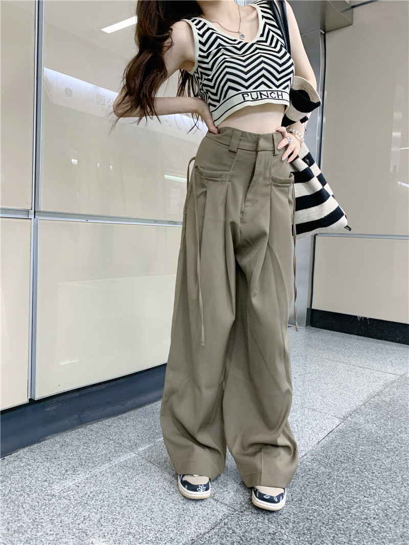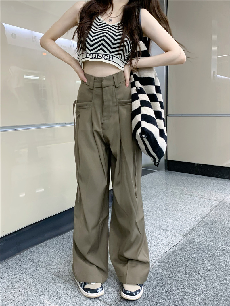 白色拖地休闲裤女装夏季美式工装裤高腰宽松设计感长裤阔腿裤裤子