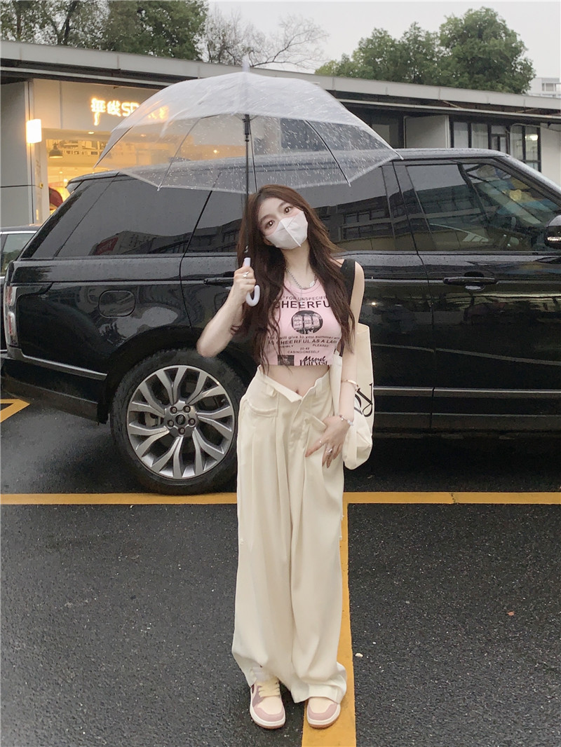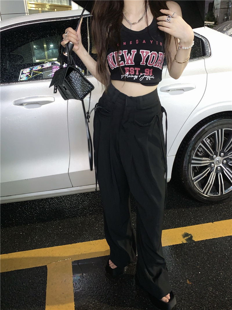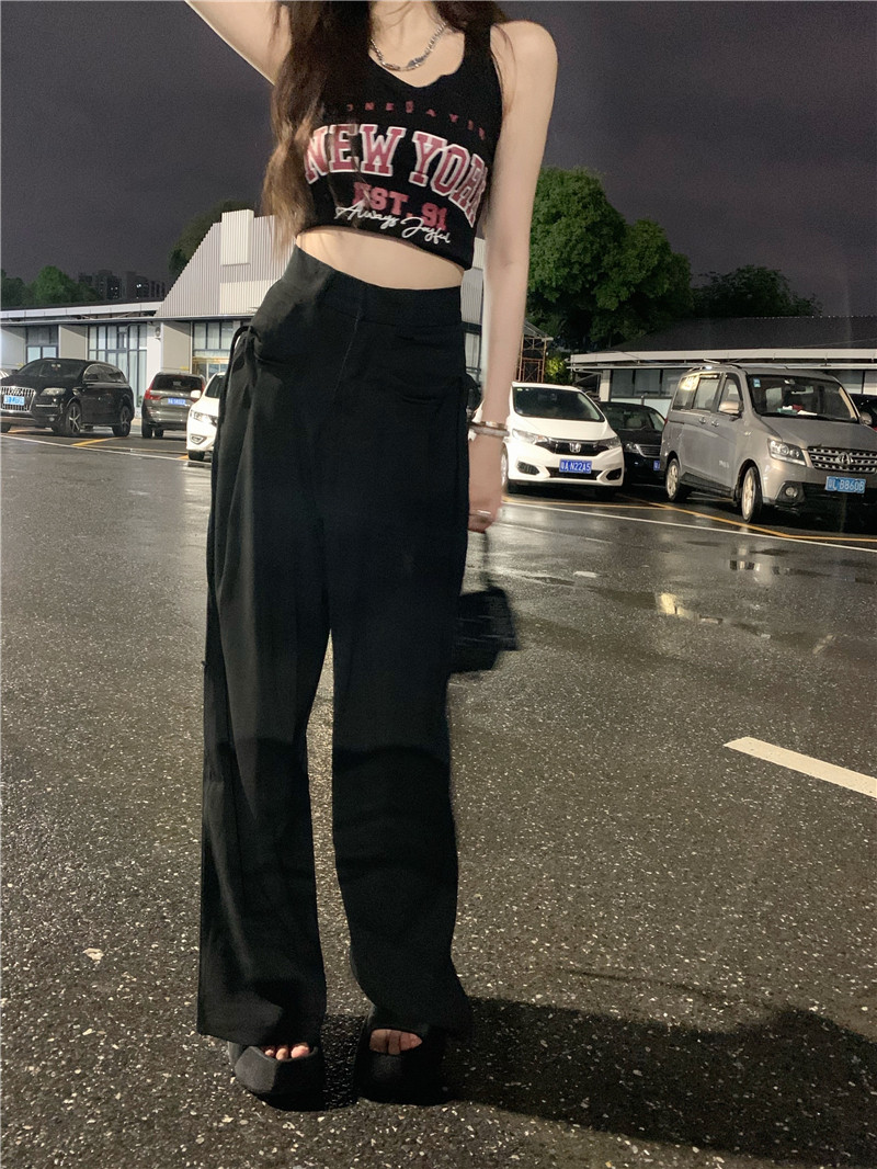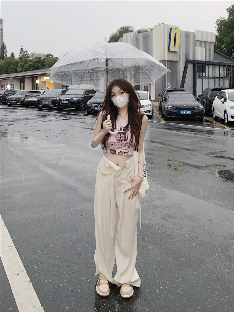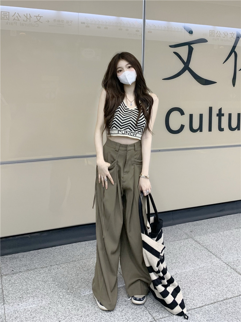 白色拖地休闲裤女装夏季美式工装裤高腰宽松设计感长裤阔腿裤裤子