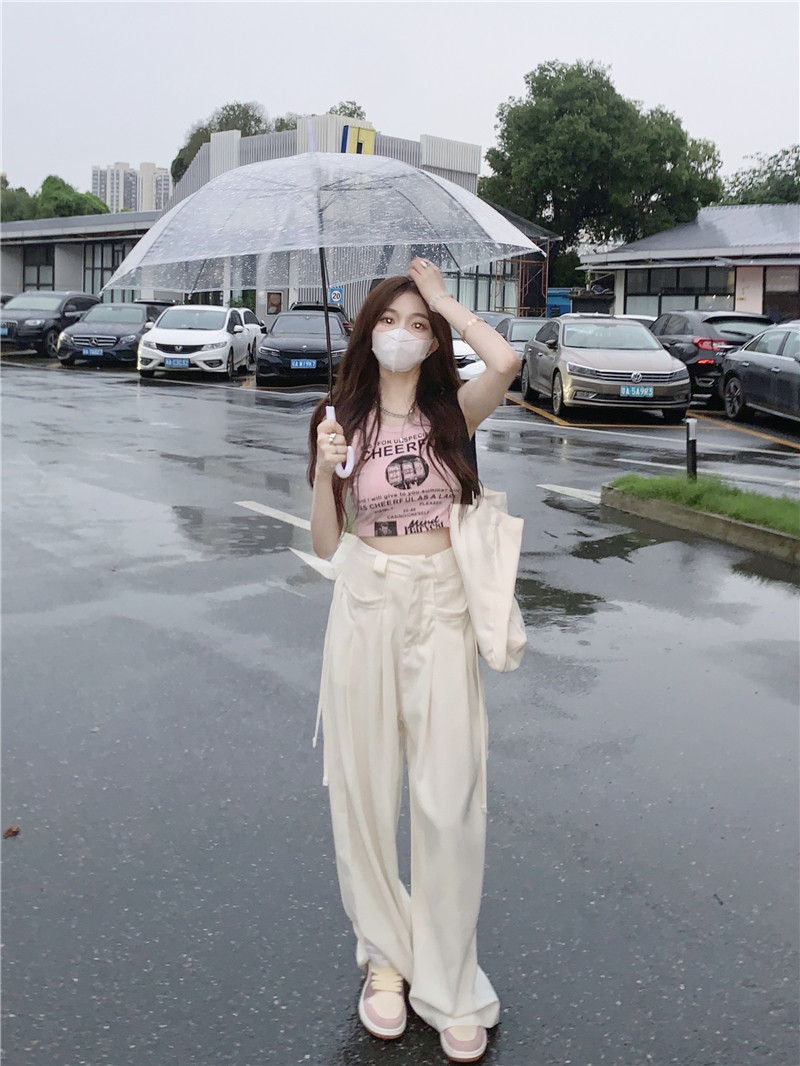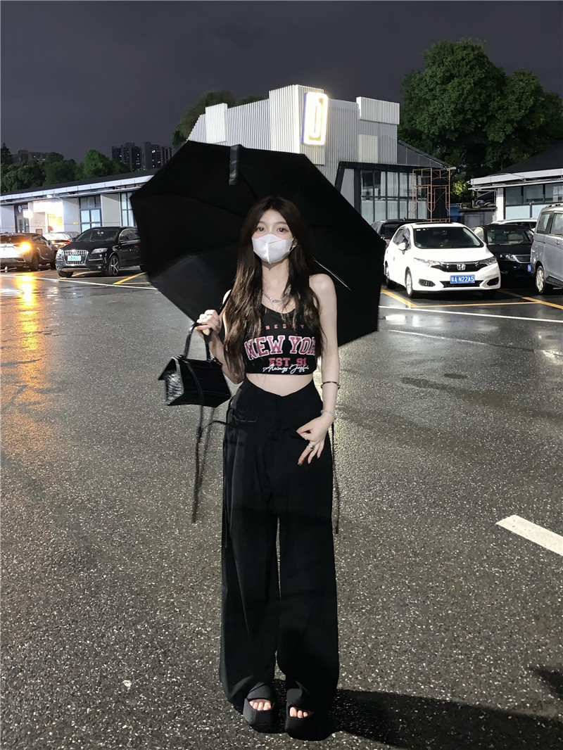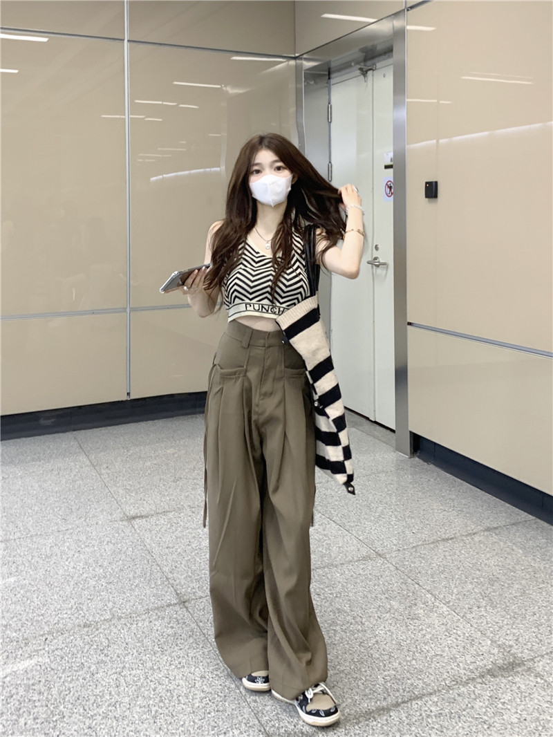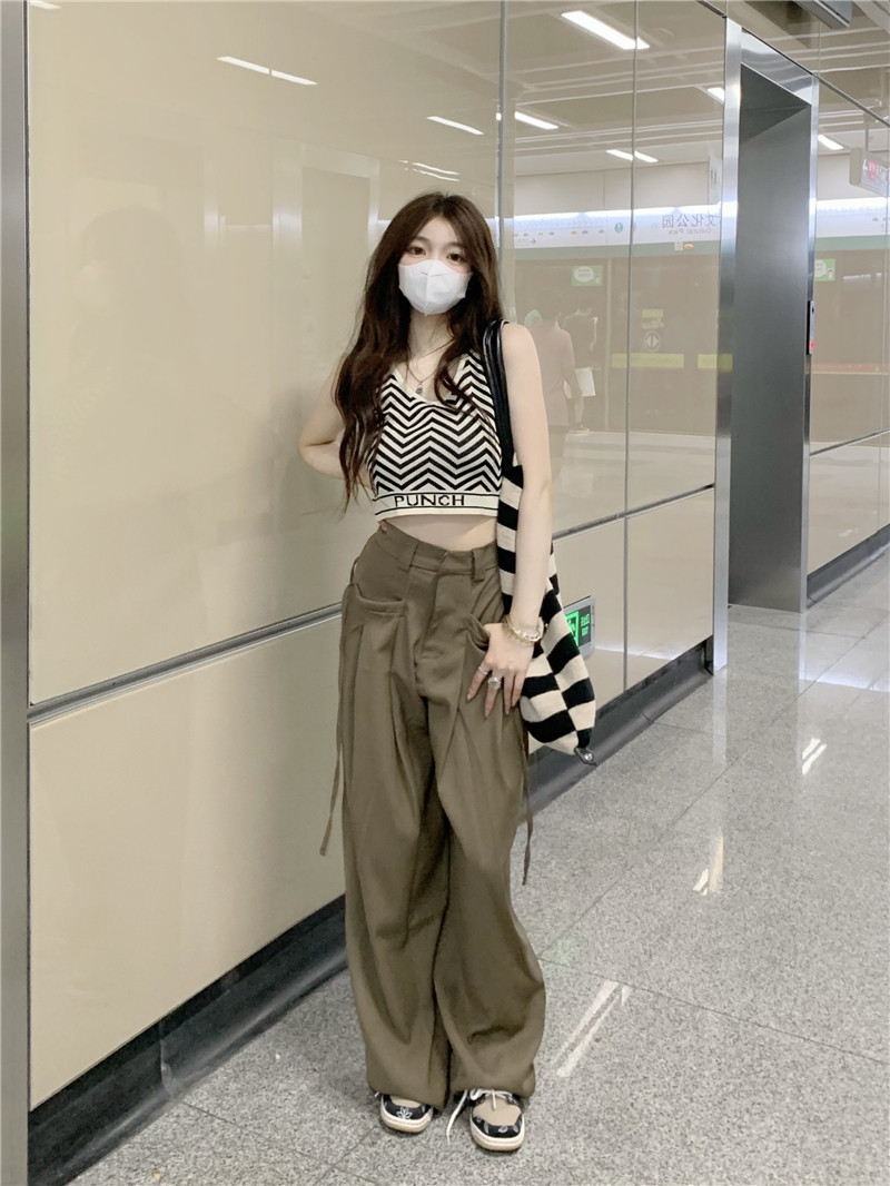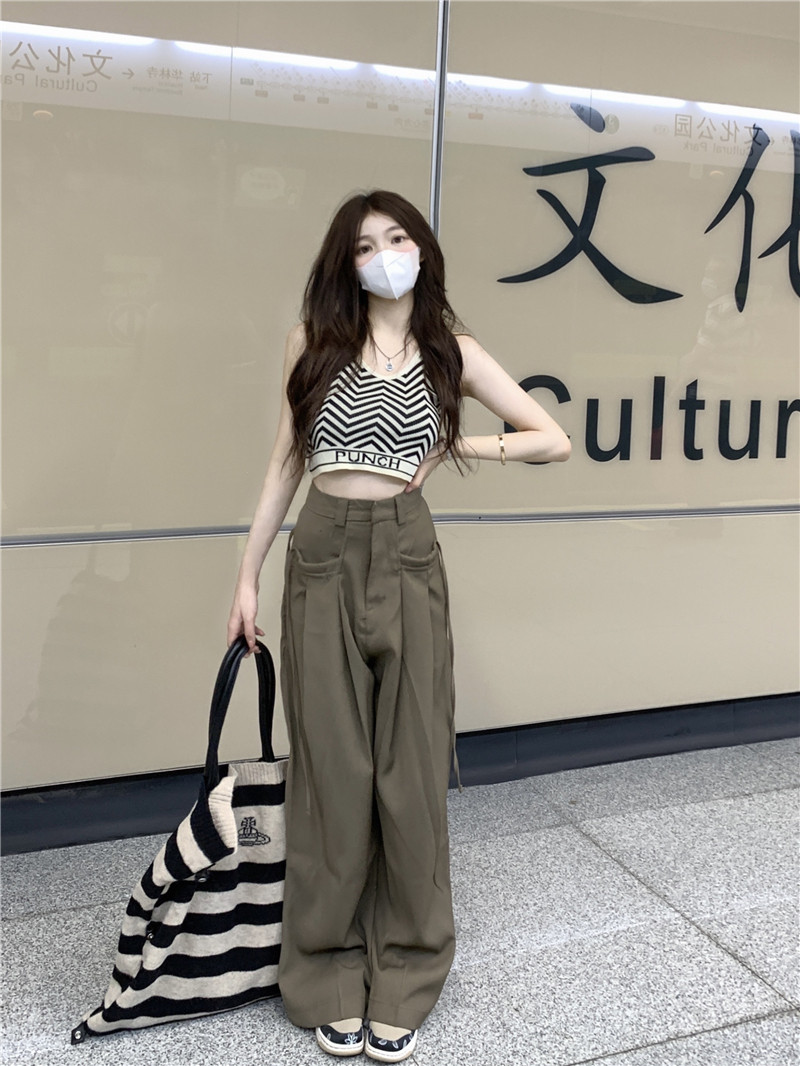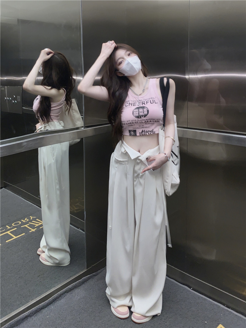 白色拖地休闲裤女装夏季美式工装裤高腰宽松设计感长裤阔腿裤裤子