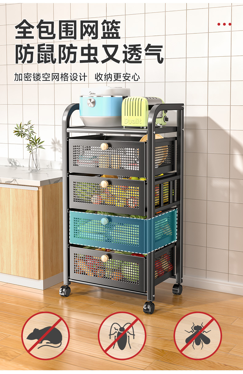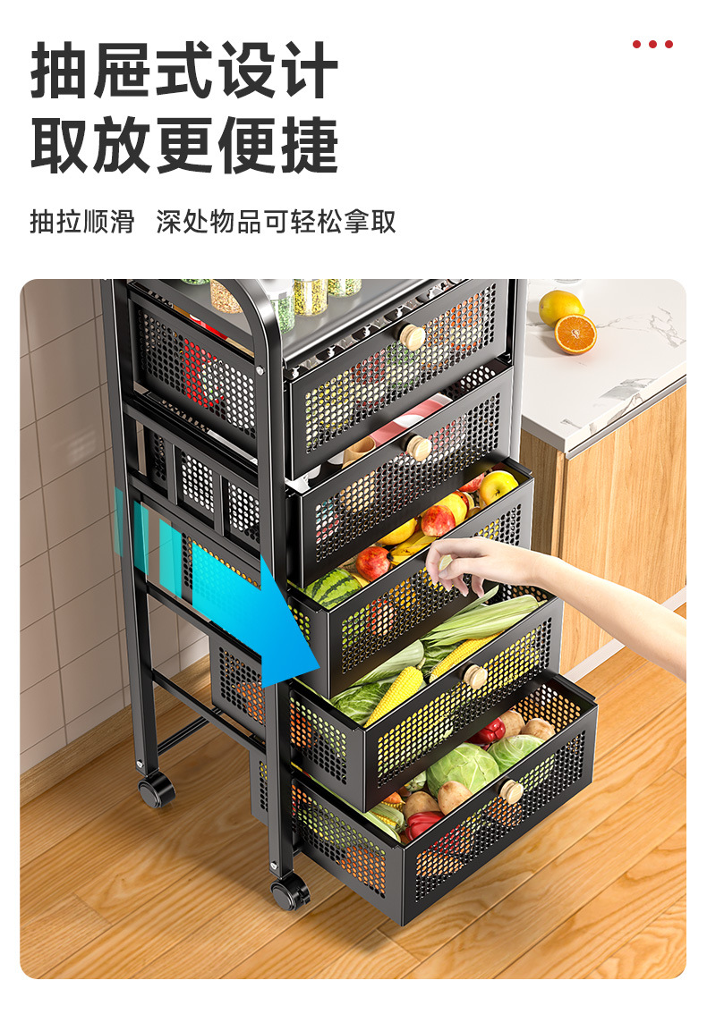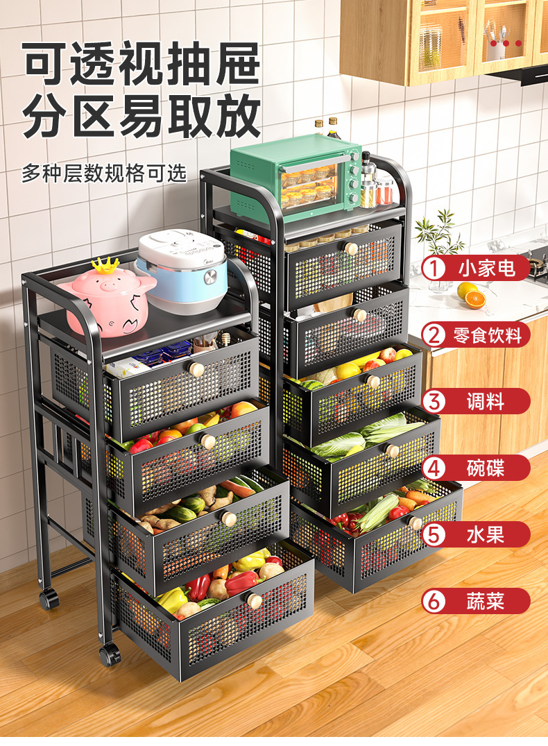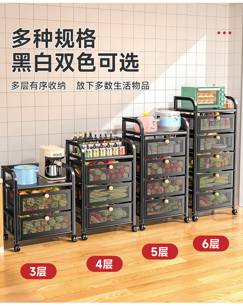 厨房置物架家用收纳储物架子落地多层用品大全小推车多功能蔬菜篮