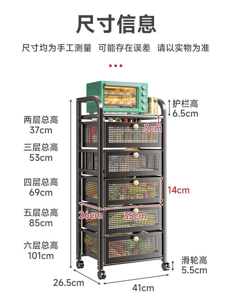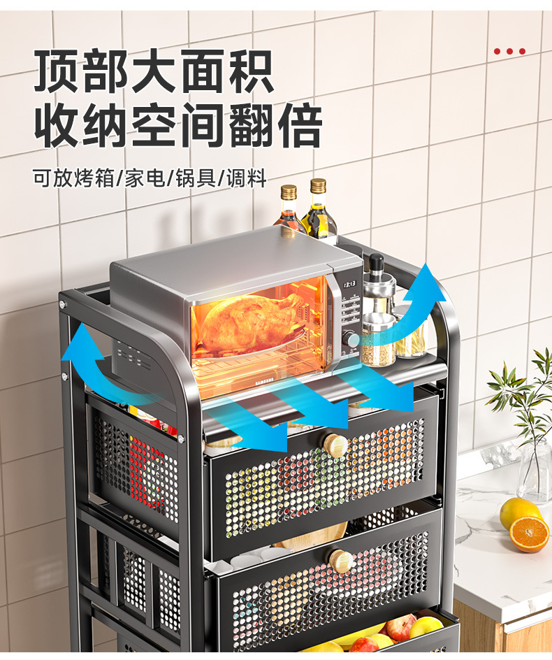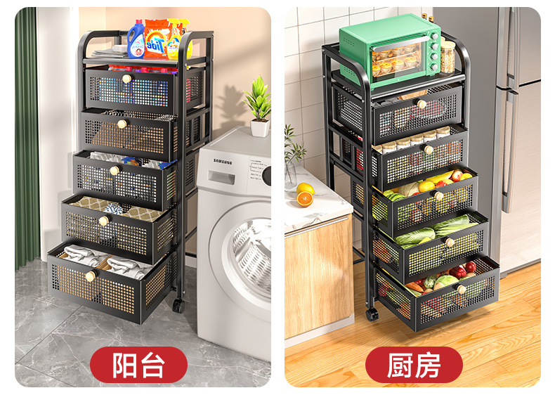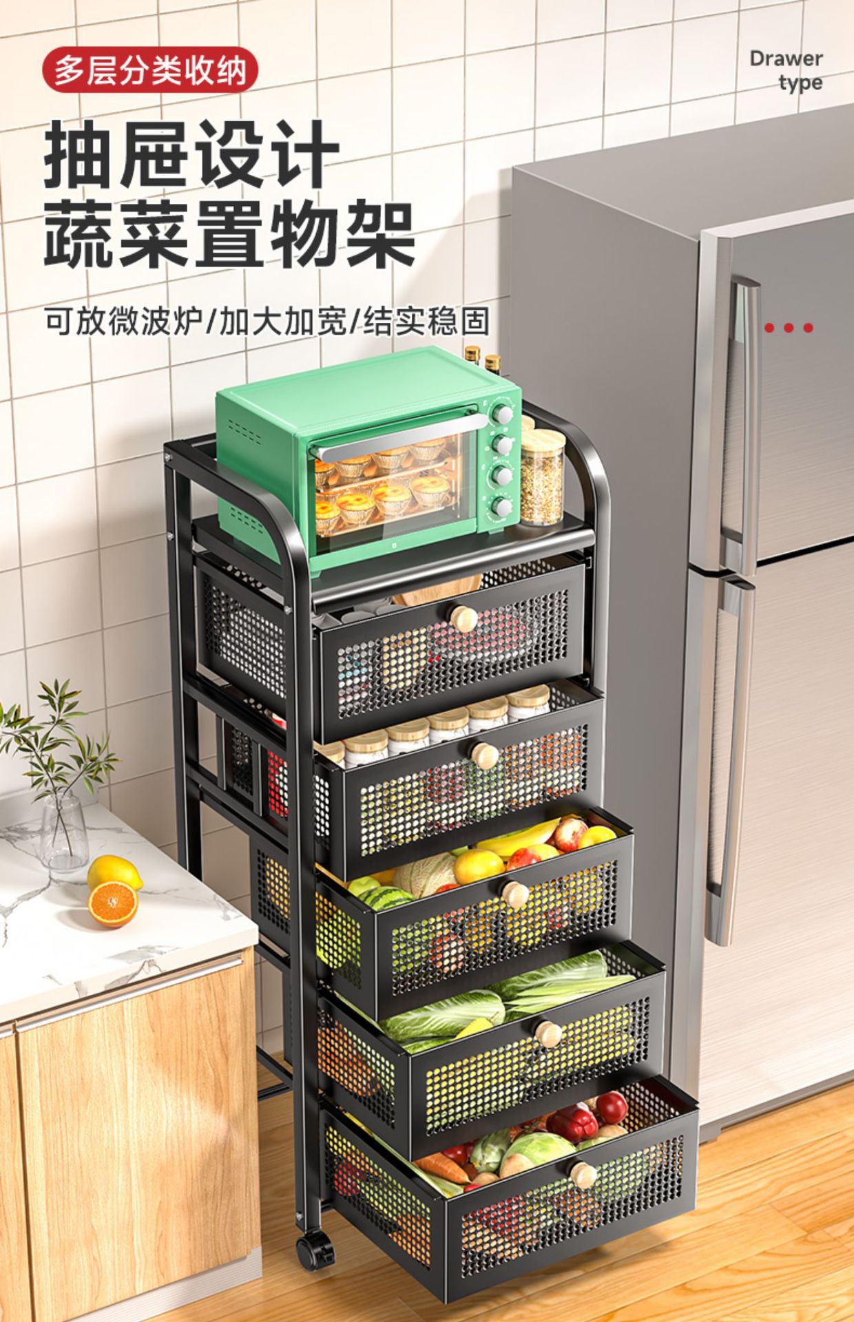 厨房置物架家用收纳储物架子落地多层用品大全小推车多功能蔬菜篮