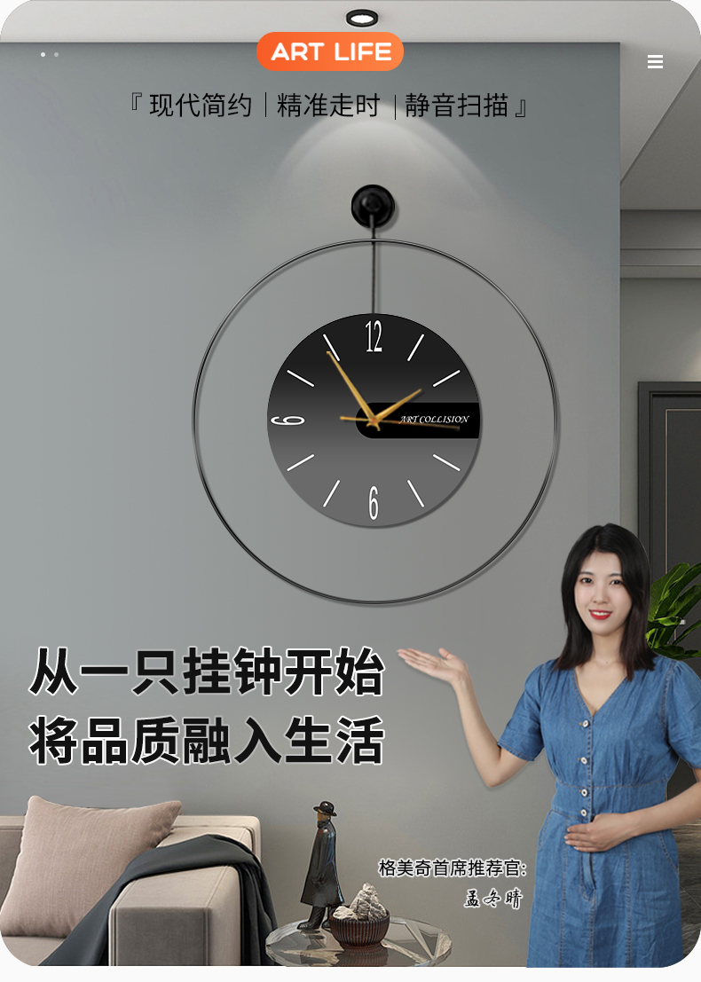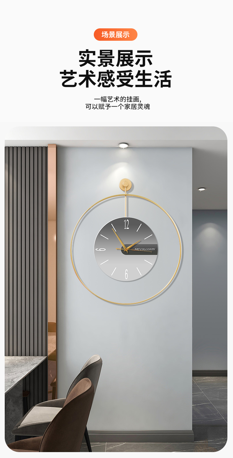 创意时尚客厅挂钟极简风格艺术钟表圆形静音时钟网红家用餐厅挂表