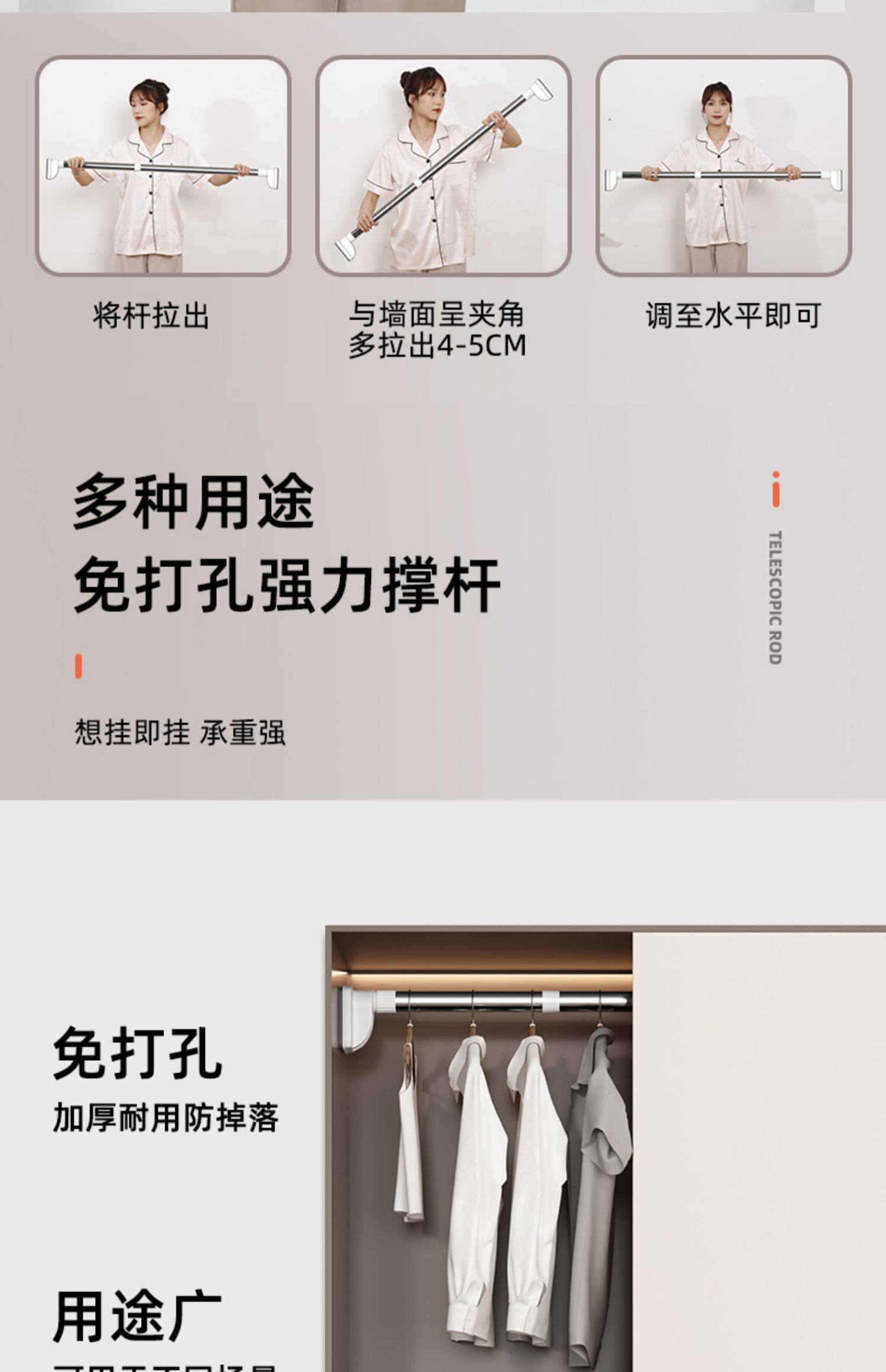 伸缩杆免打孔凉衣捍卧室衣柜窗帘晾衣杆门帘浴帘杆子阳台衣架撑杆