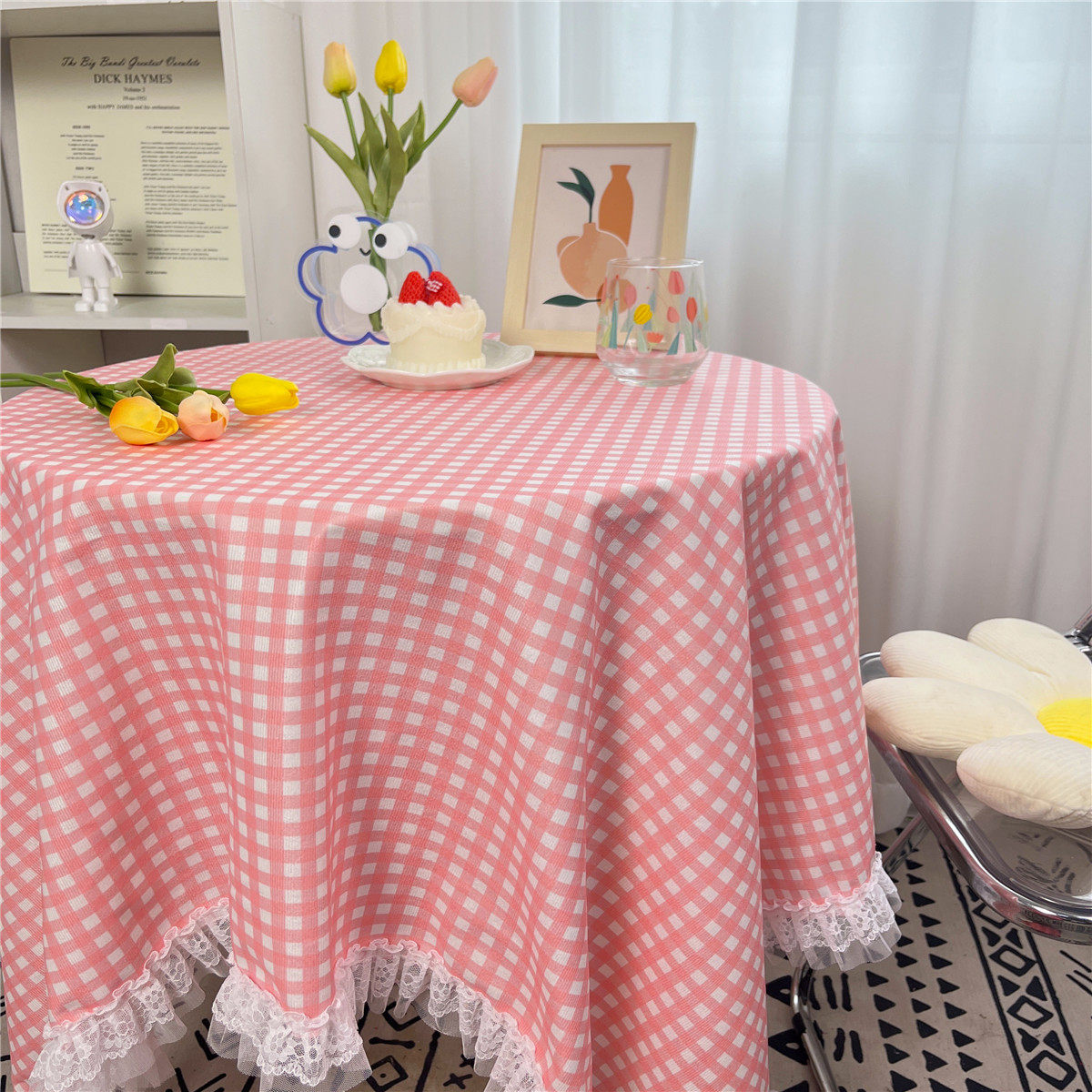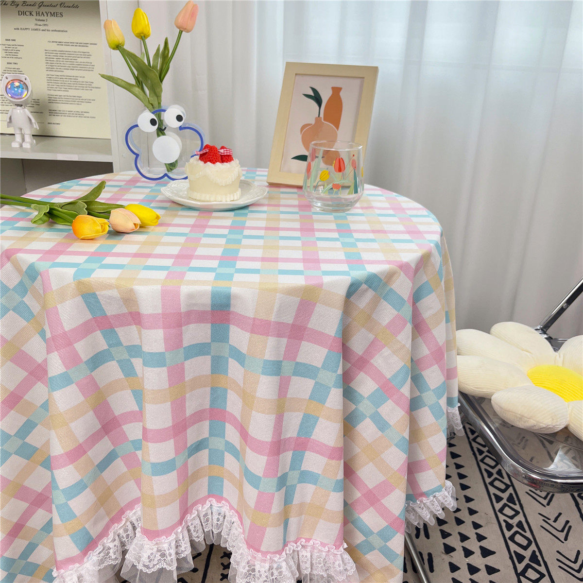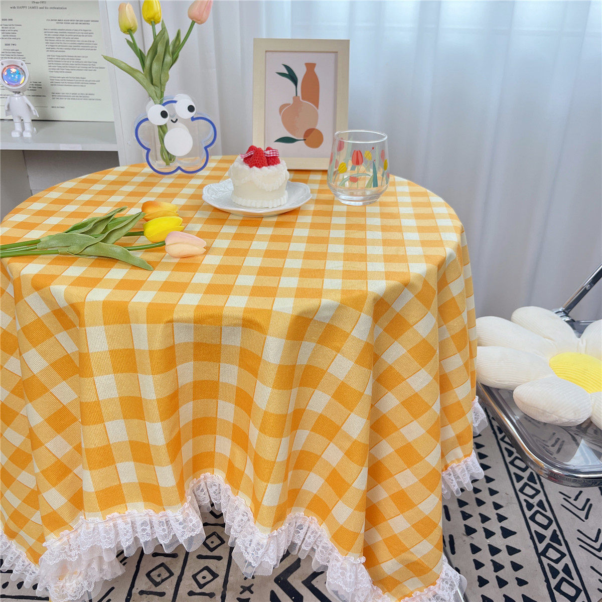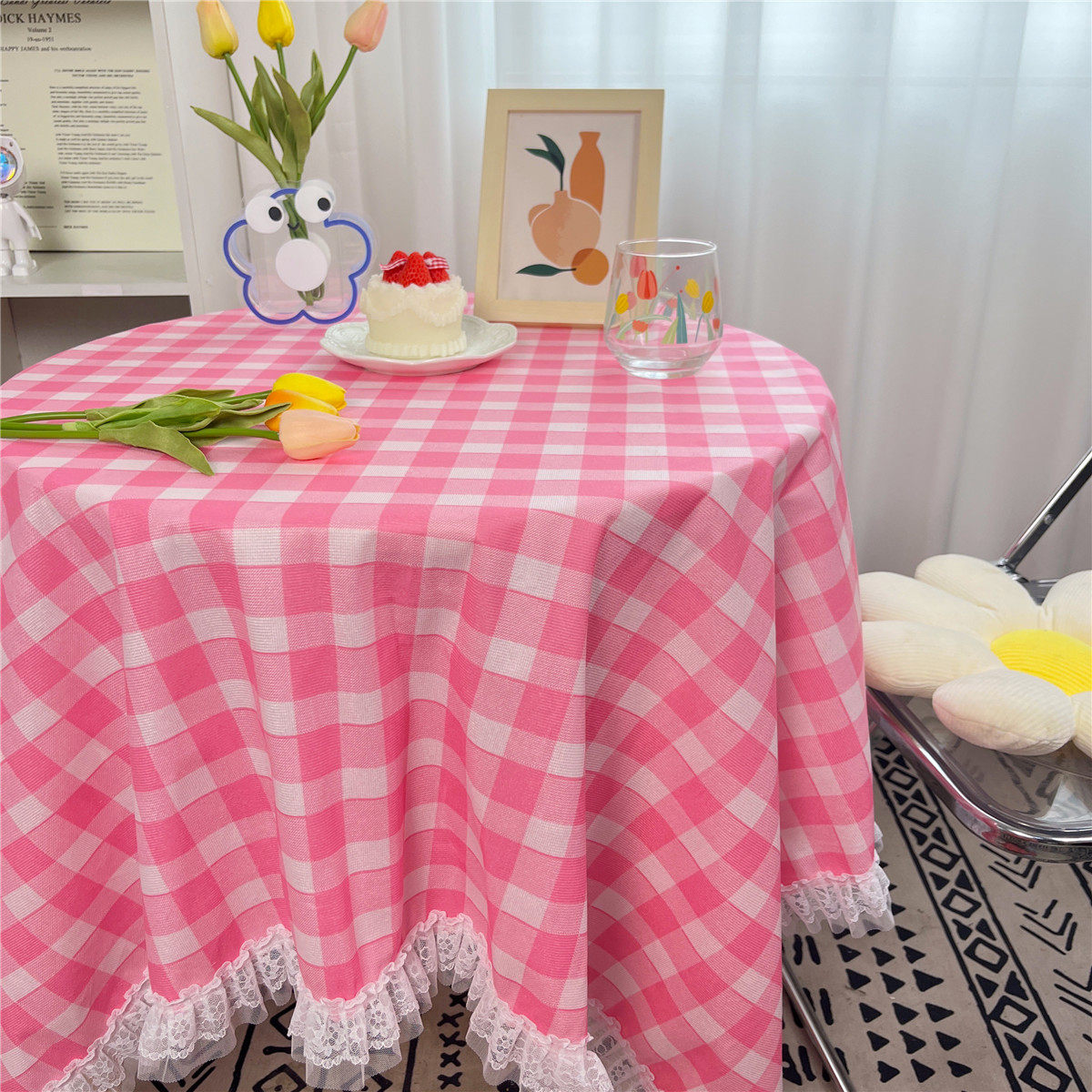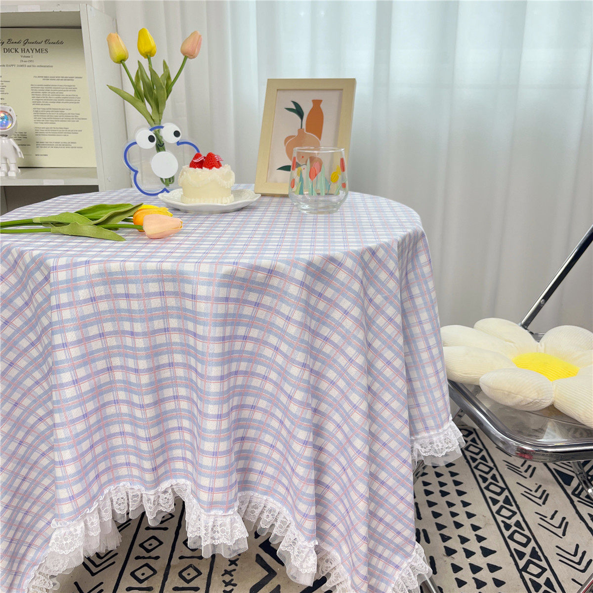 网红ins布碎花格子桌布蕾丝边小清新台布茶几盖布绒布布艺小方格