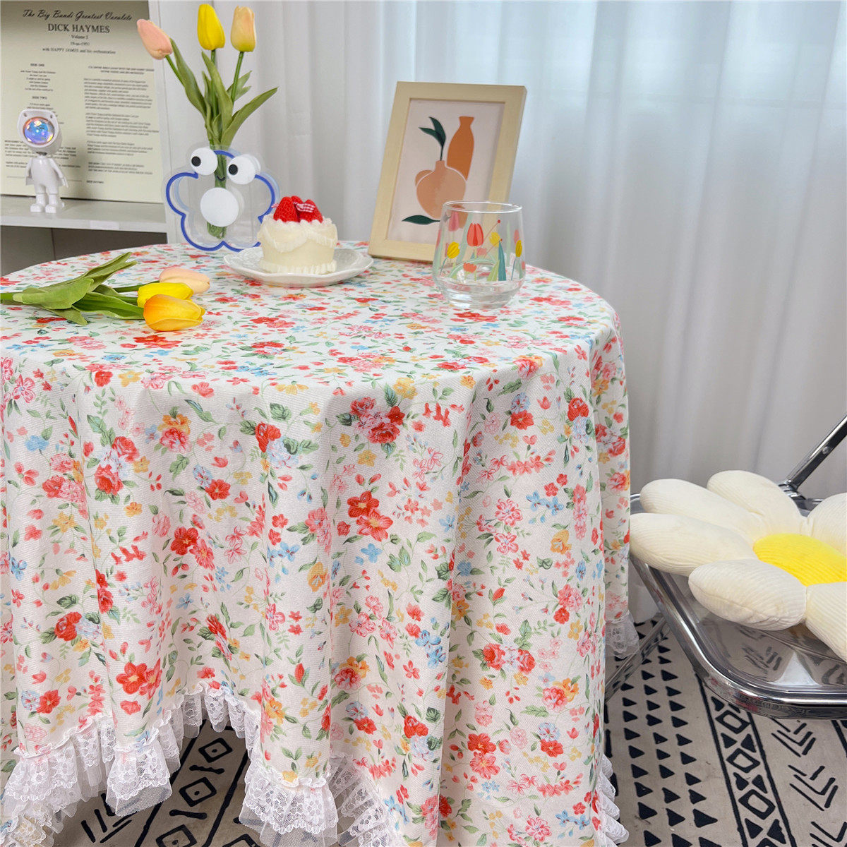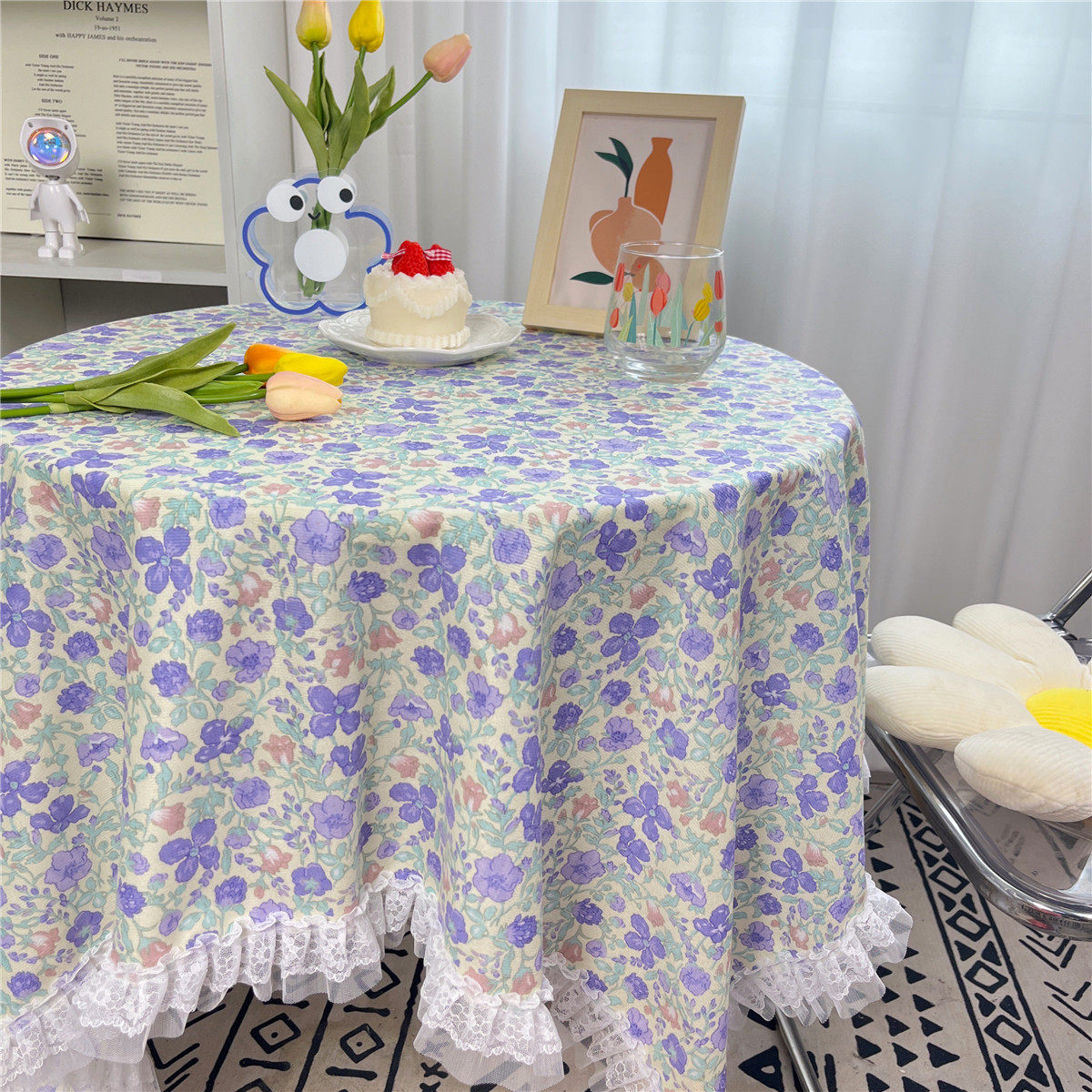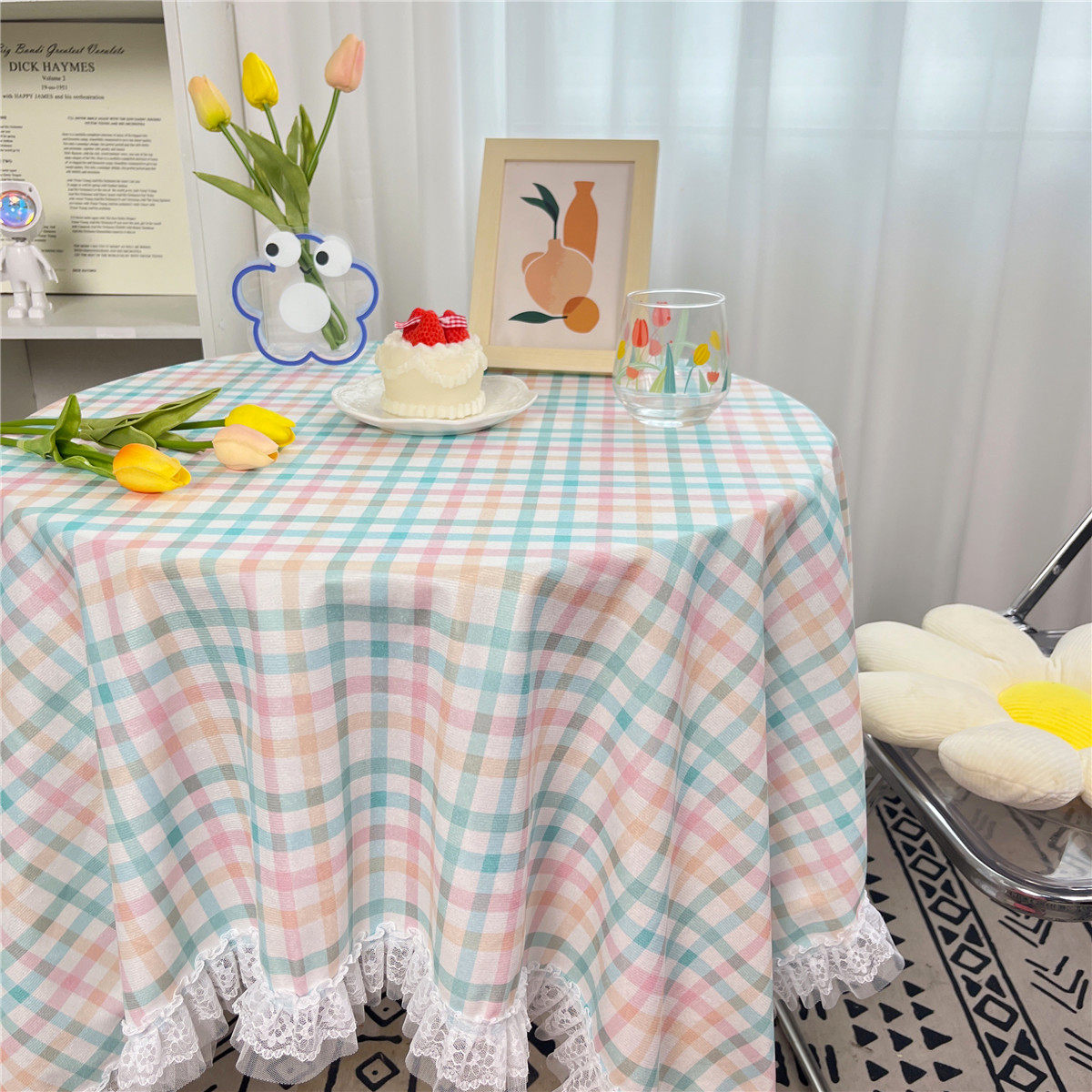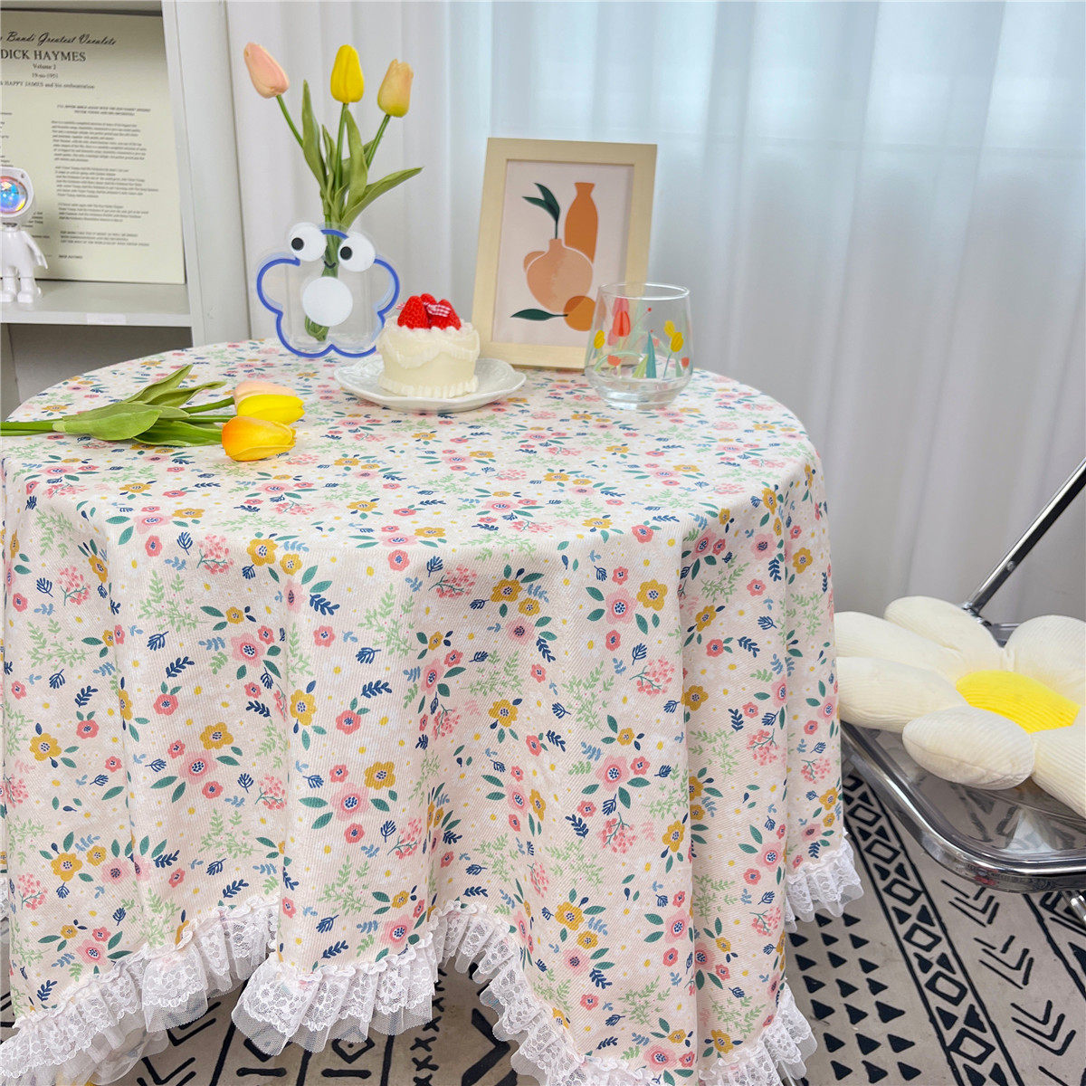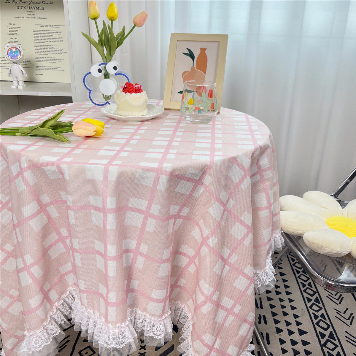 网红ins布碎花格子桌布蕾丝边小清新台布茶几盖布绒布布艺小方格
