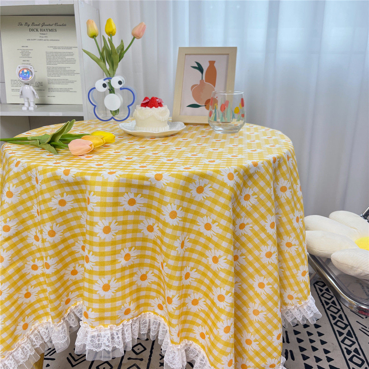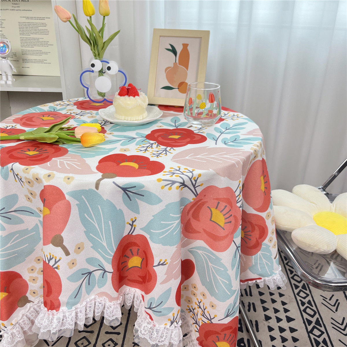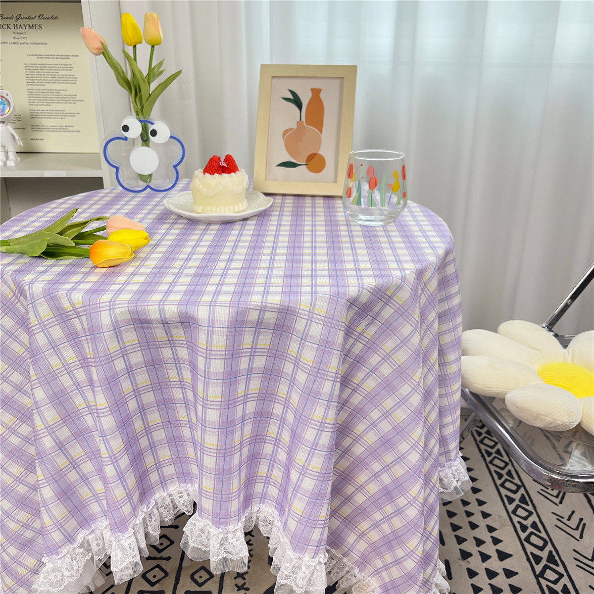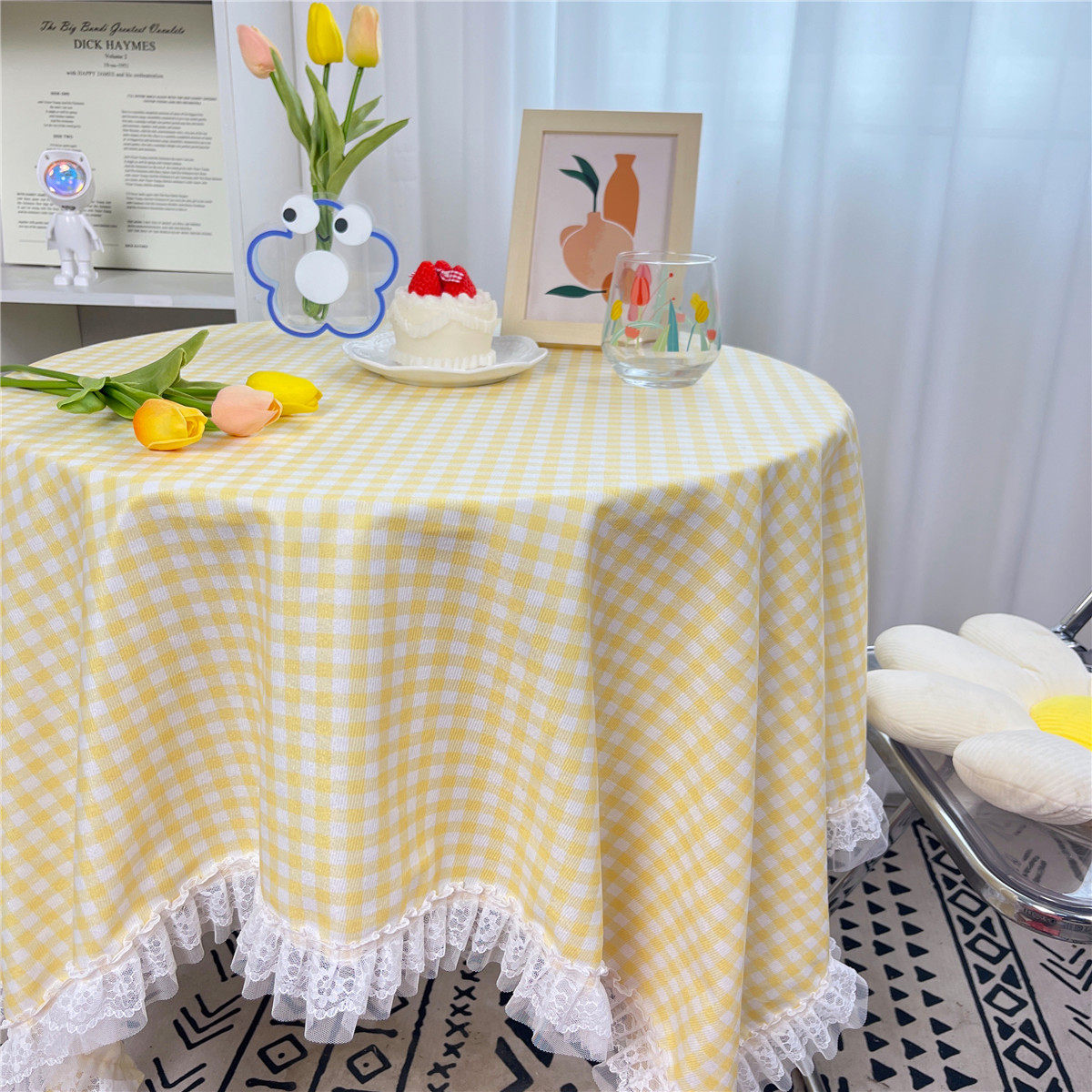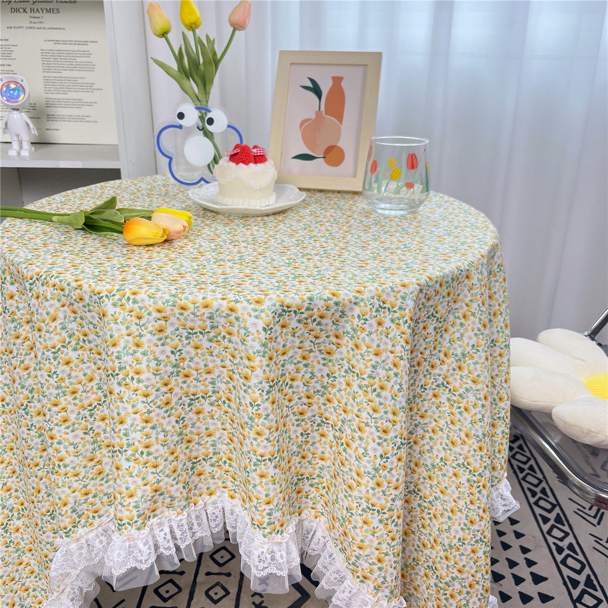 网红ins布碎花格子桌布蕾丝边小清新台布茶几盖布绒布布艺小方格