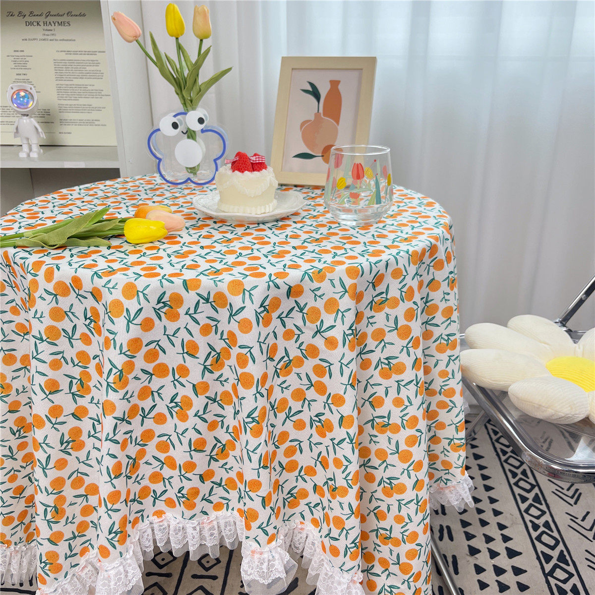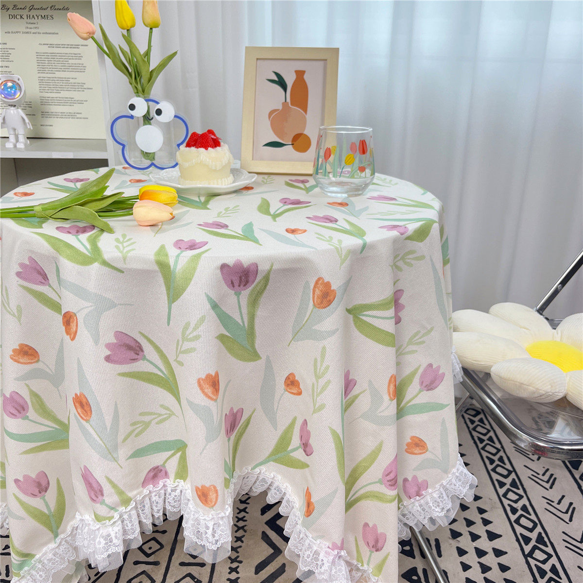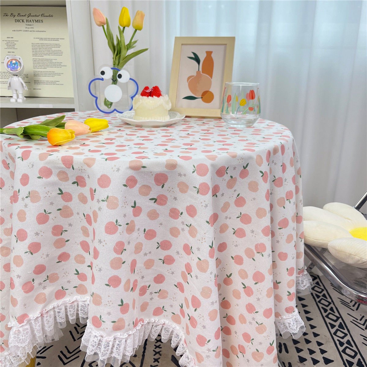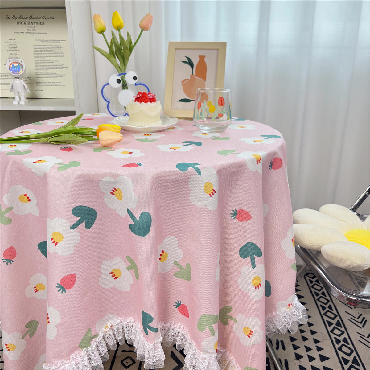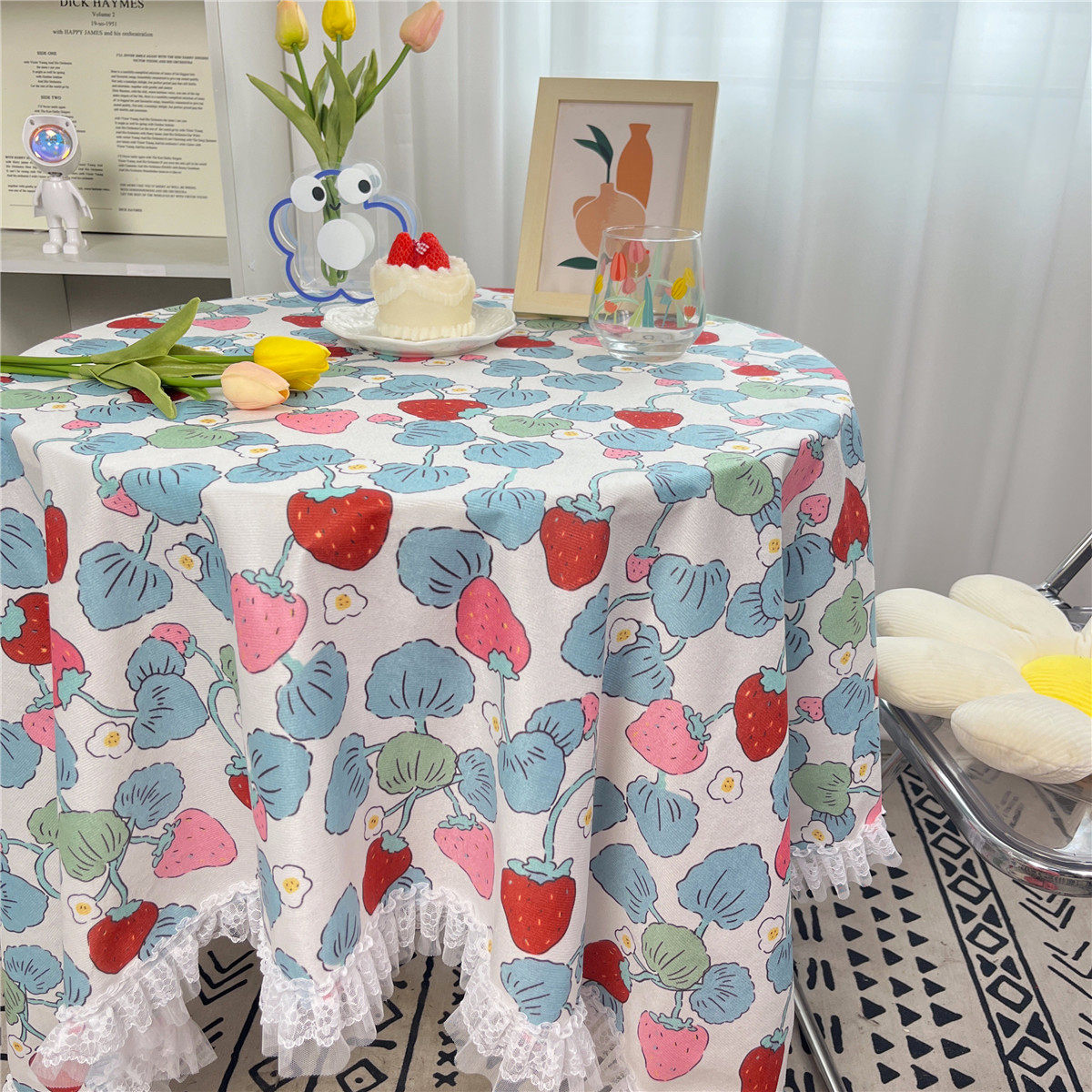 网红ins布碎花格子桌布蕾丝边小清新台布茶几盖布绒布布艺小方格