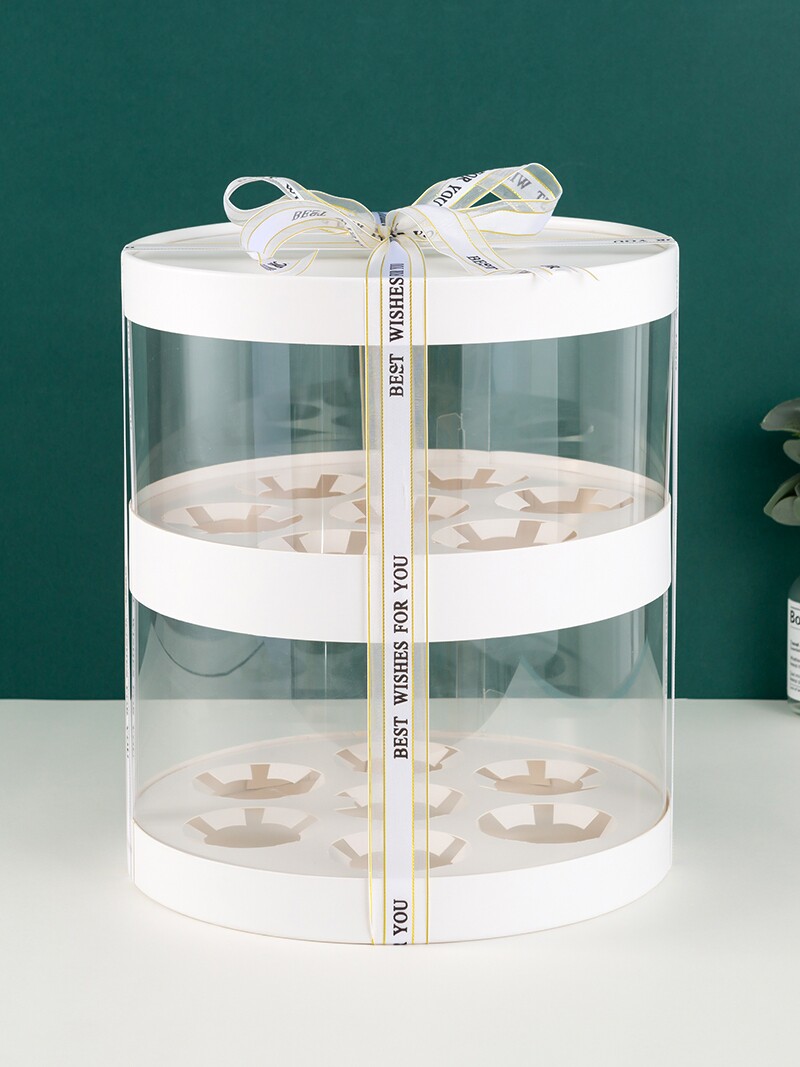 下午茶法式甜品包装白色一层5粒圆形双层手提纸杯蛋糕盒子6粒2层