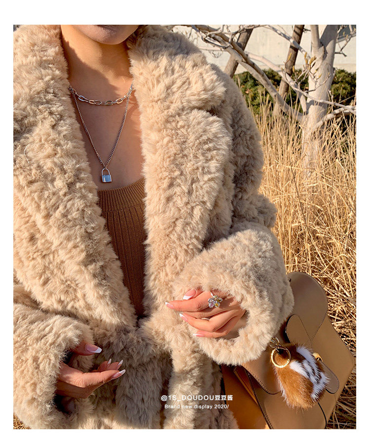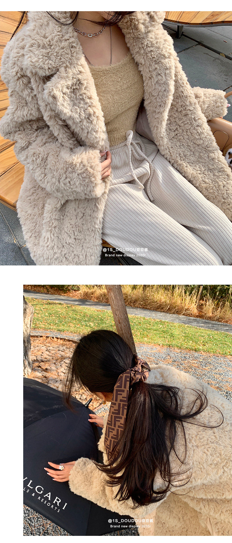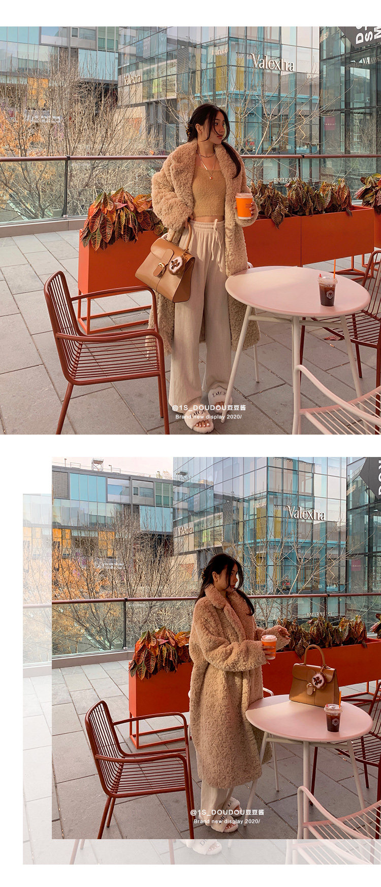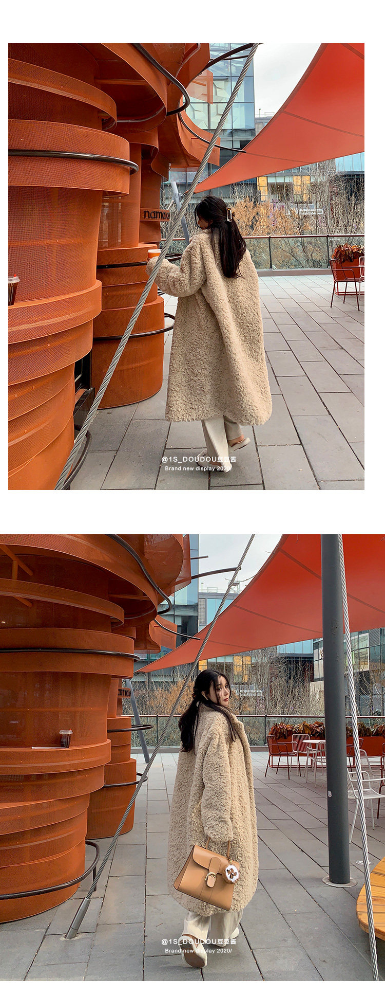 豆豆酱chic仿羊羔毛外套冬季中长款宽松百搭大衣加厚毛绒绒长外套