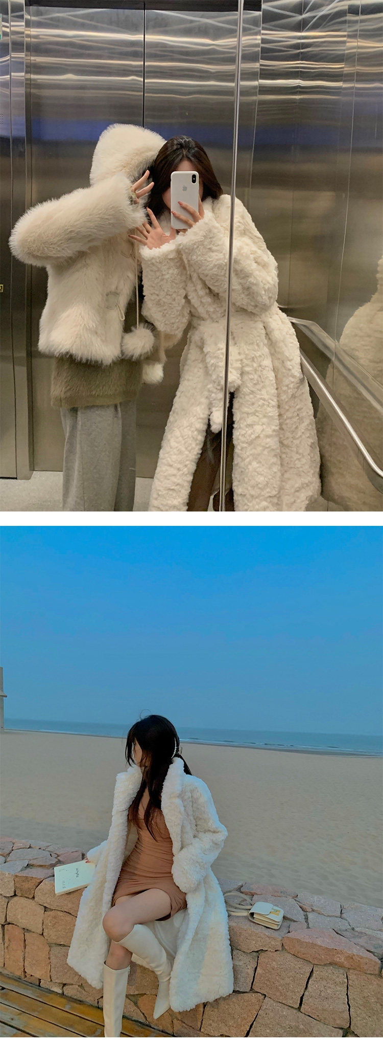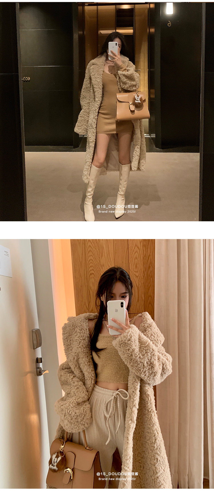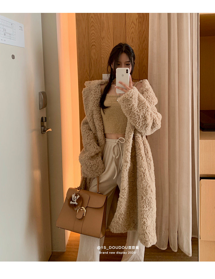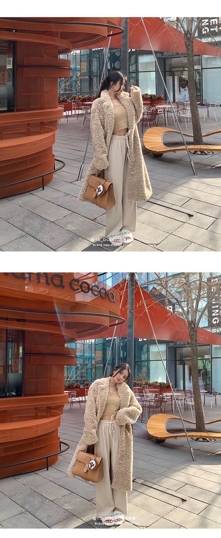 豆豆酱chic仿羊羔毛外套冬季中长款宽松百搭大衣加厚毛绒绒长外套
