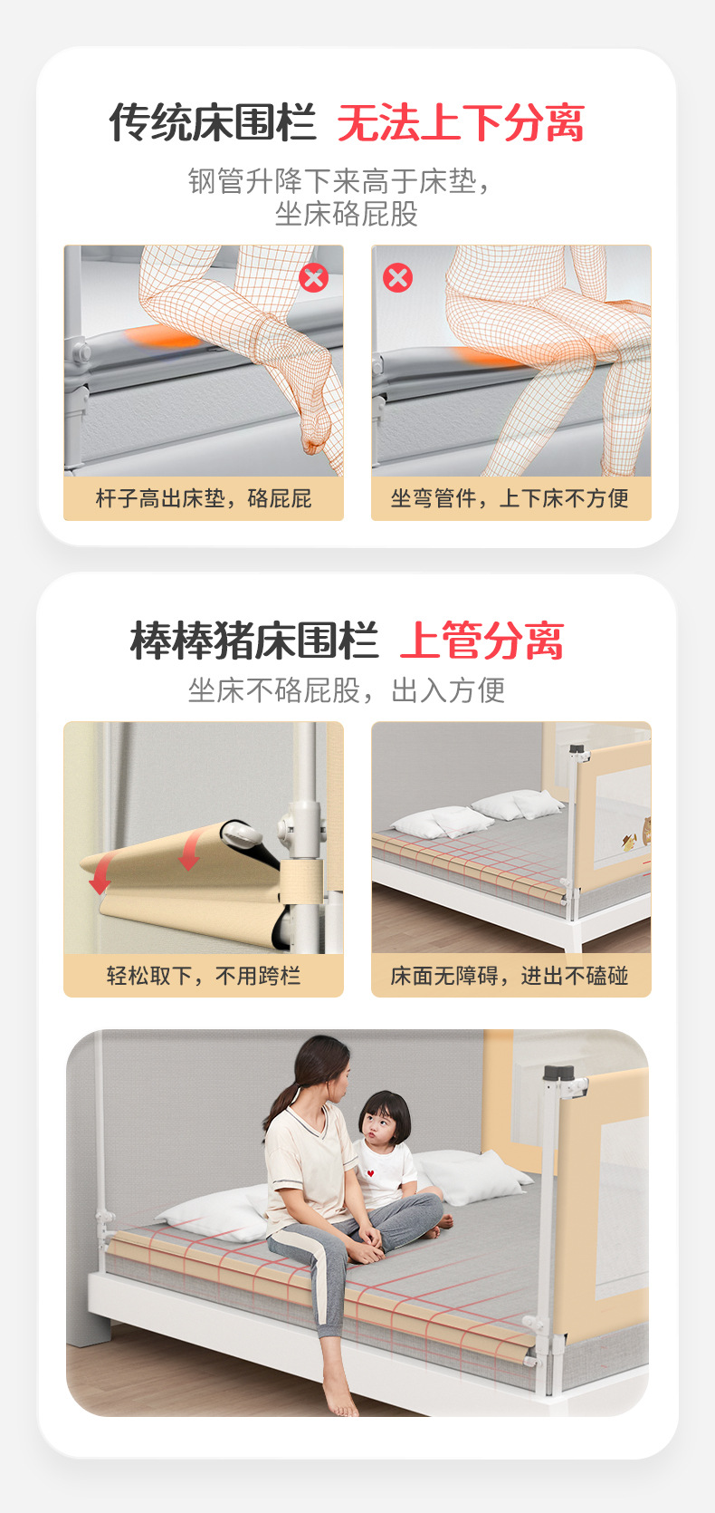 棒棒猪床围栏宝宝防摔防护栏婴儿防摔床边挡板儿童床护栏防掉床