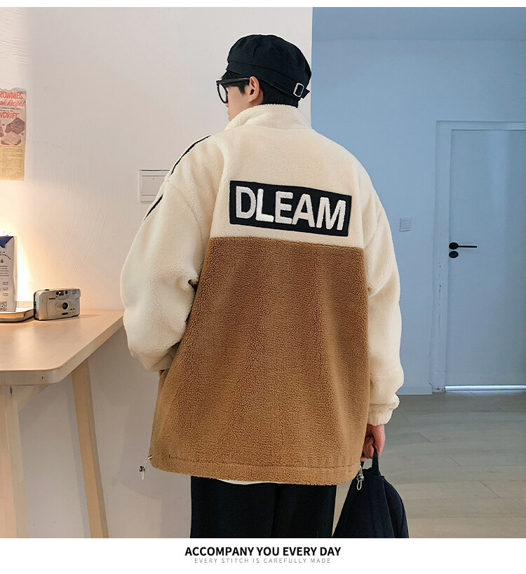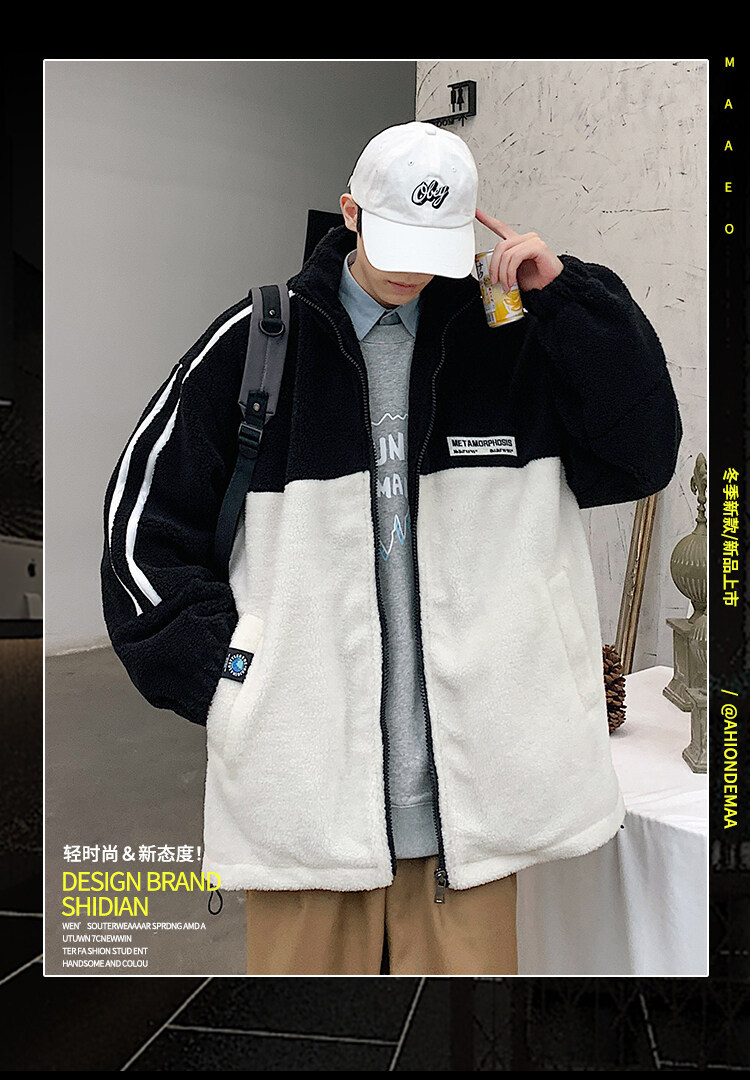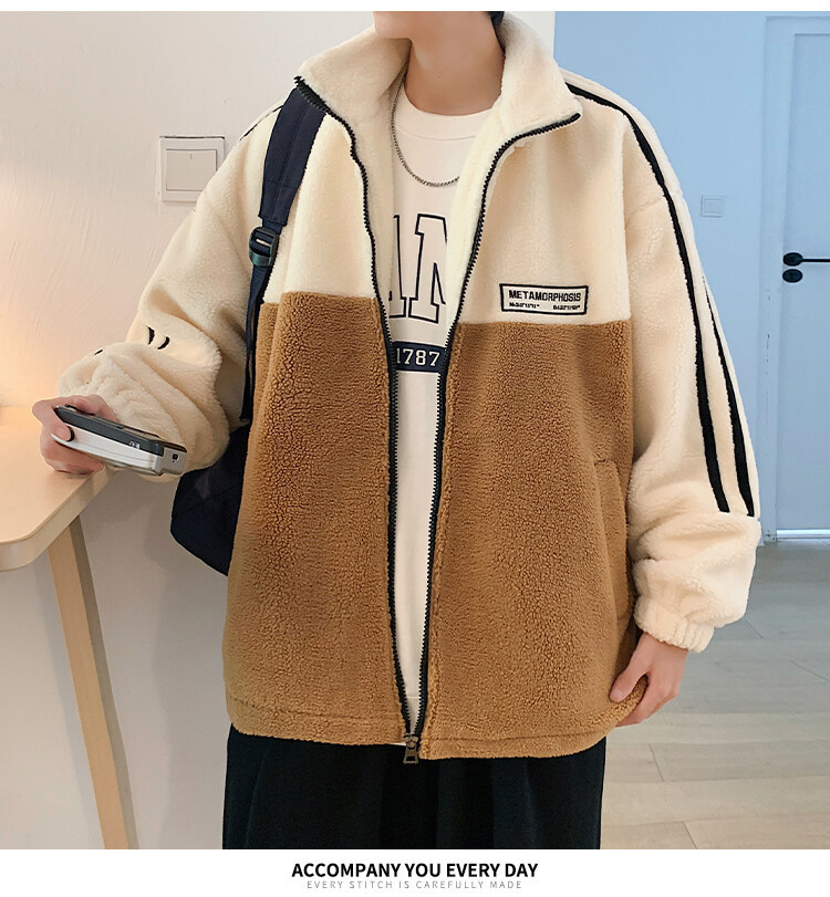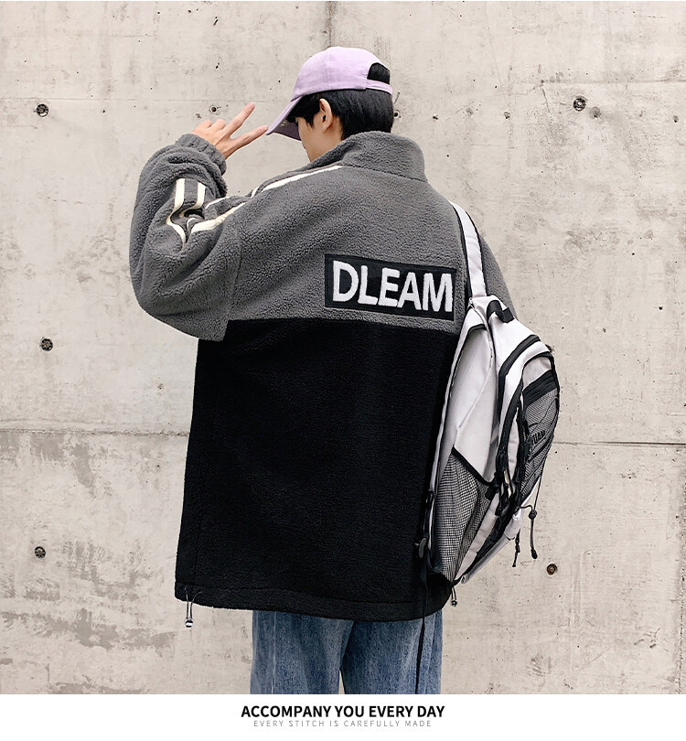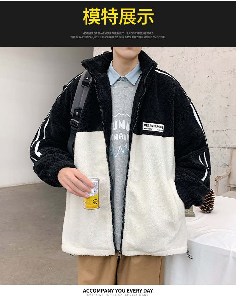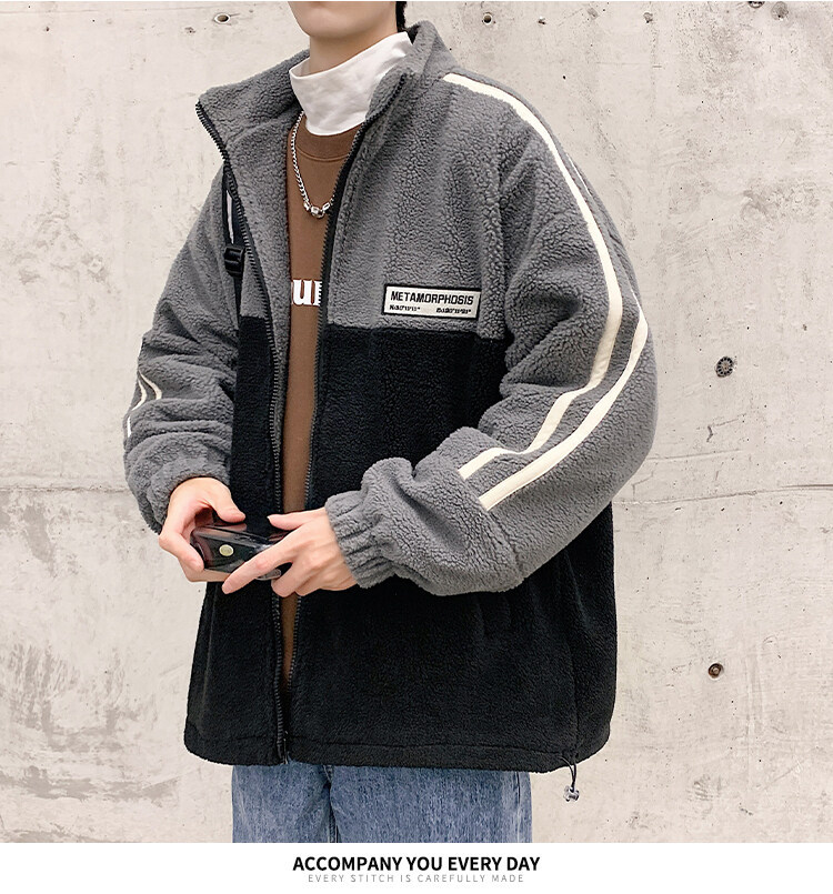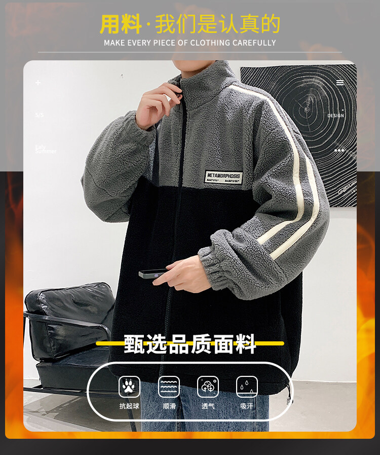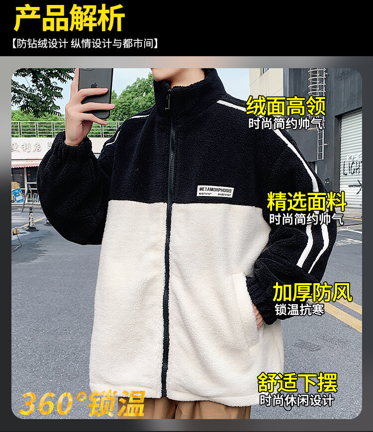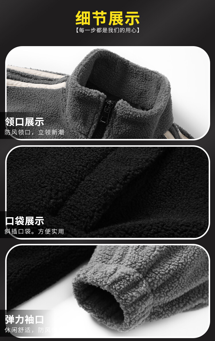 冬季新款摇粒绒保暖外套男羊羔绒棉衣男加绒加厚港风立领抓绒衣男